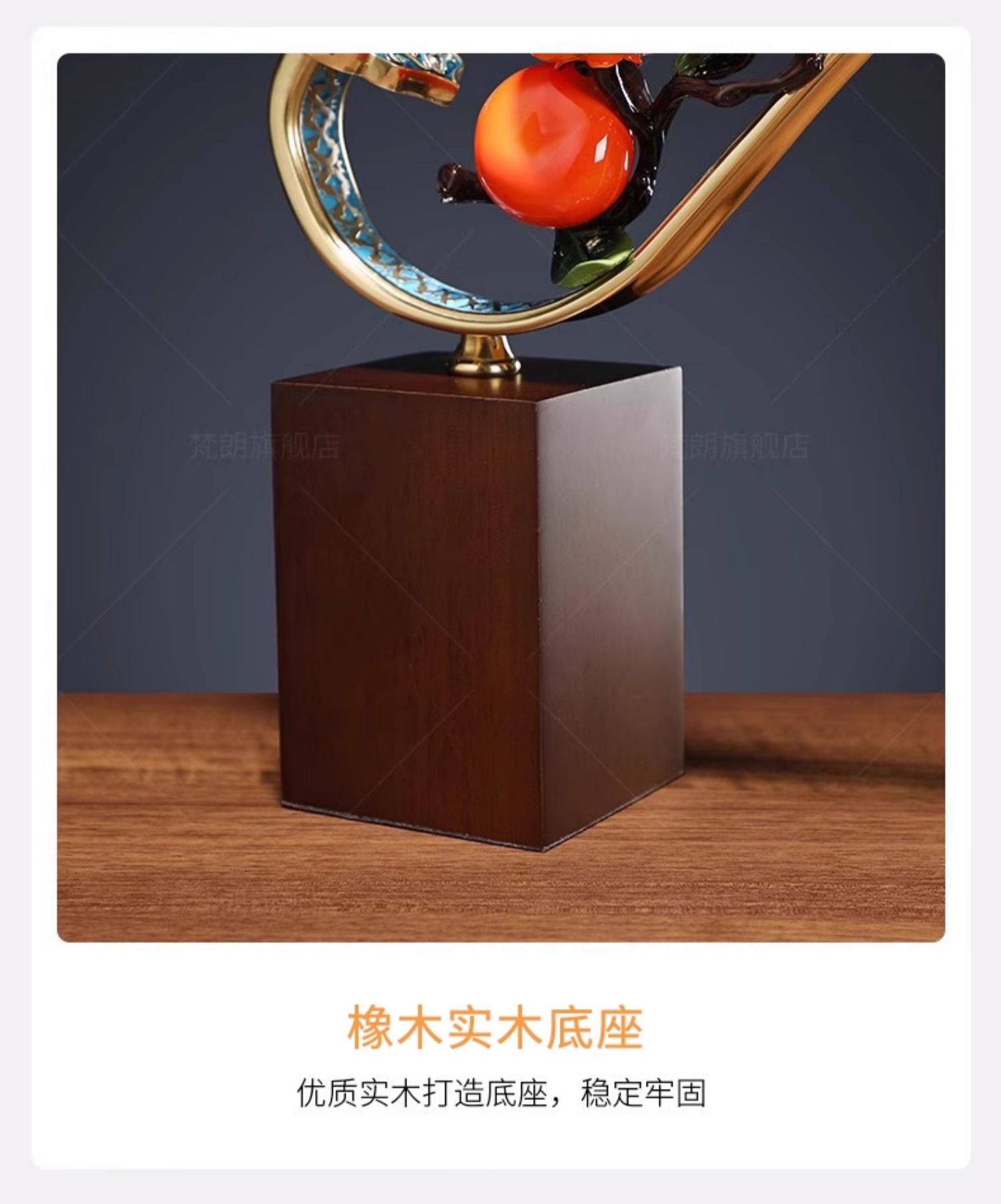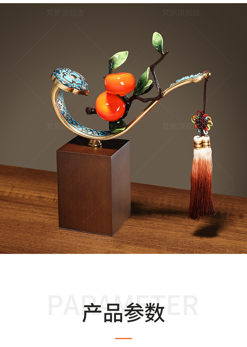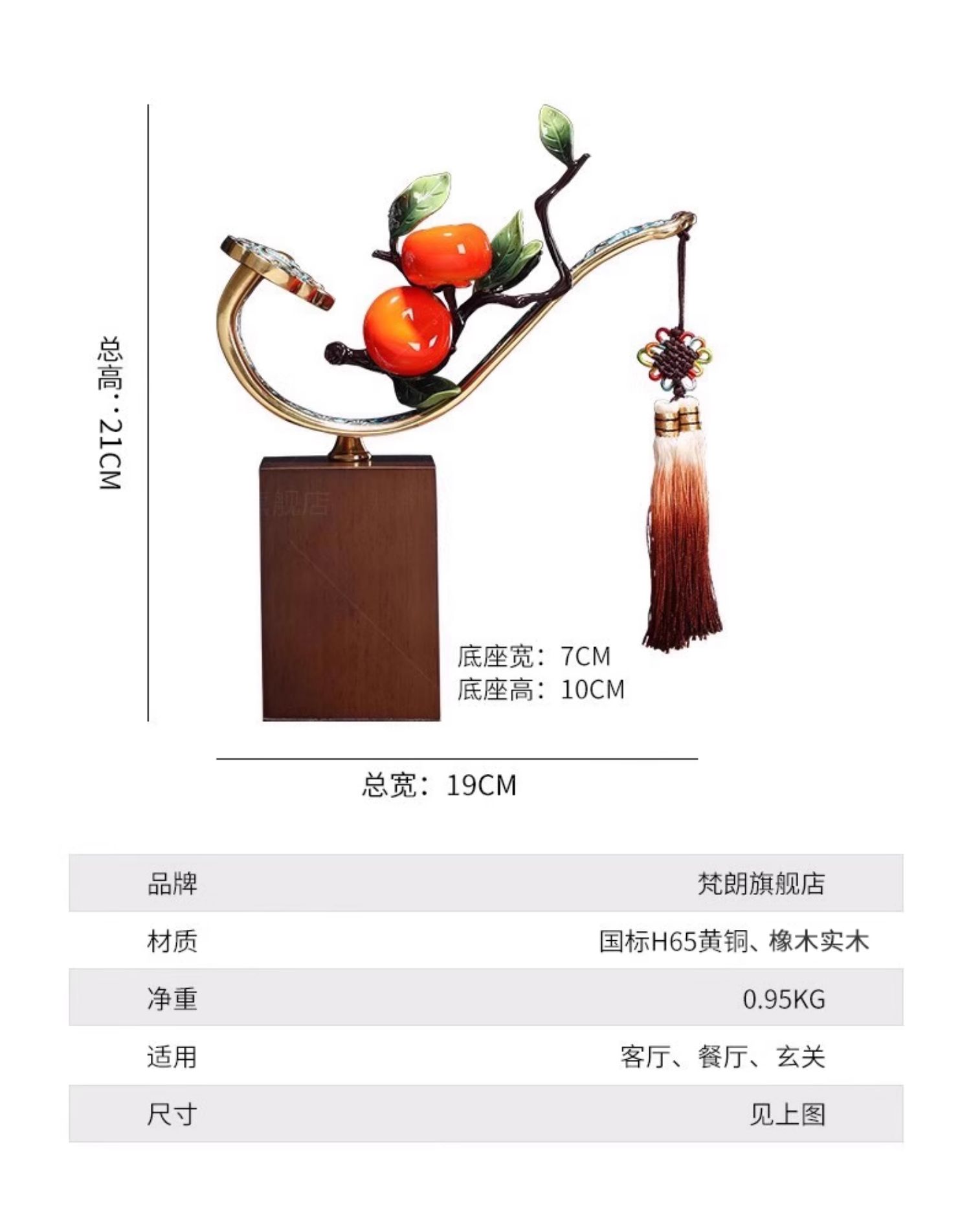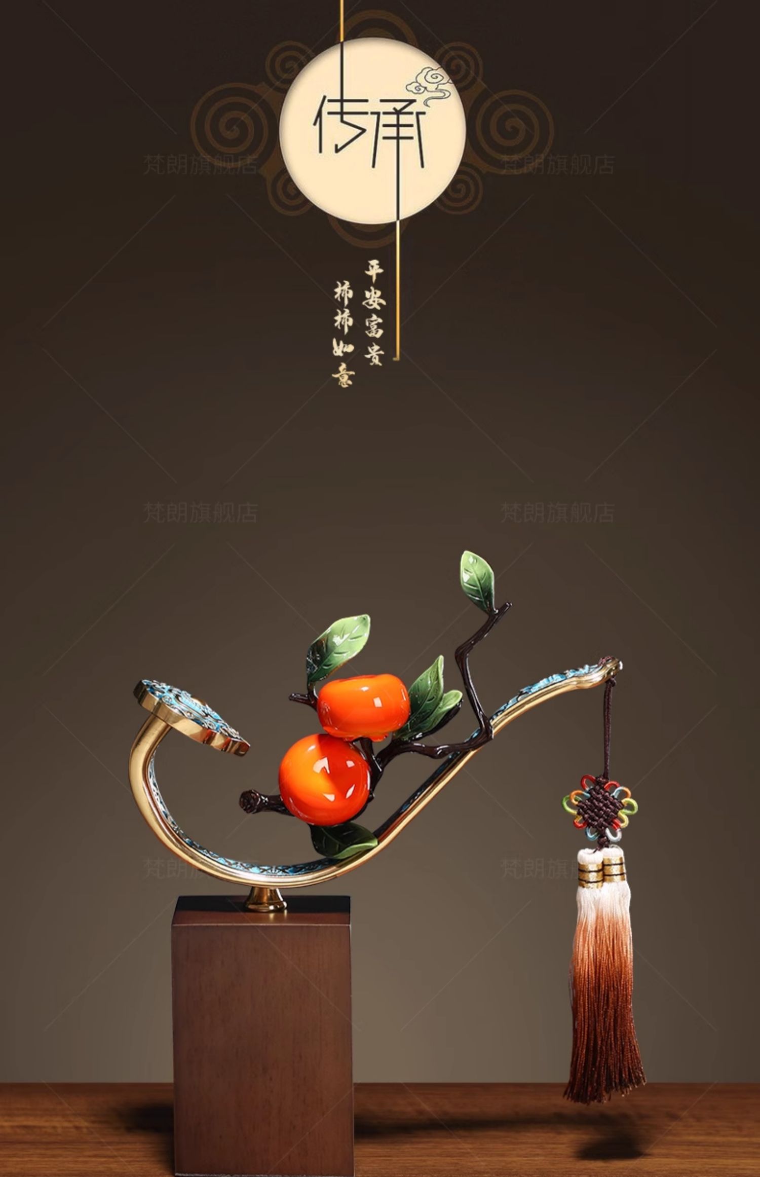 新中式黄铜摆件家用客厅柿柿如意摆设中国风玄关创意珐琅彩装饰品