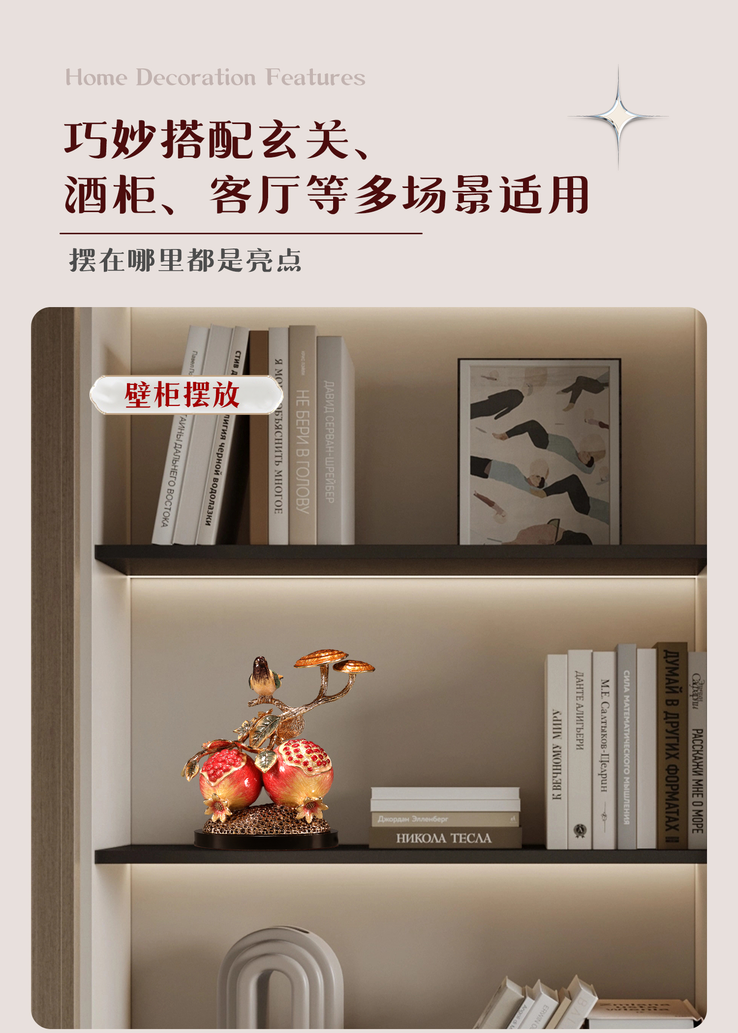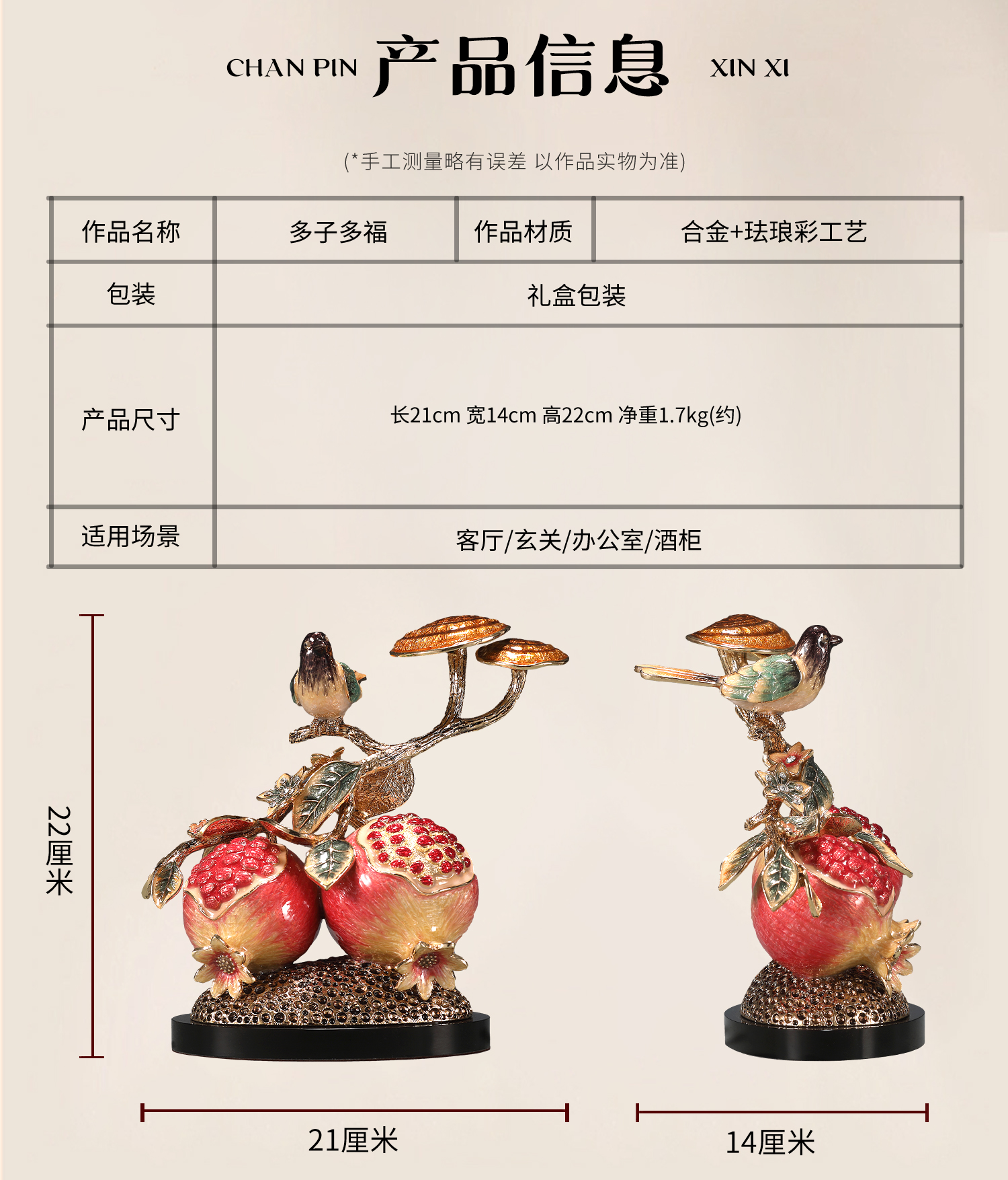 珐琅彩多子多福石榴摆件酒柜桌面布置装饰乔迁新婚结婚礼物送闺蜜