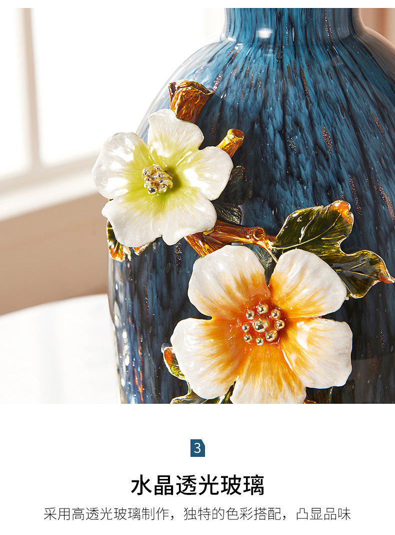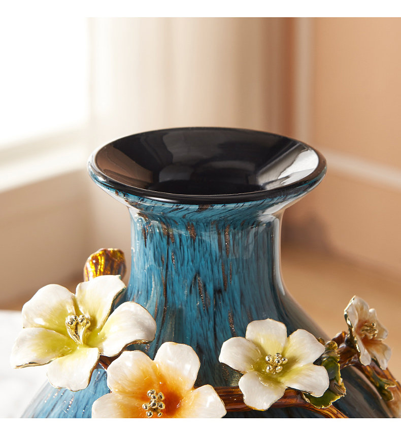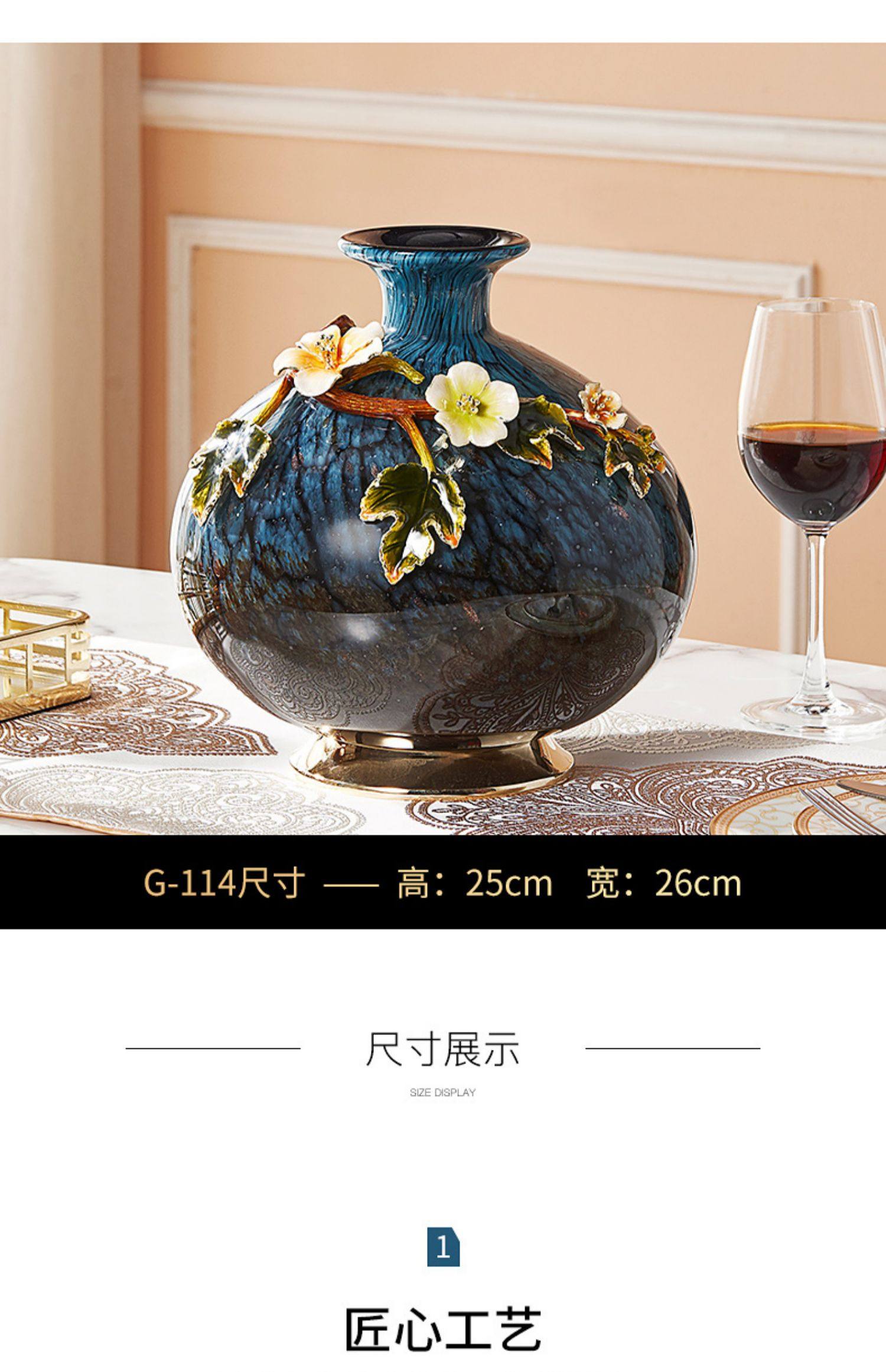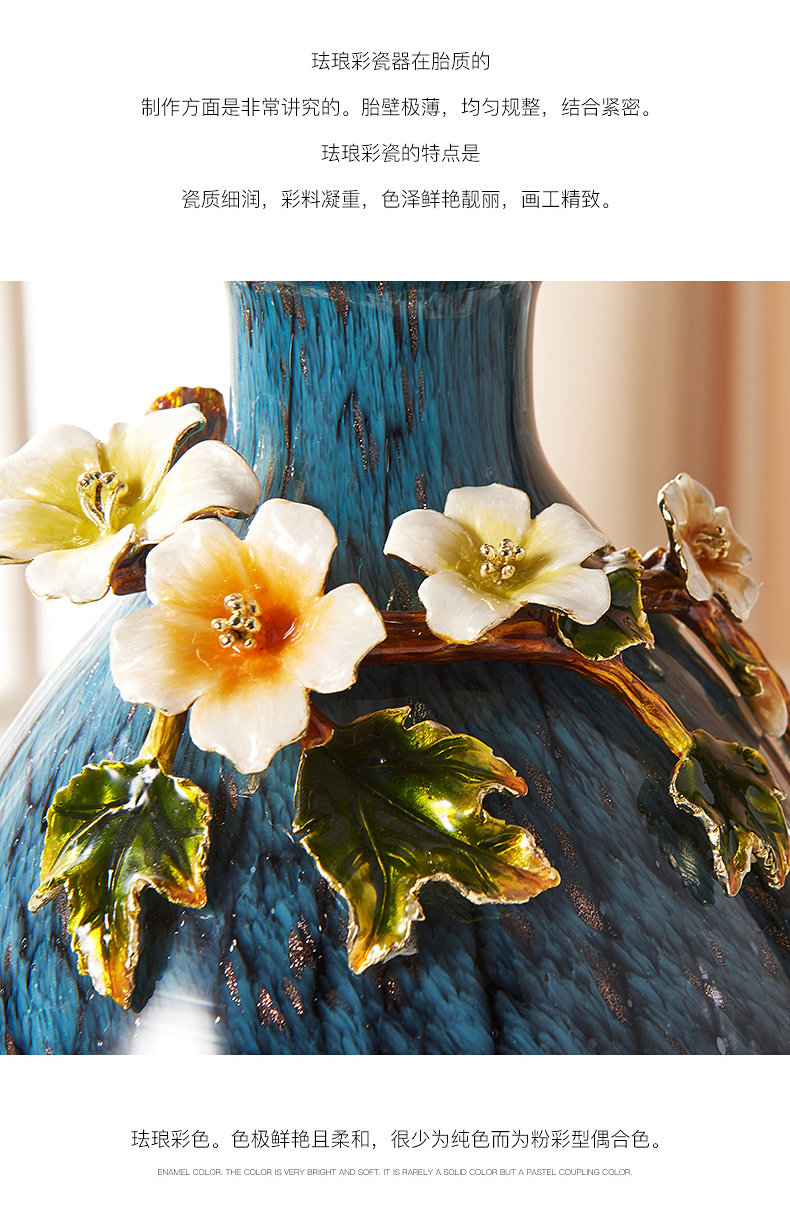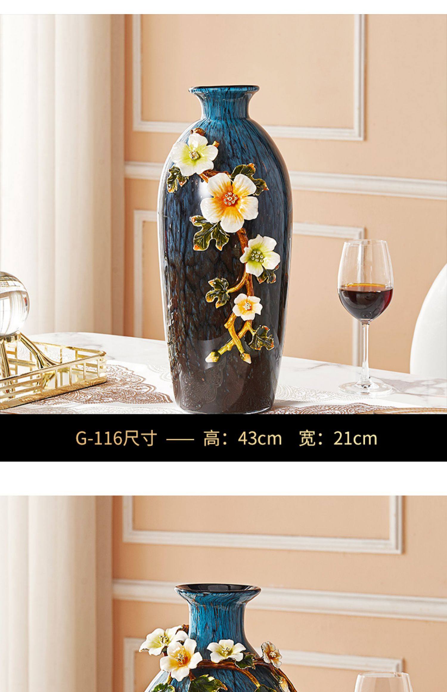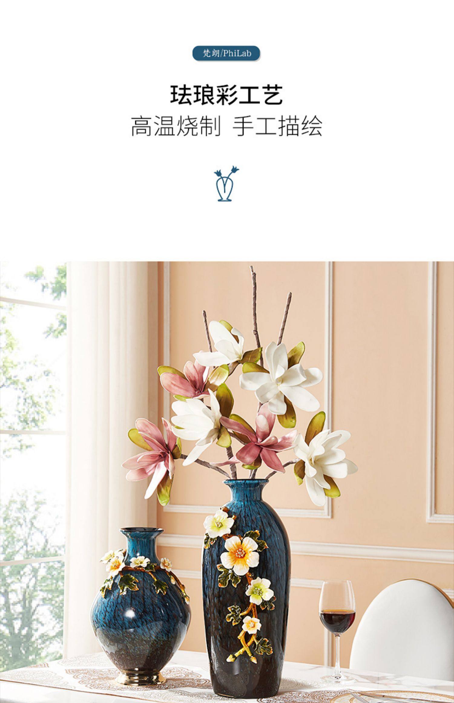 轻奢风珐琅彩陶瓷花瓶客厅干花插花摆件玄关美式艺术创意玻璃装饰