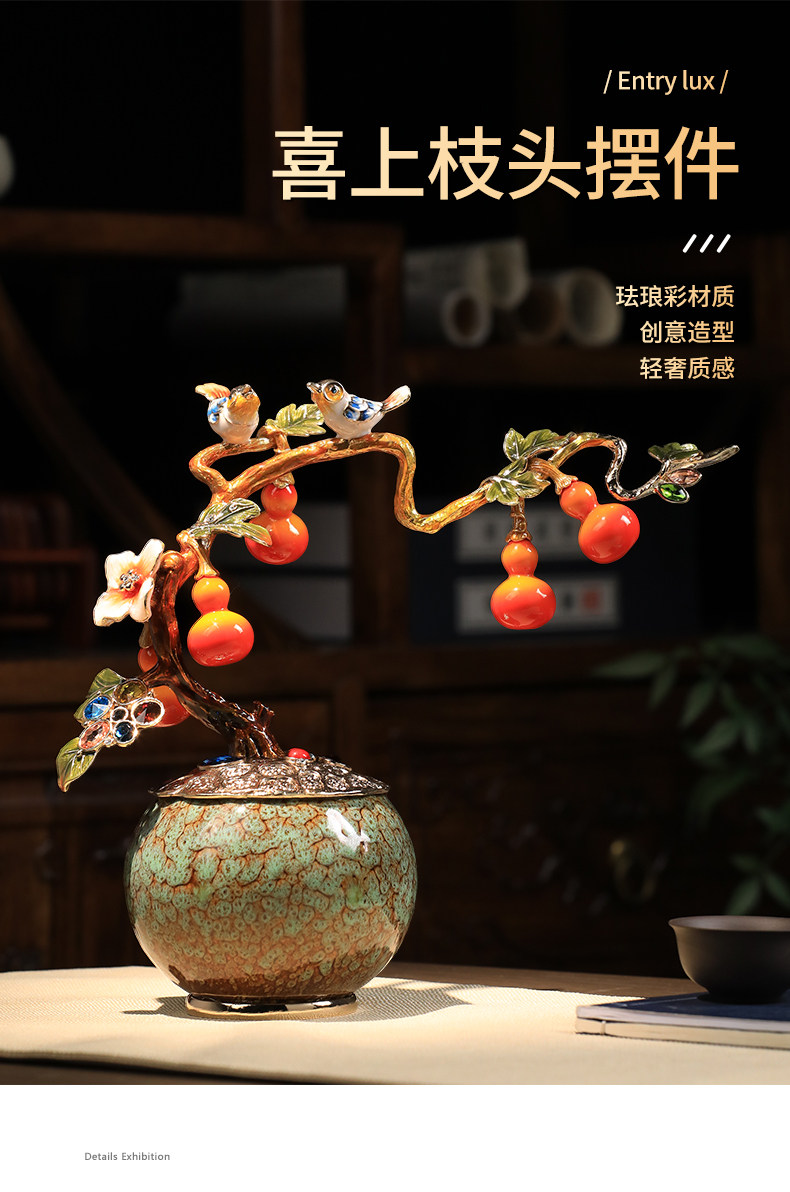 新款珐琅彩喜上枝头高档客厅办公室装饰摆件乔迁新居礼品开业送礼