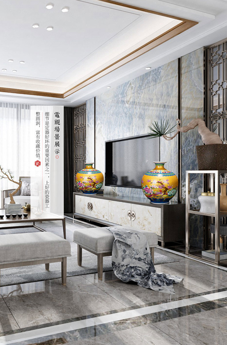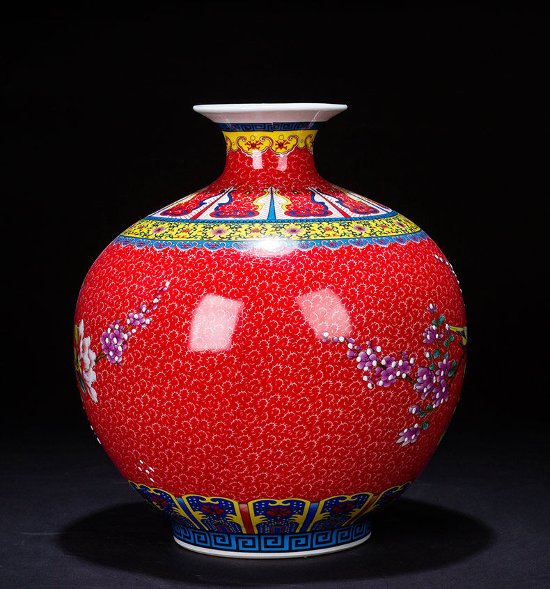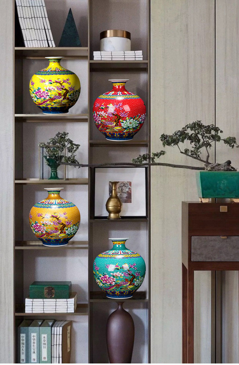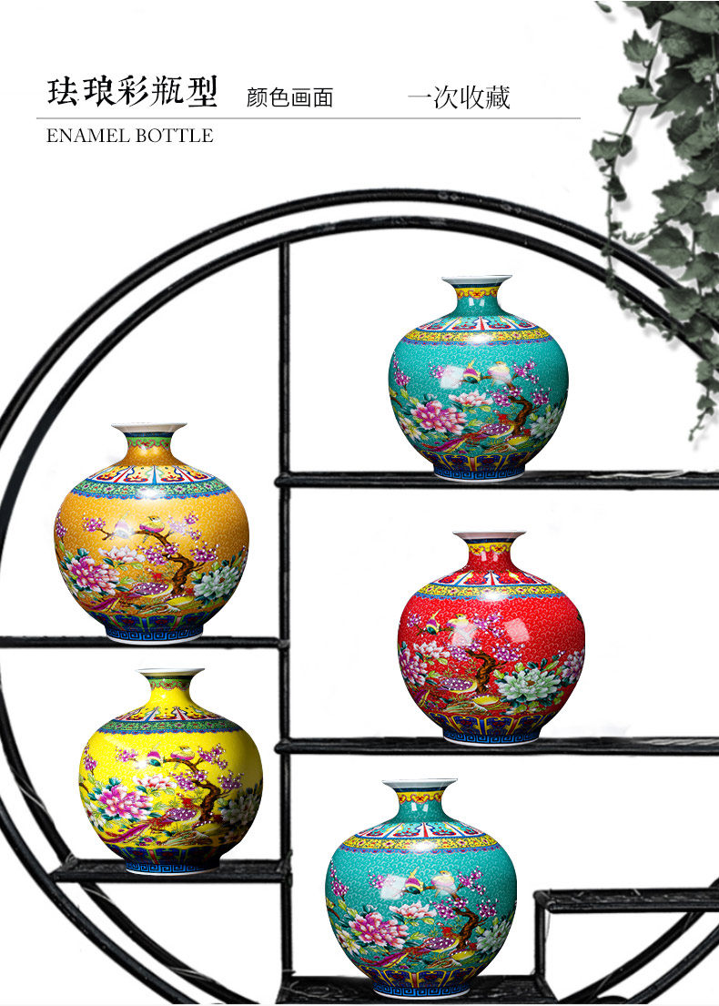 景德镇陶瓷花瓶摆件客厅插花博古架中式仿古珐琅彩工艺品家居饰品