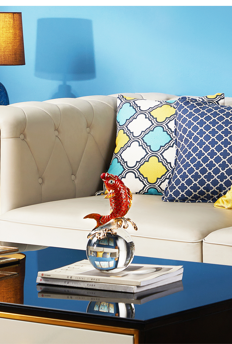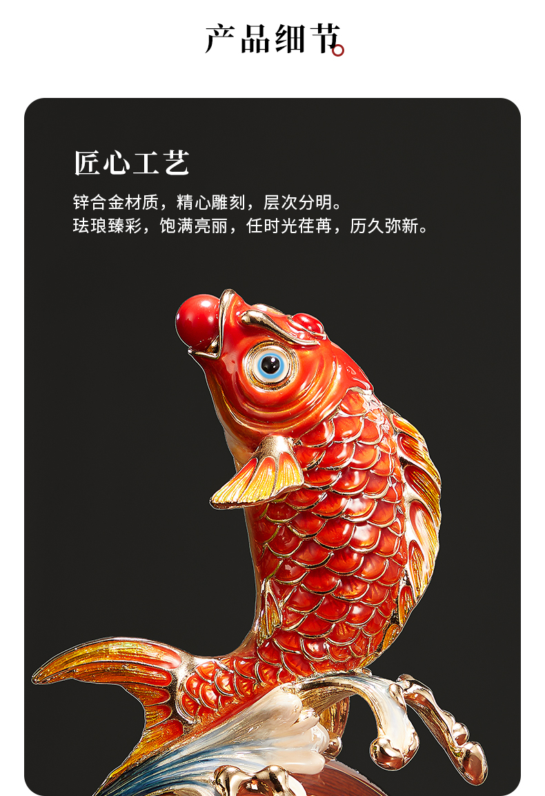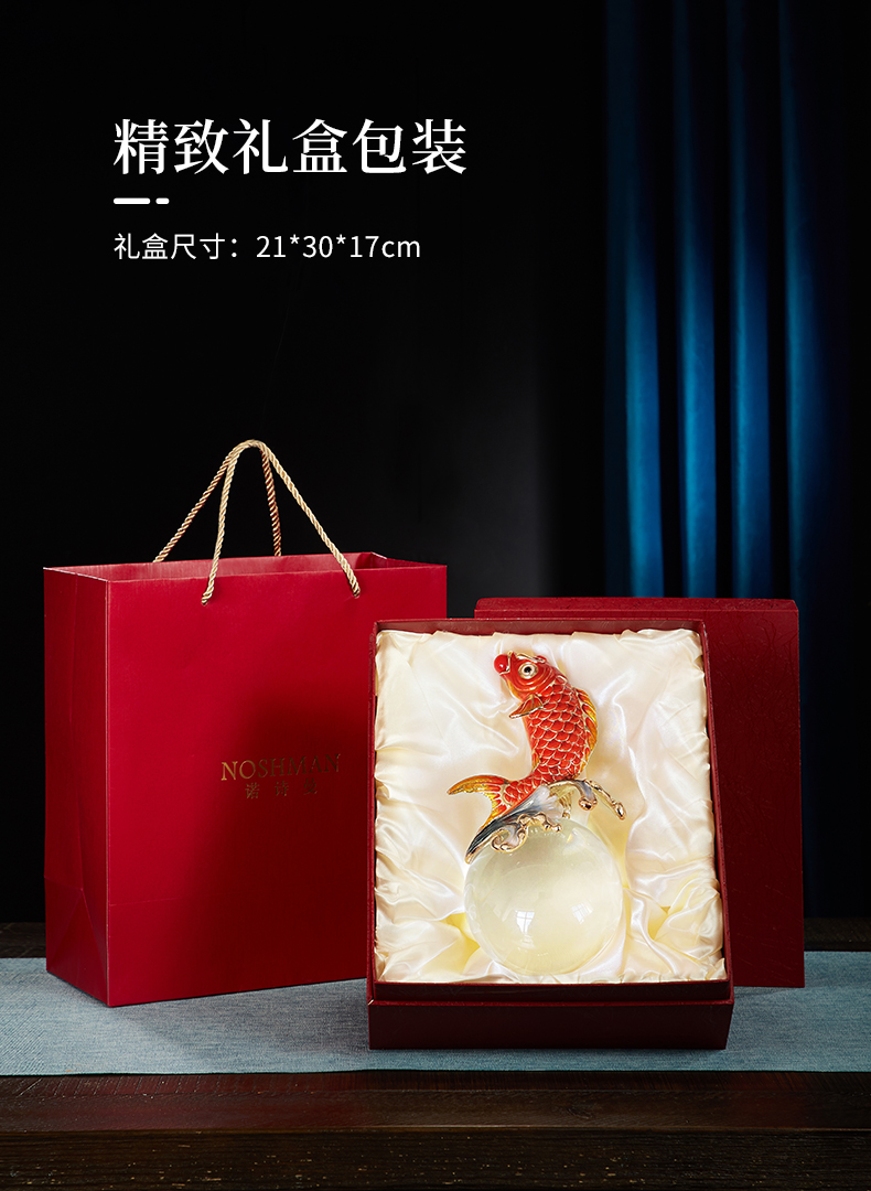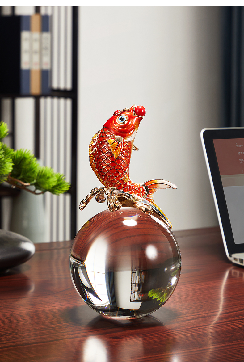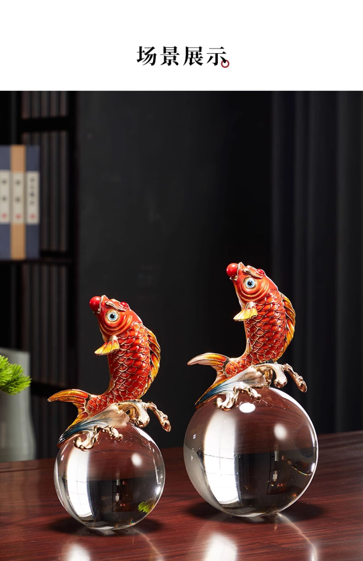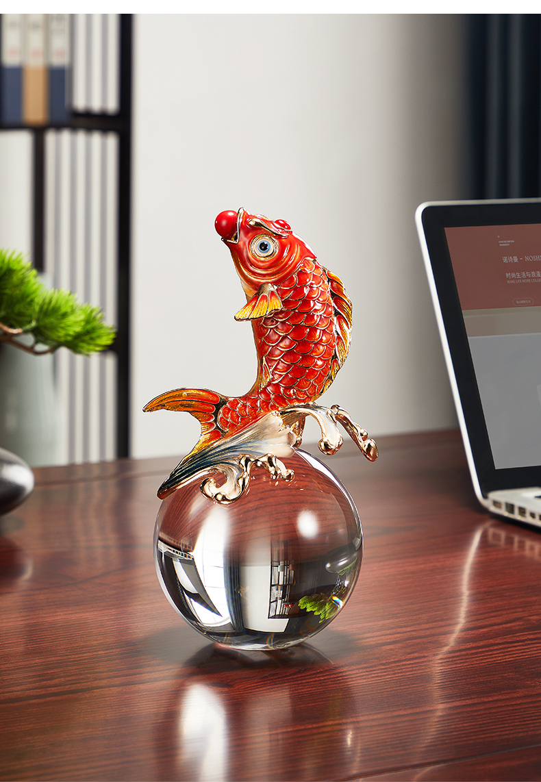 鸿运锦鲤珐琅彩鱼摆件招财好运球客厅电视柜书房创意家居装饰品