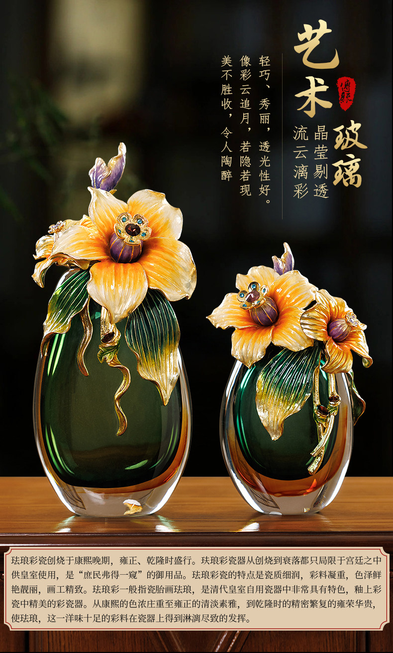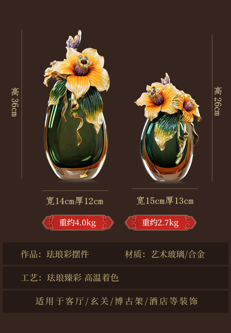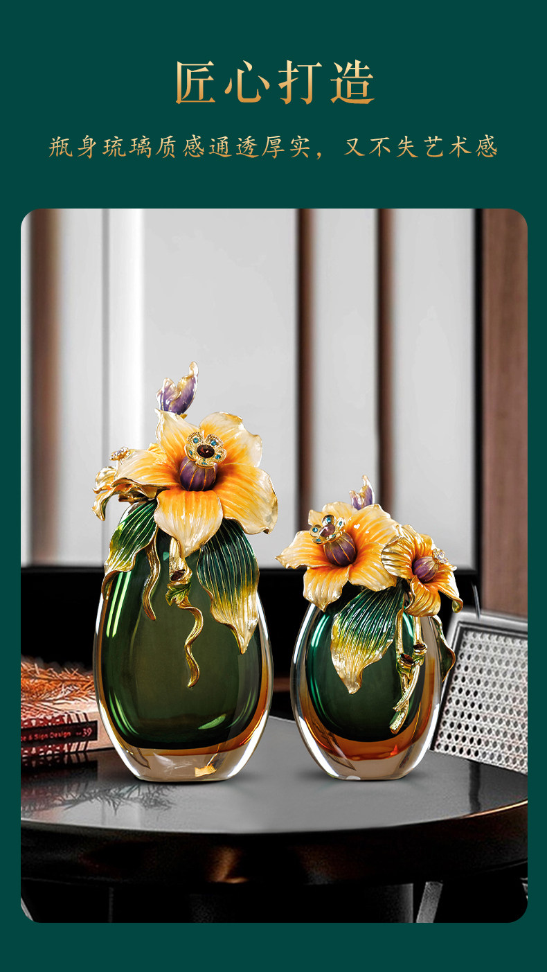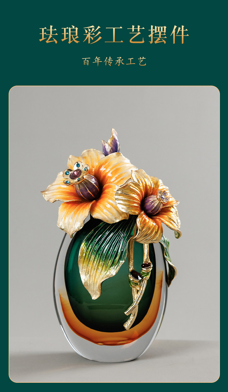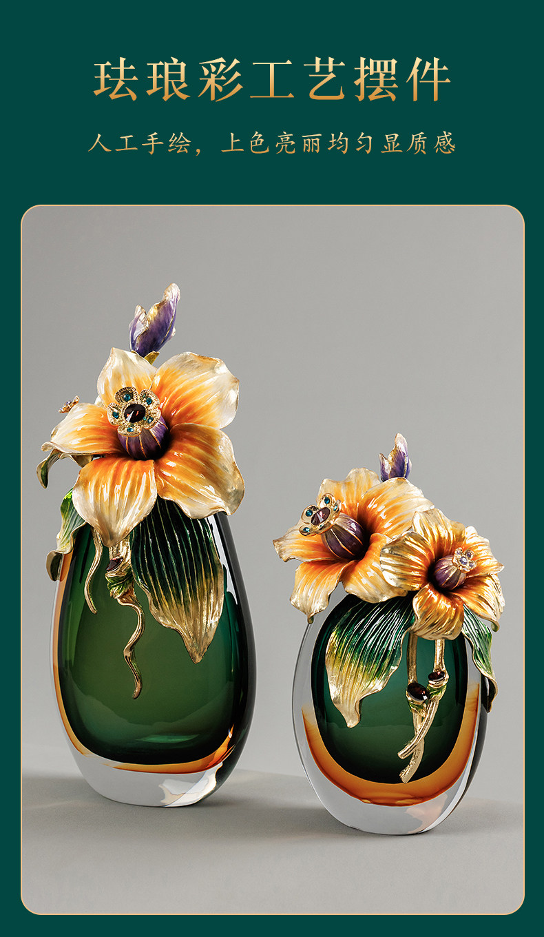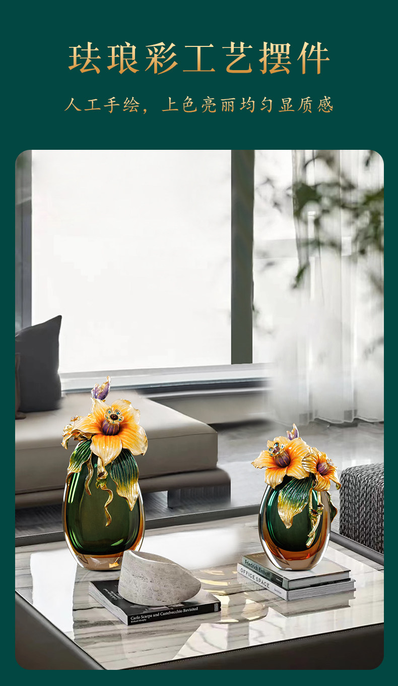 高档珐琅彩轻奢花瓶摆件一对客厅玄关高级感家居装饰乔迁新居礼物