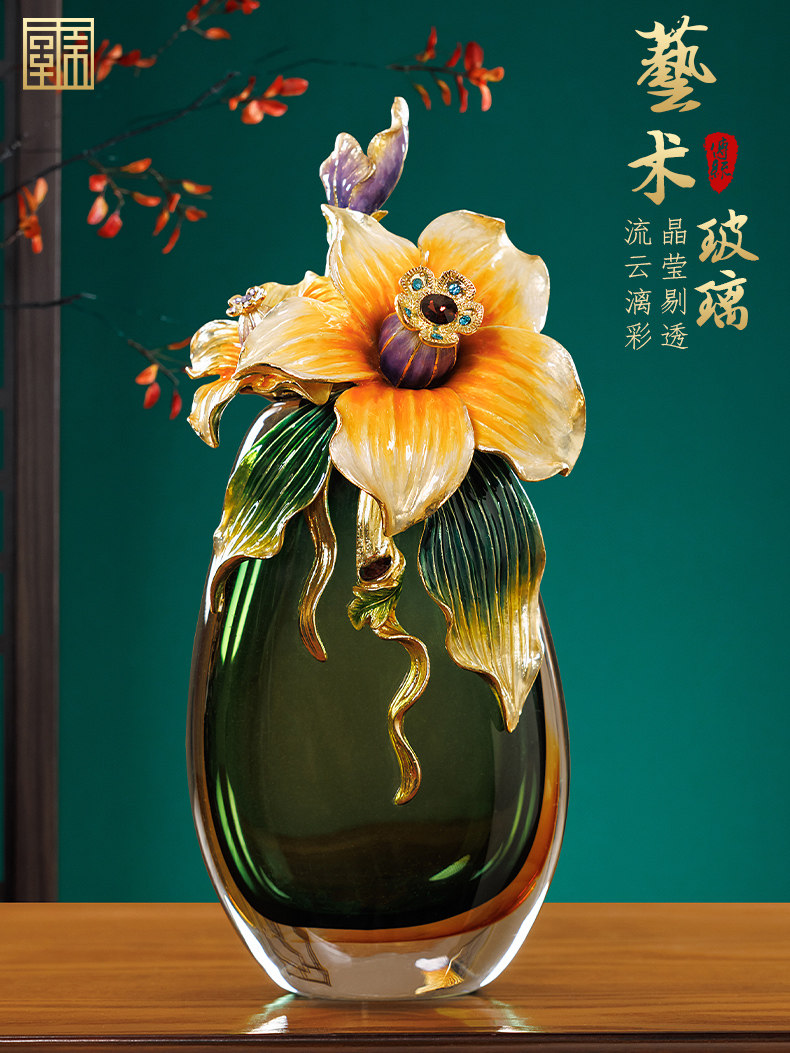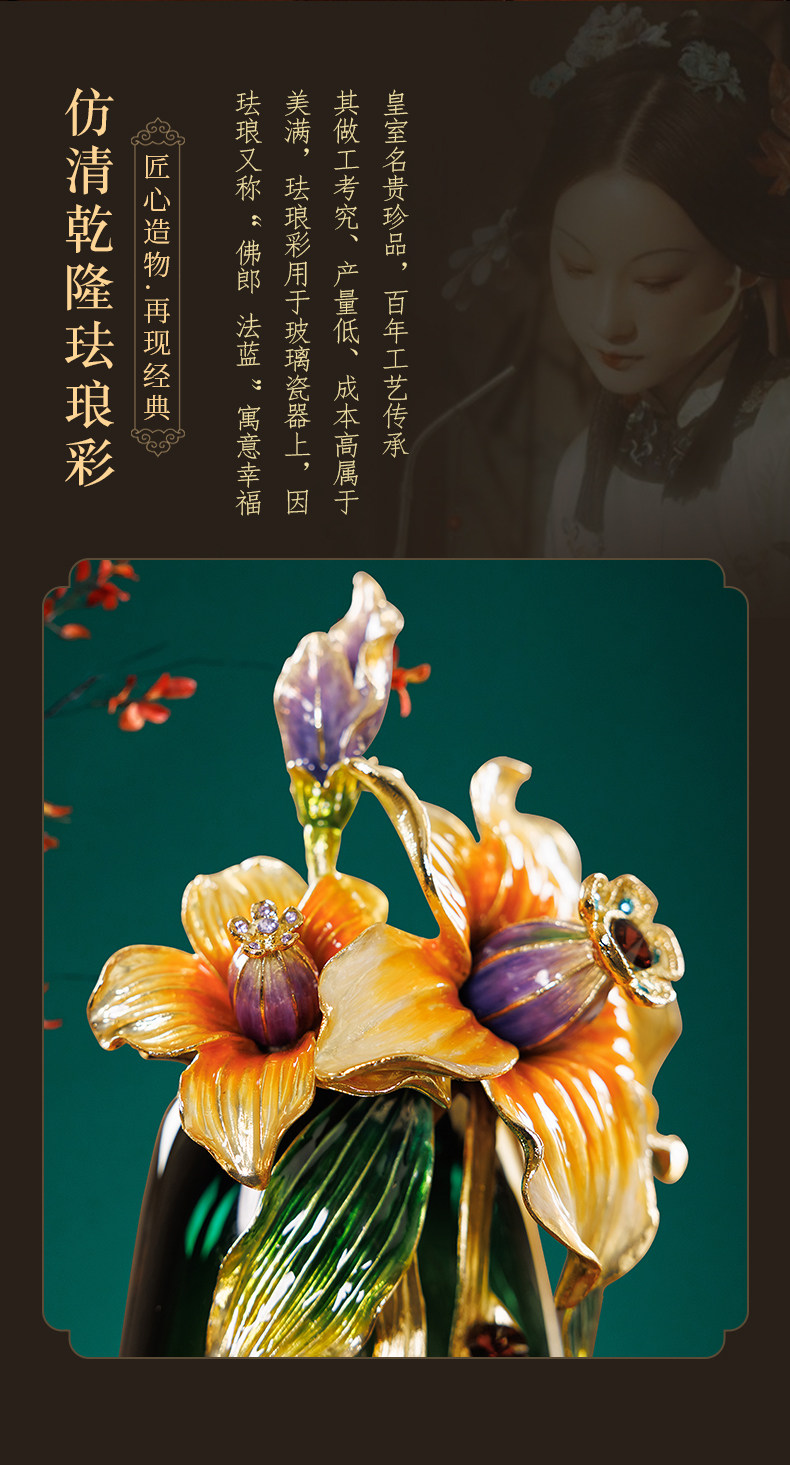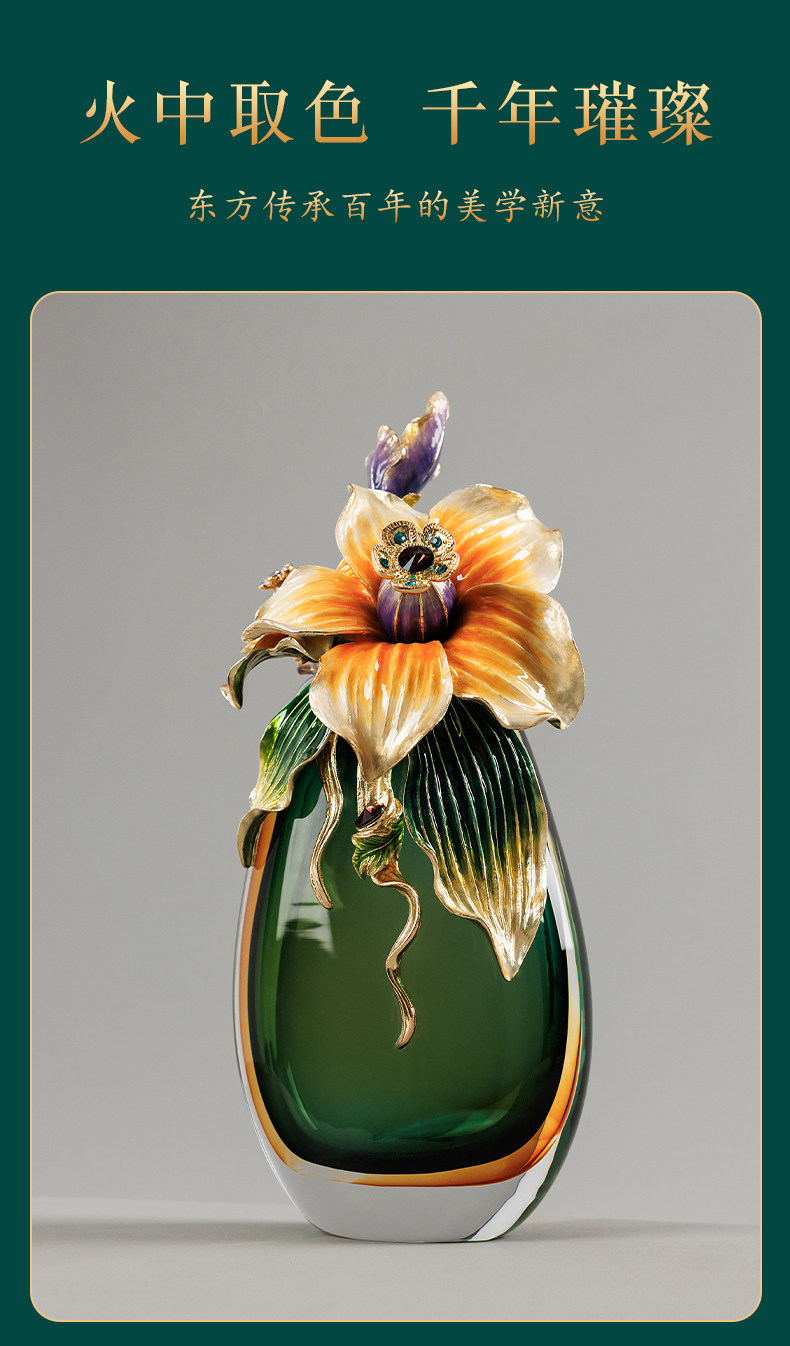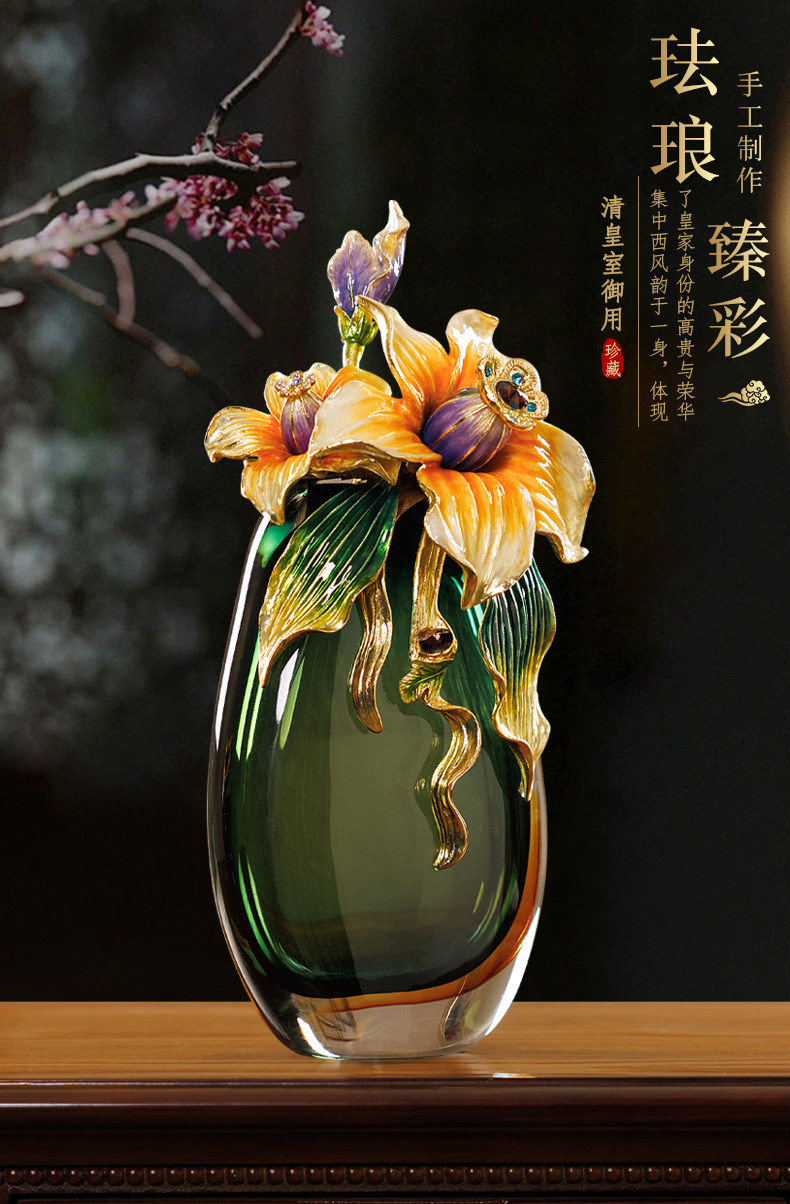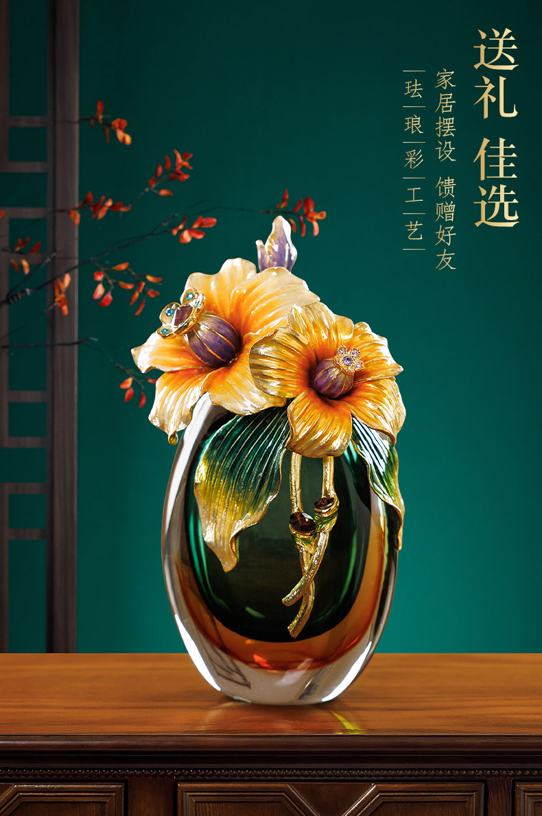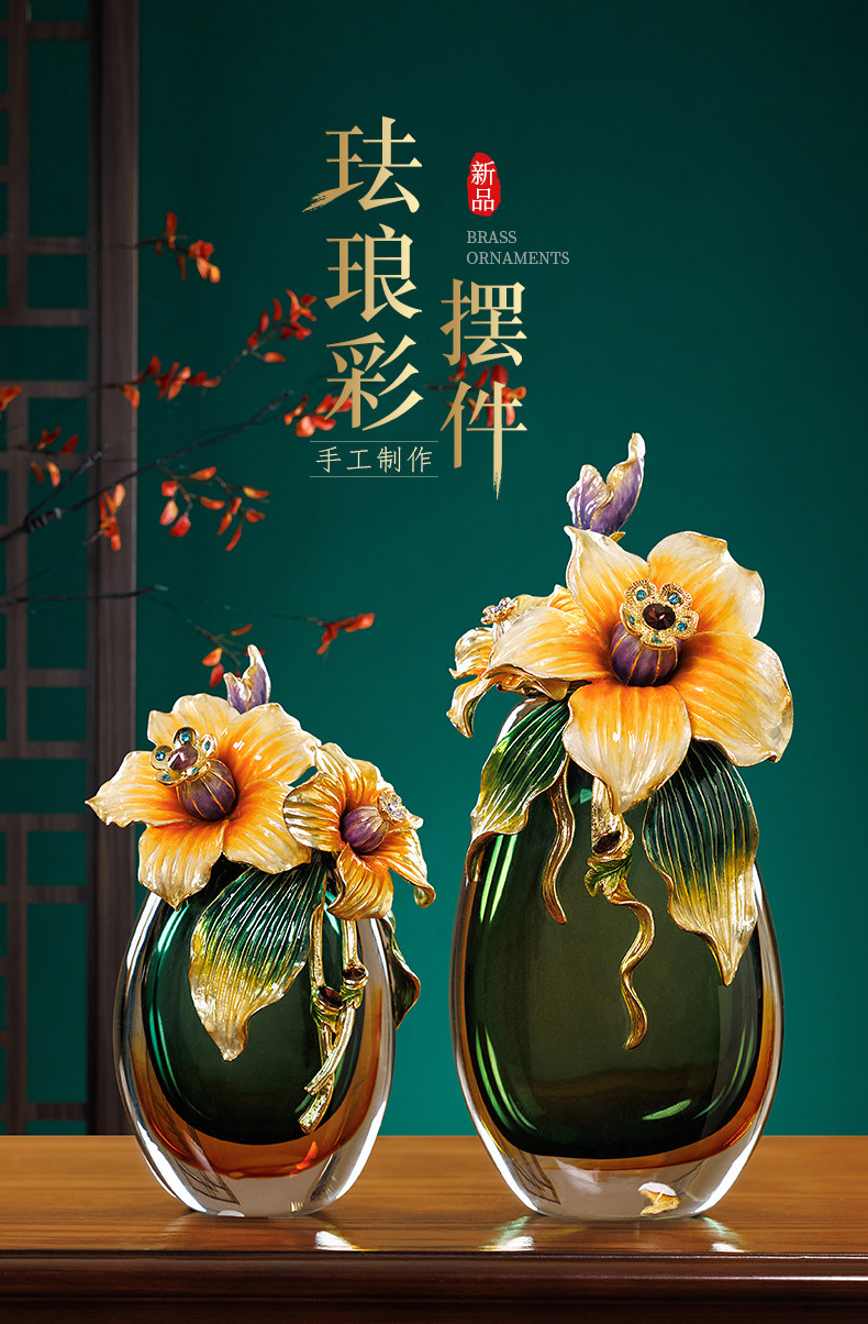高档珐琅彩轻奢花瓶摆件一对客厅玄关高级感家居装饰乔迁新居礼物
