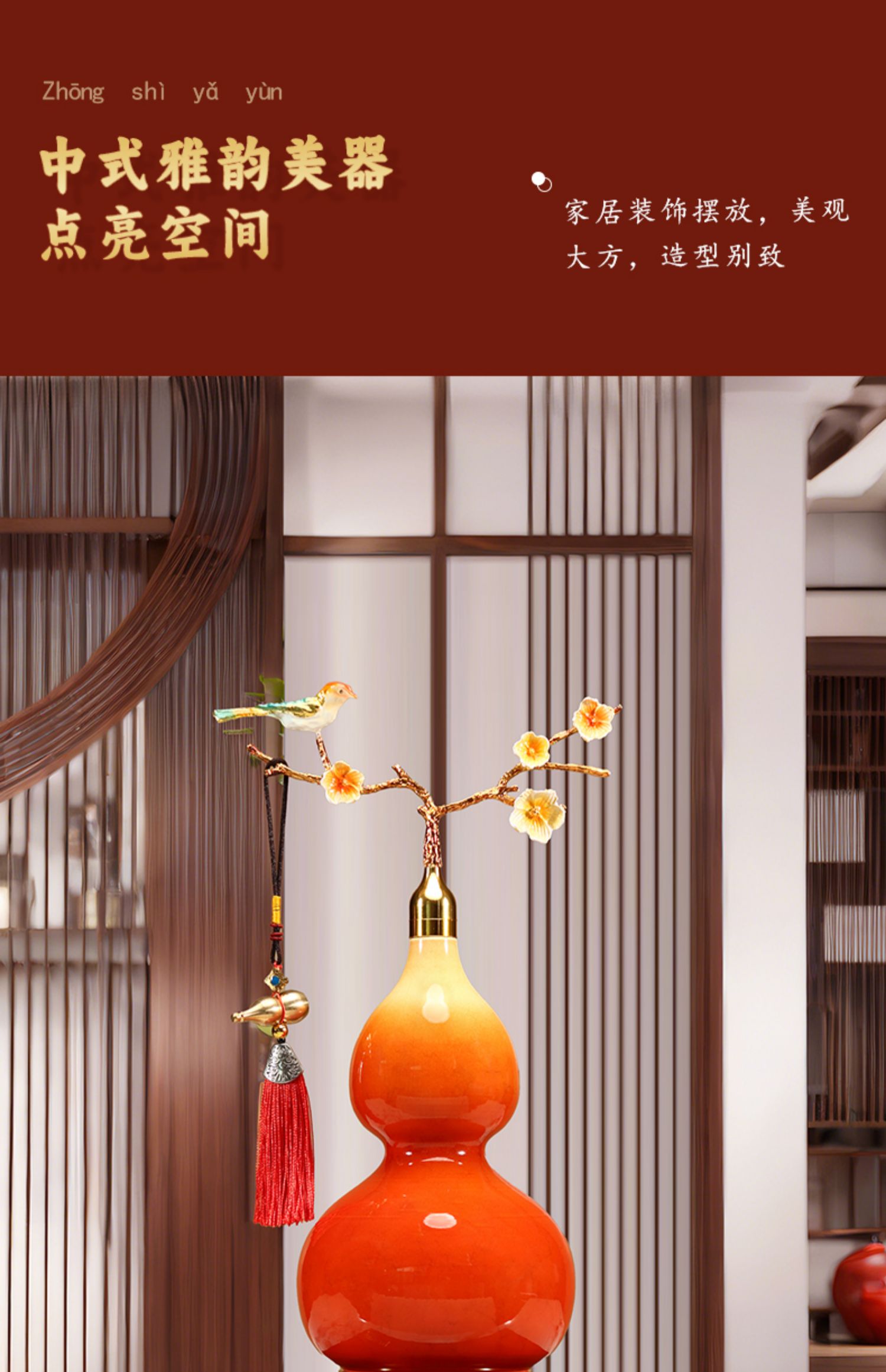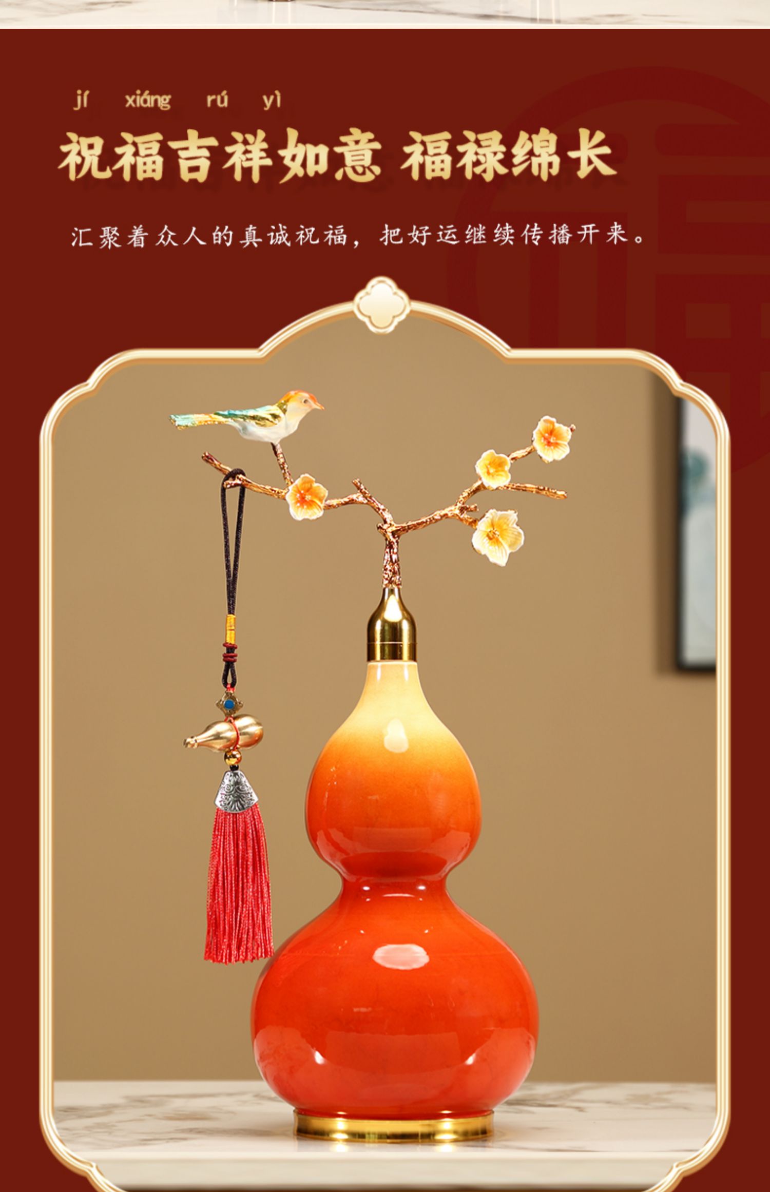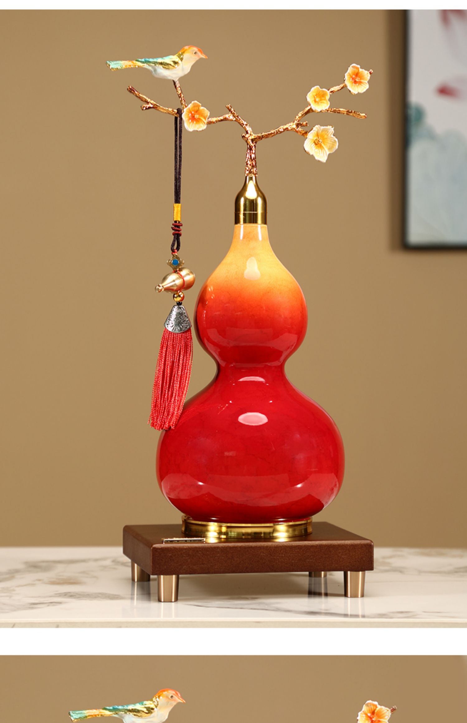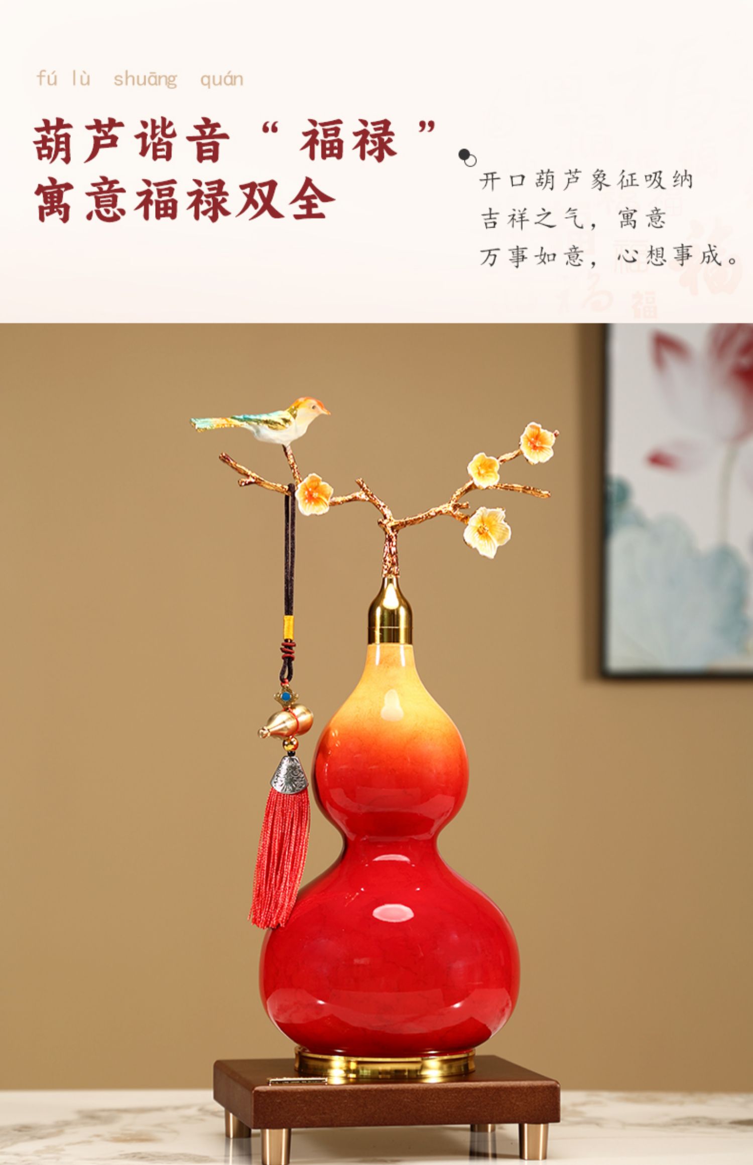 新中式开口葫芦摆件招财福禄金属珐琅彩办公室客厅玄关酒柜装饰品