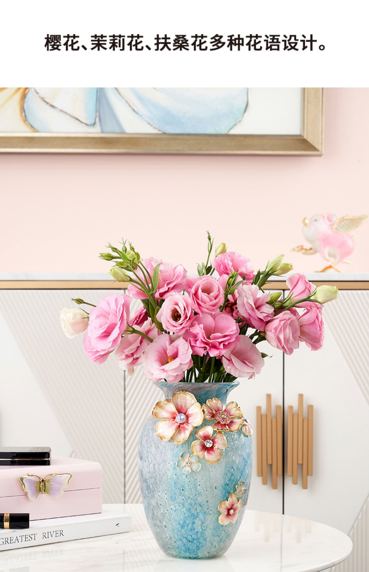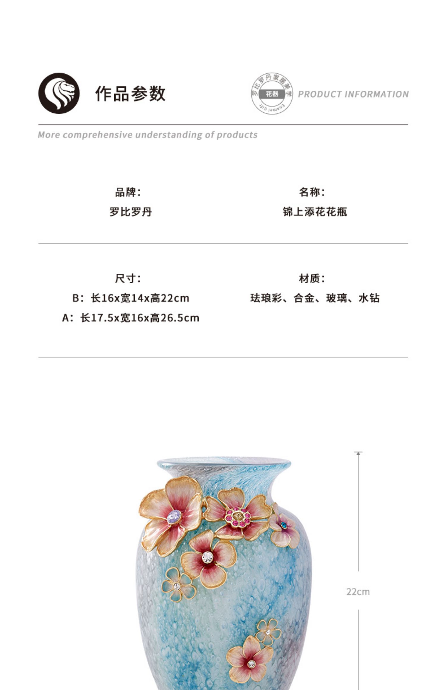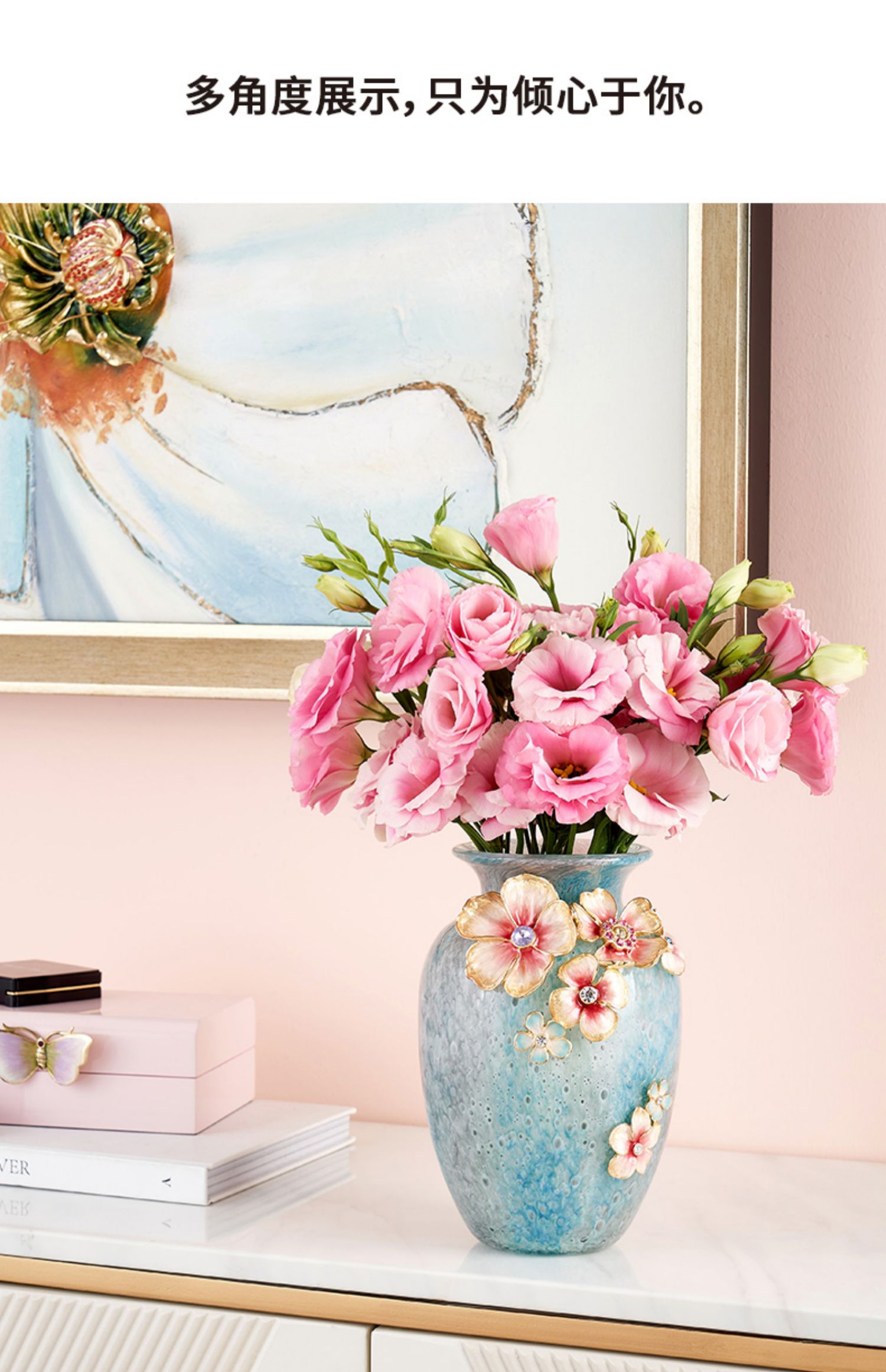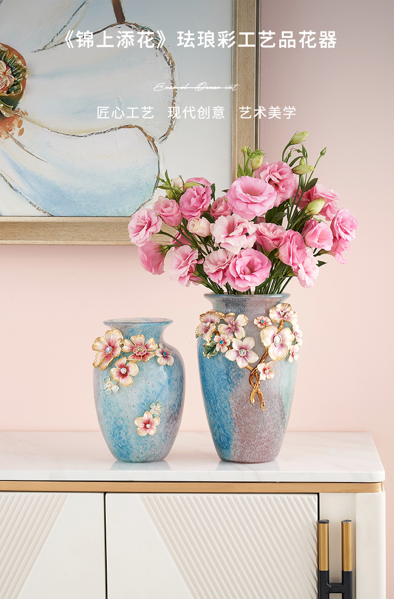 罗比罗丹锦上添花珐琅彩花瓶创意玄关插花摆件乔迁礼物