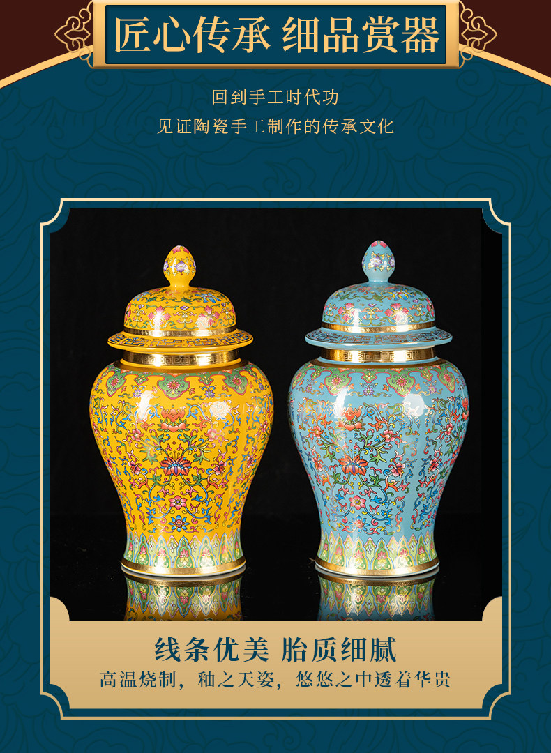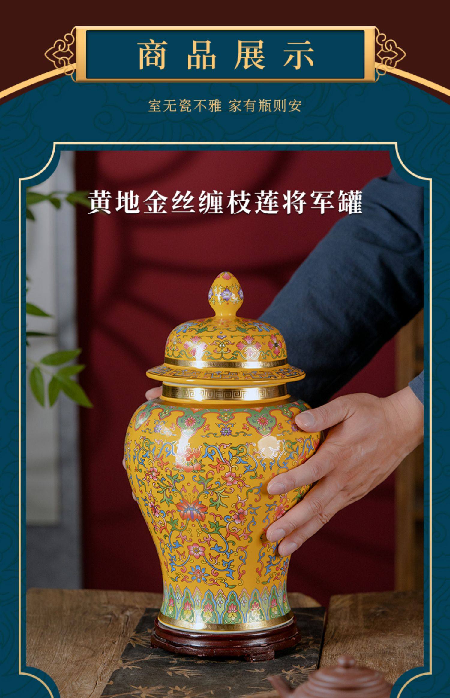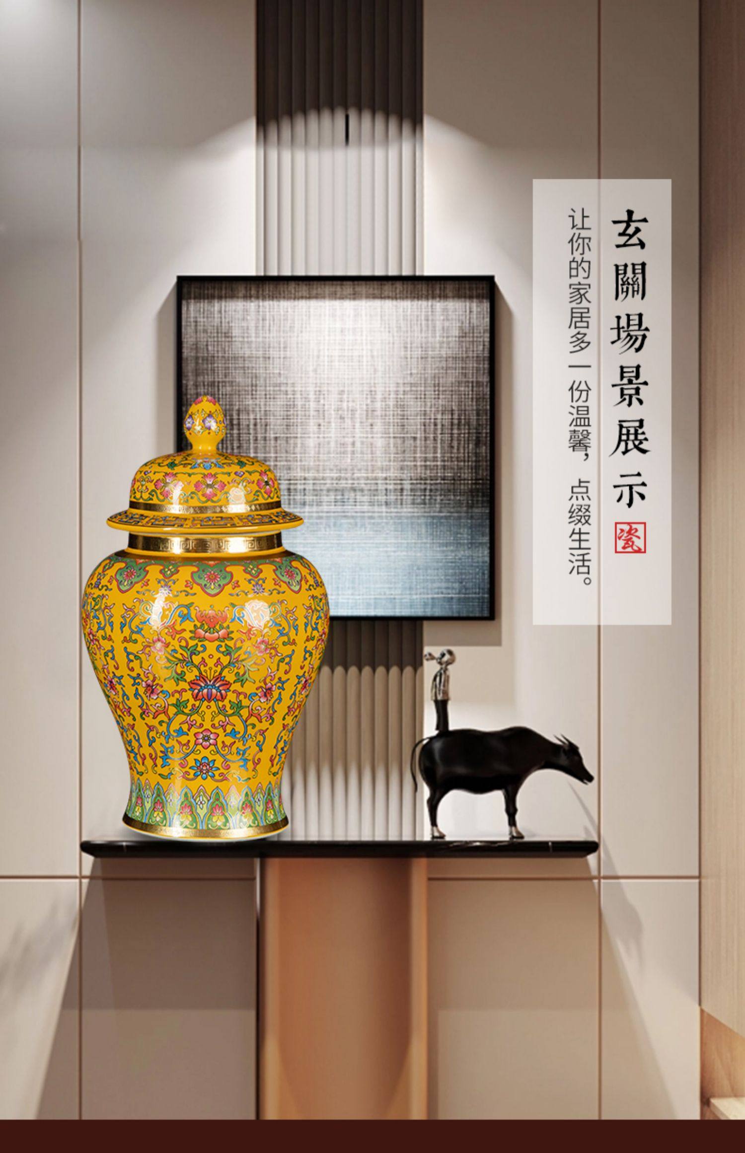 景德镇陶瓷轻奢简约珐琅彩将军罐花瓶客厅玄关仿古储物罐装饰摆件