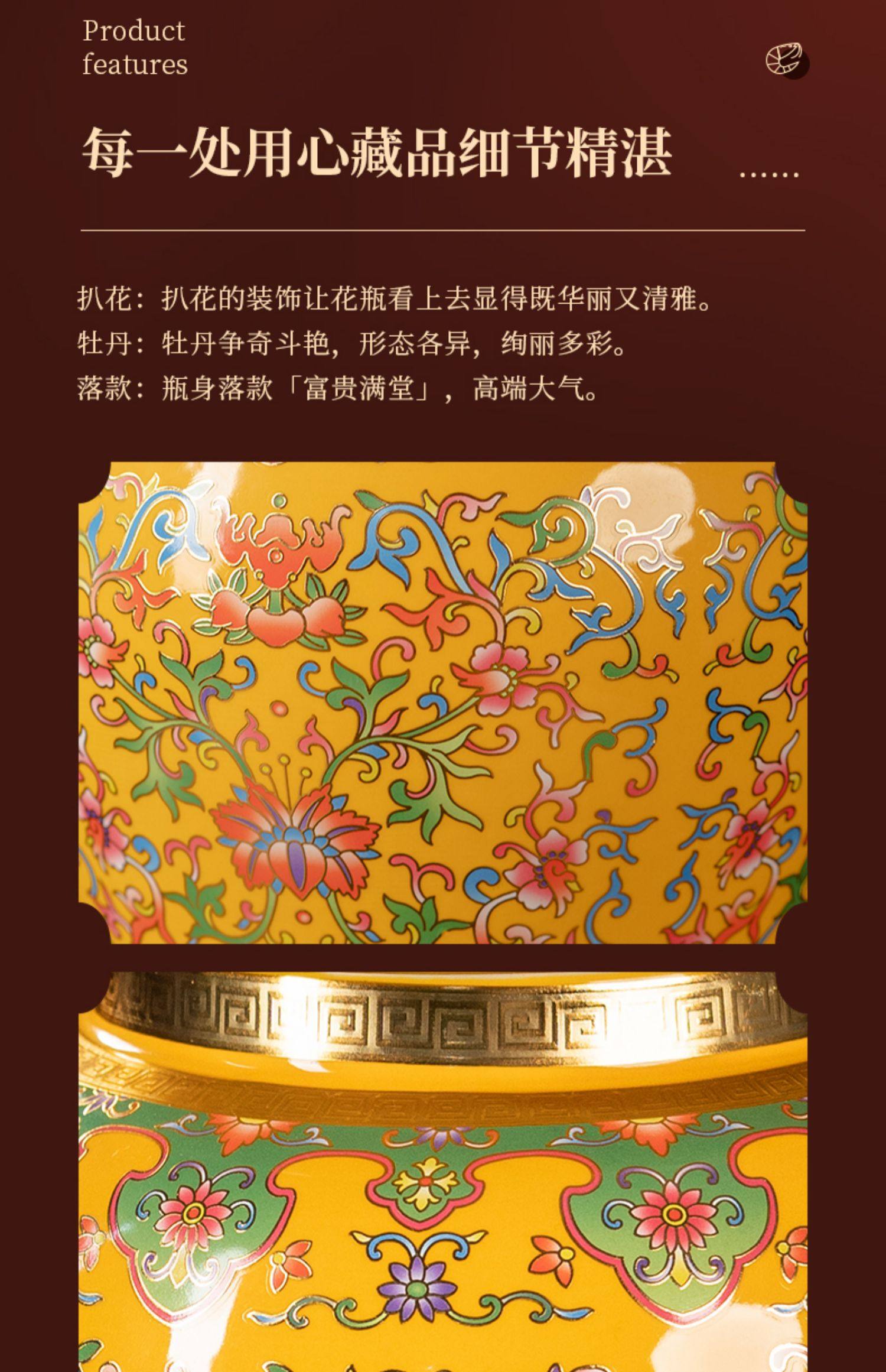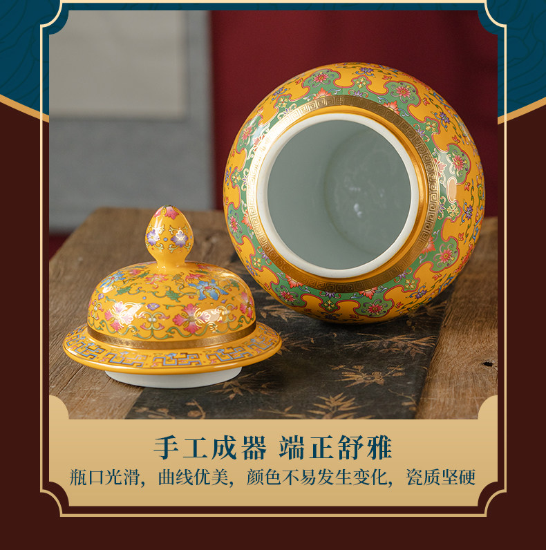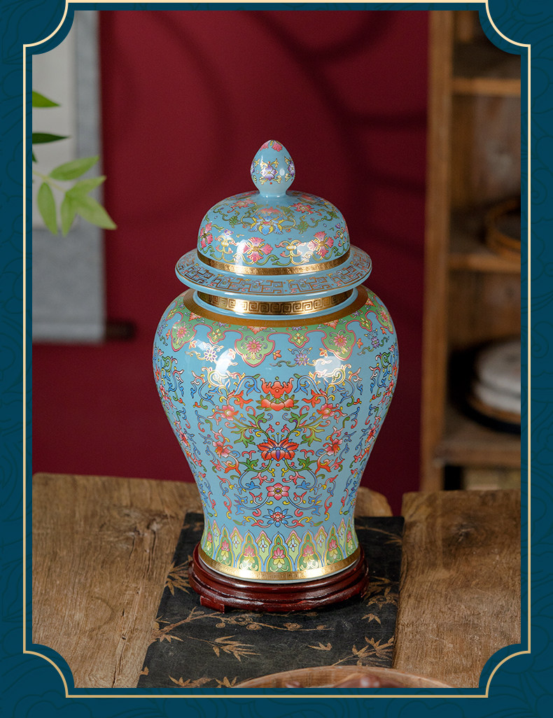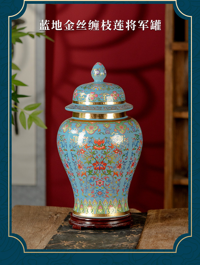 景德镇陶瓷轻奢简约珐琅彩将军罐花瓶客厅玄关仿古储物罐装饰摆件