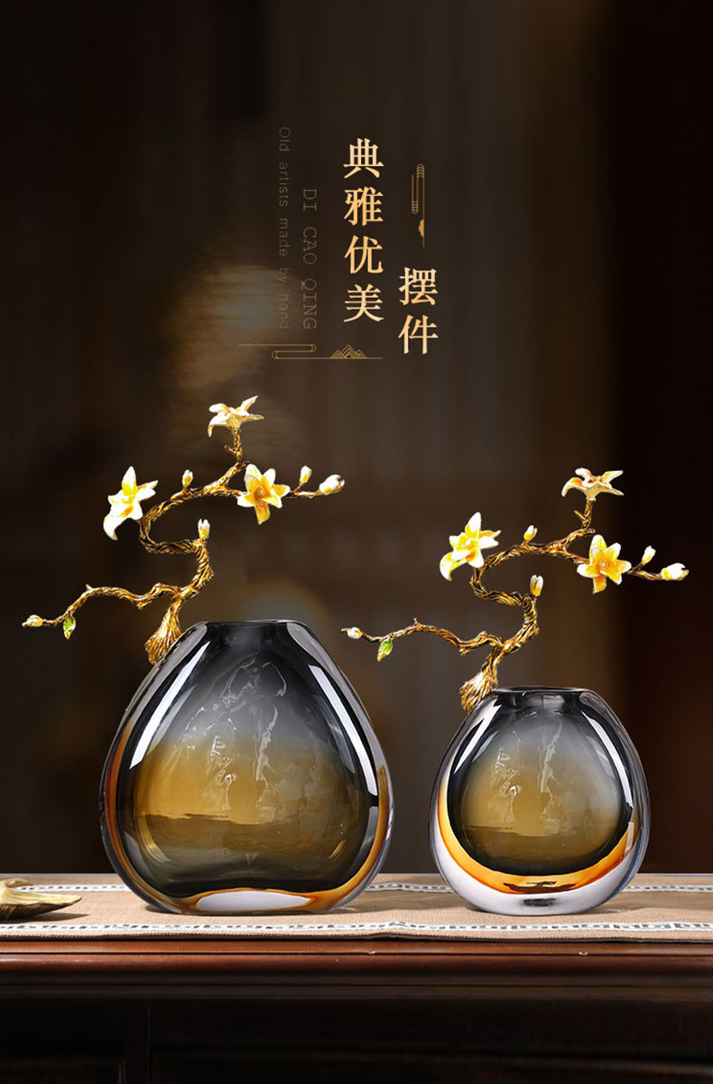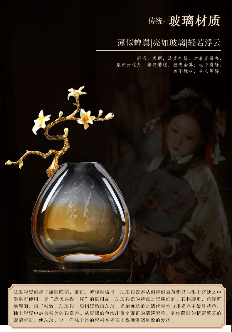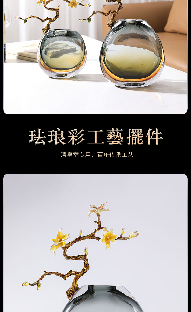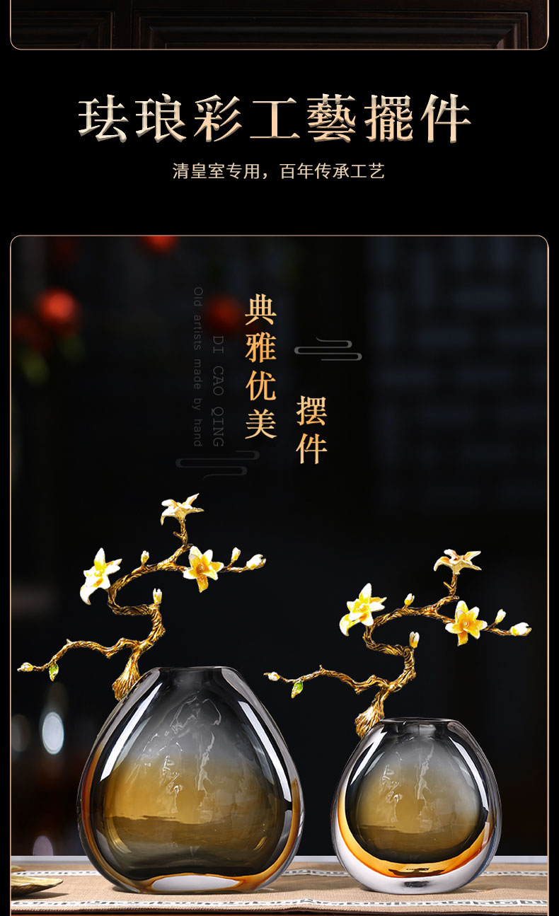 珐琅彩工艺品轻奢装饰中式花瓶摆件家居乔迁高级客厅高端大气玄关