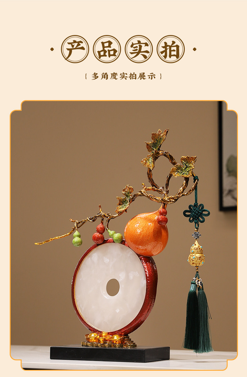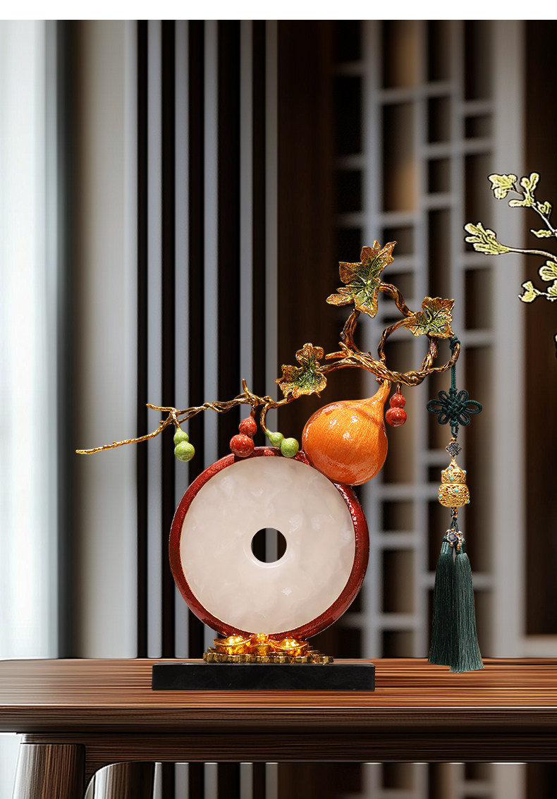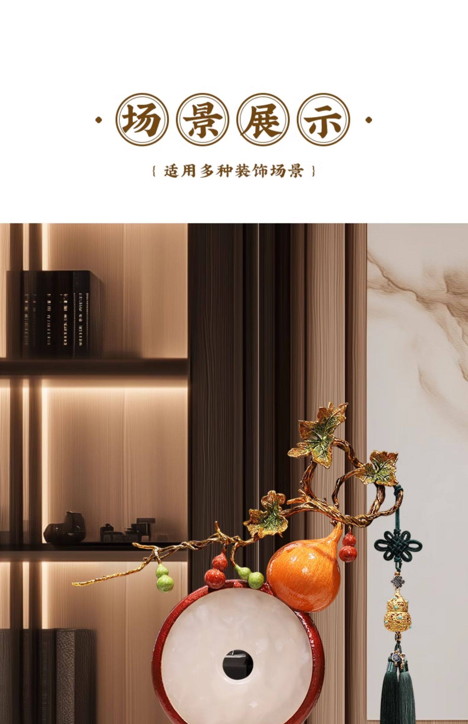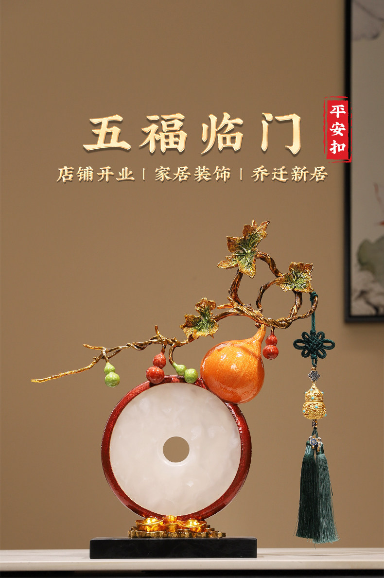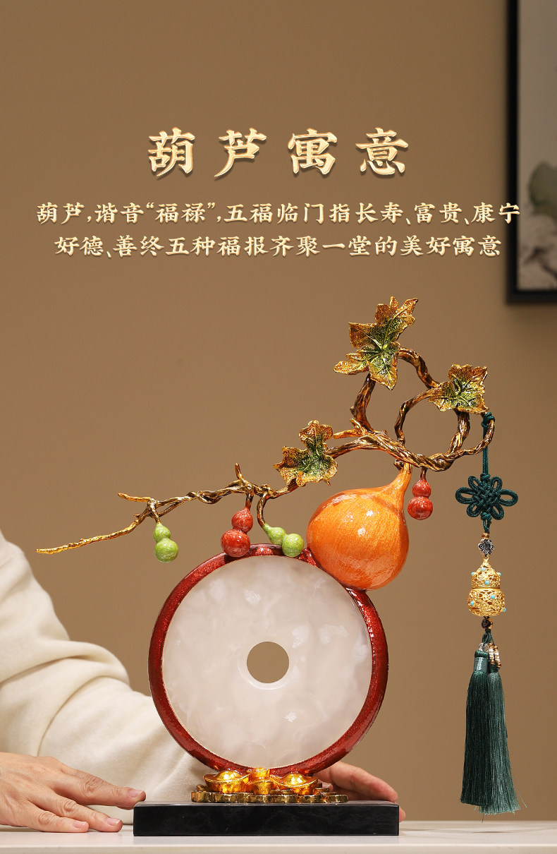 五福临门葫芦玉石平安扣摆件高档珐琅彩新中式家居装饰送乔迁礼品