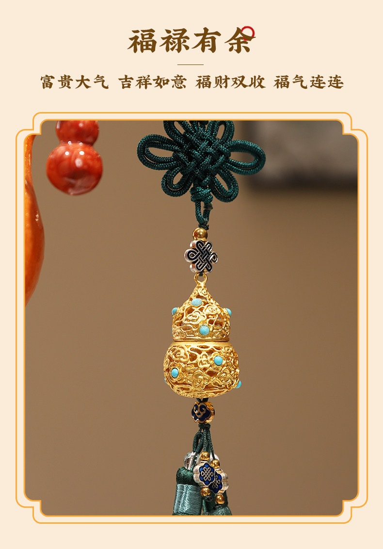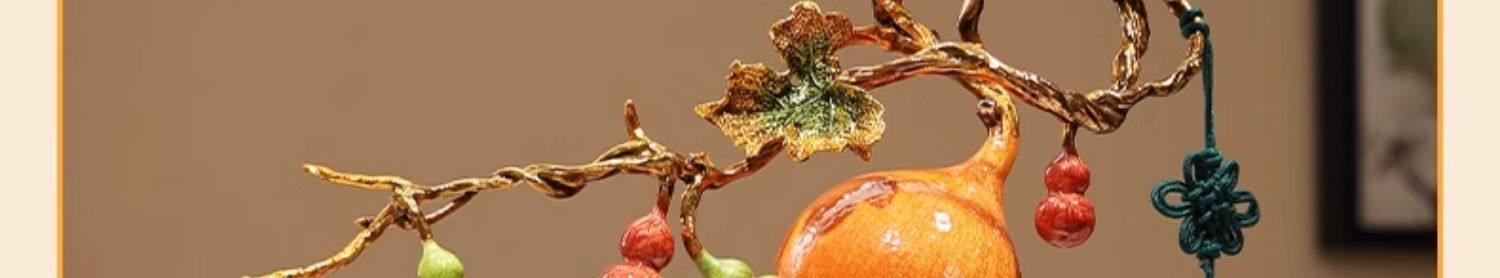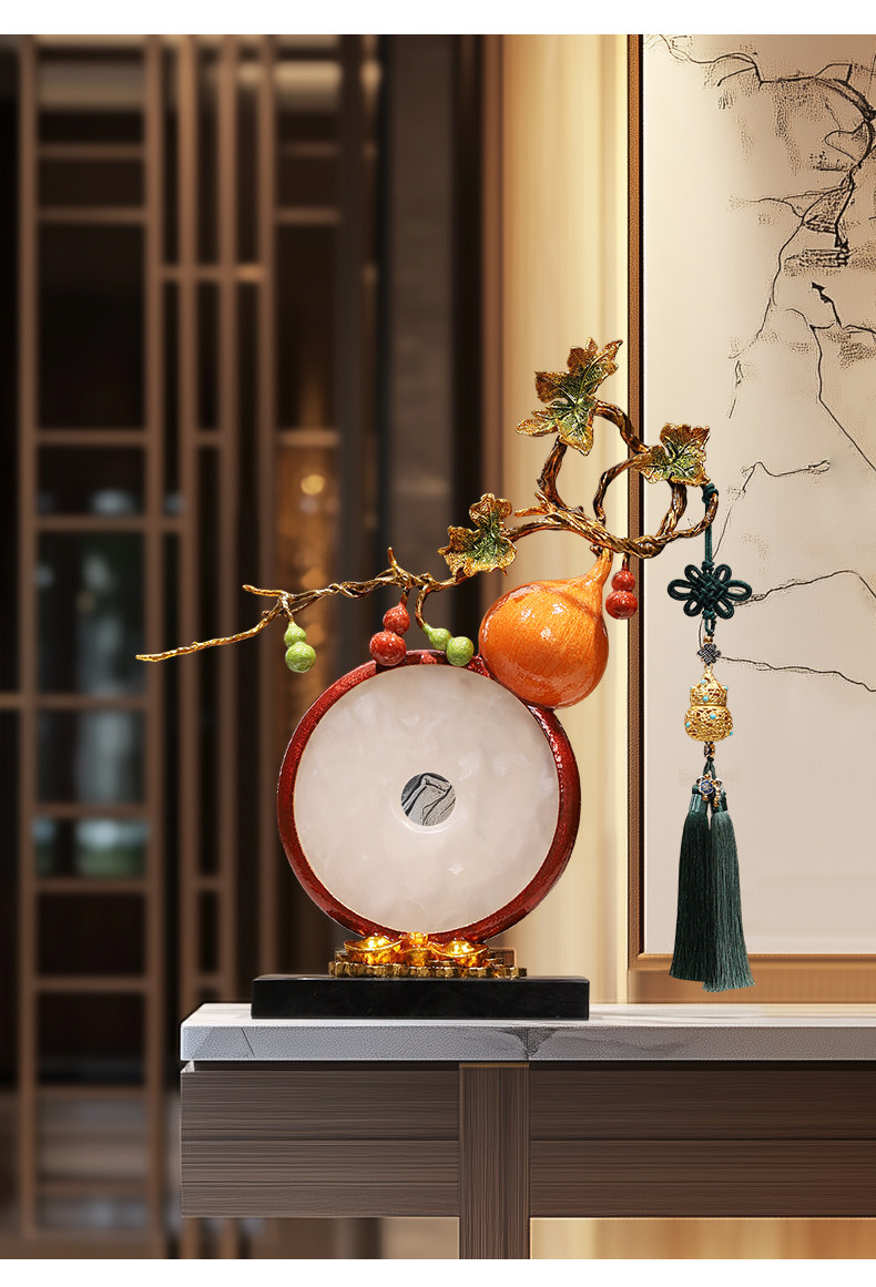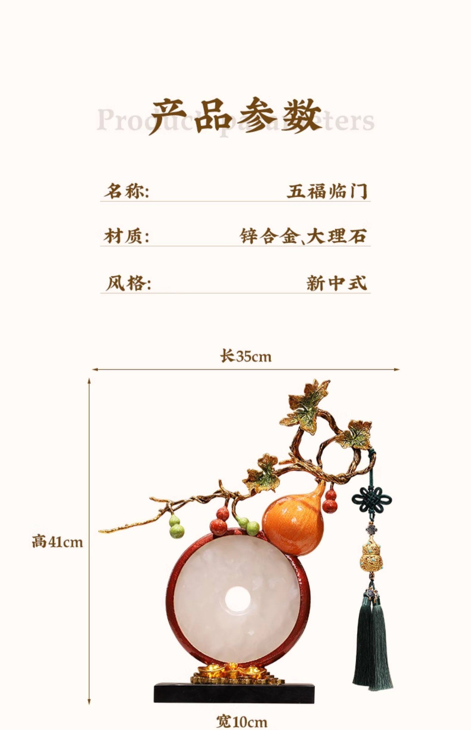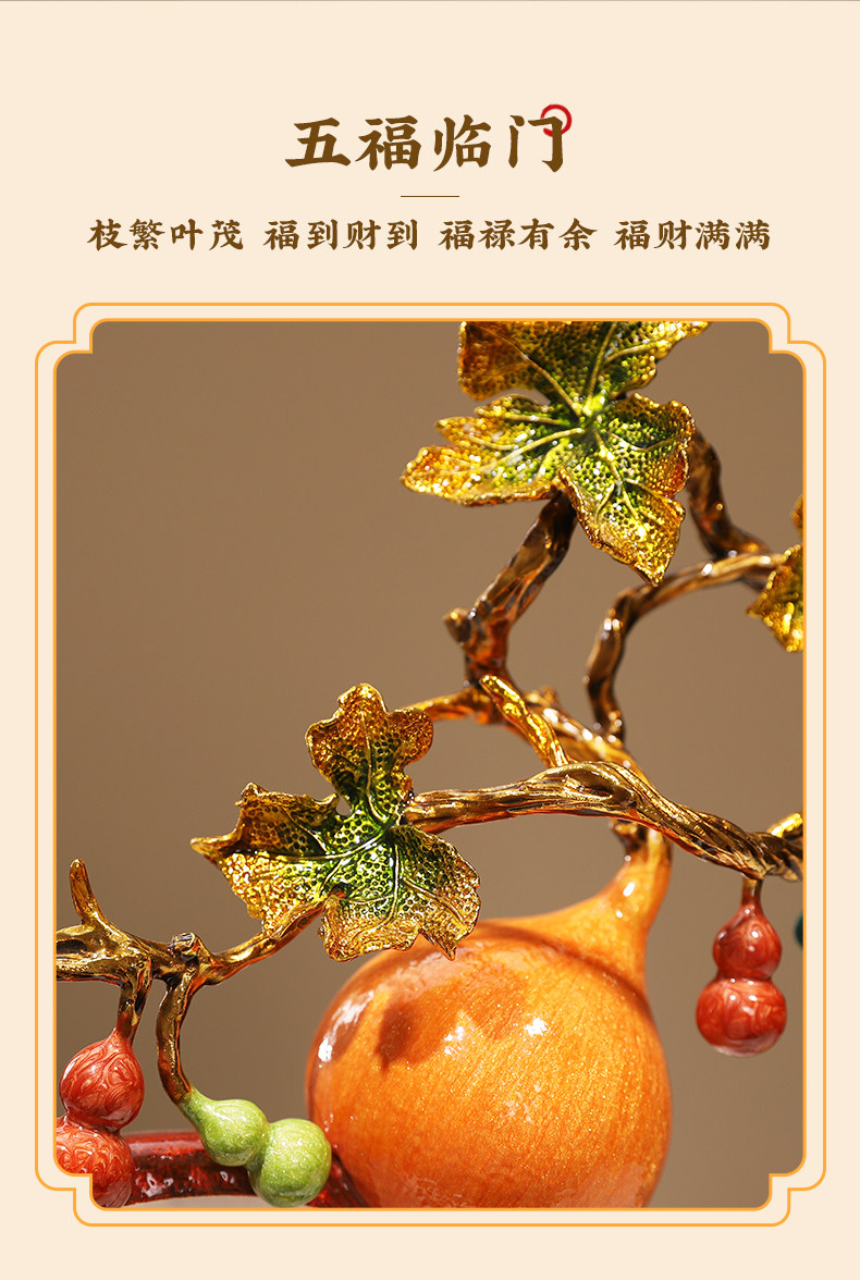 五福临门葫芦玉石平安扣摆件高档珐琅彩新中式家居装饰送乔迁礼品