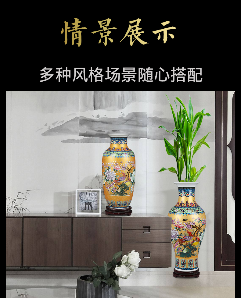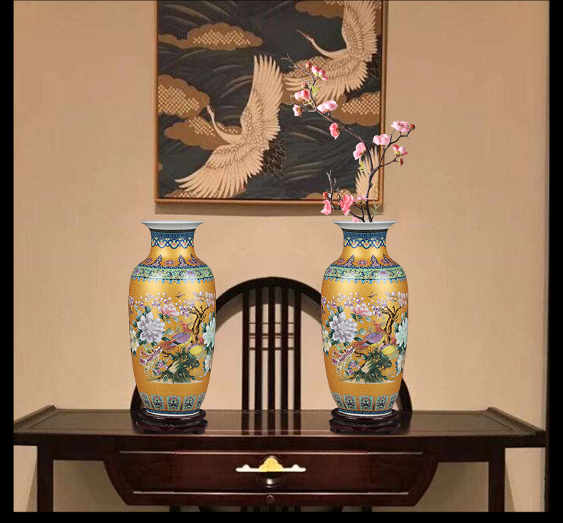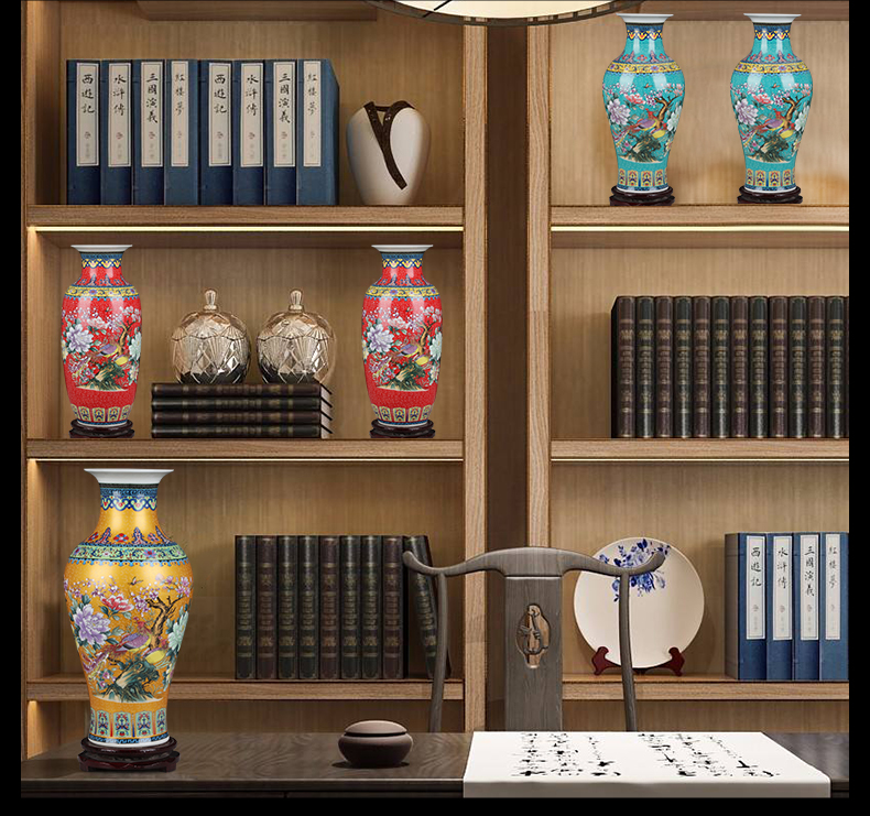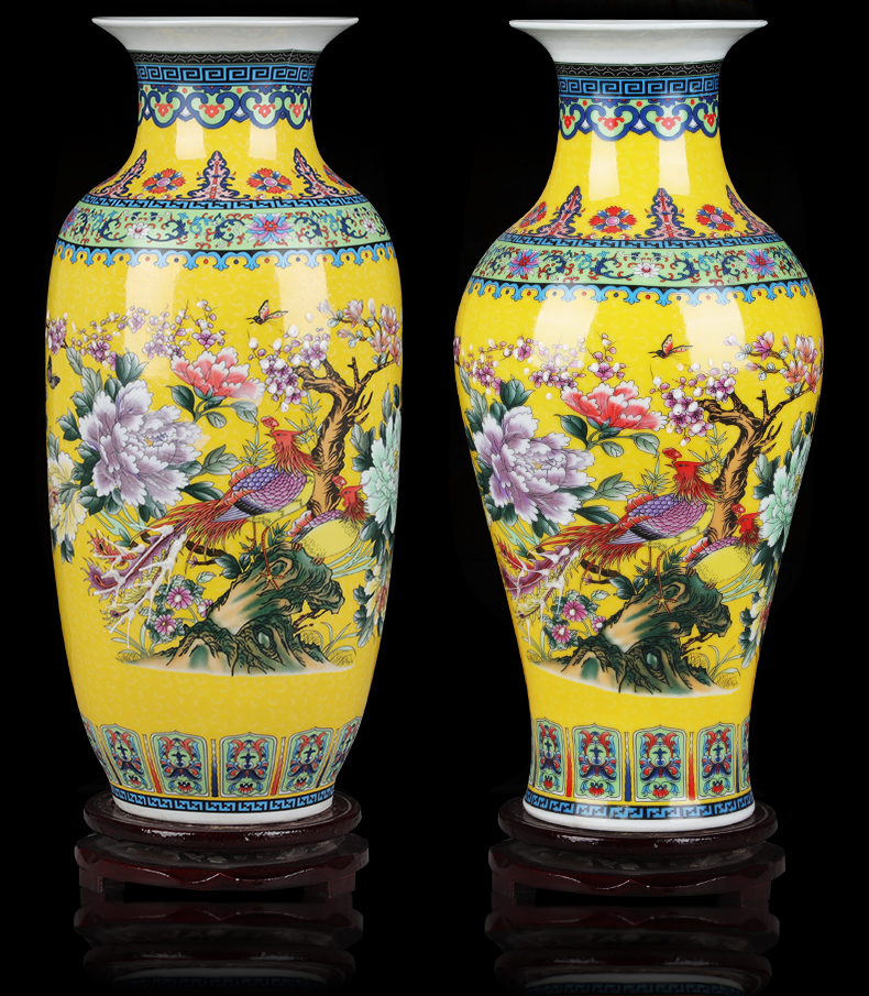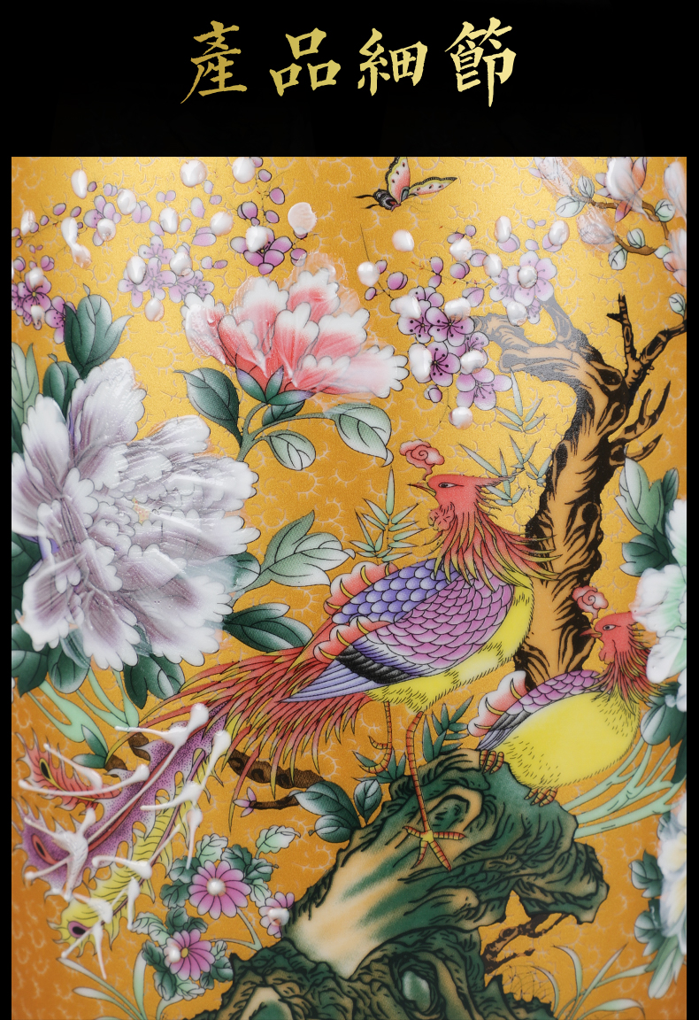 景德镇陶瓷器花瓶花插珐琅彩凤凰仿古中式客厅卧室摆件送底座包邮
