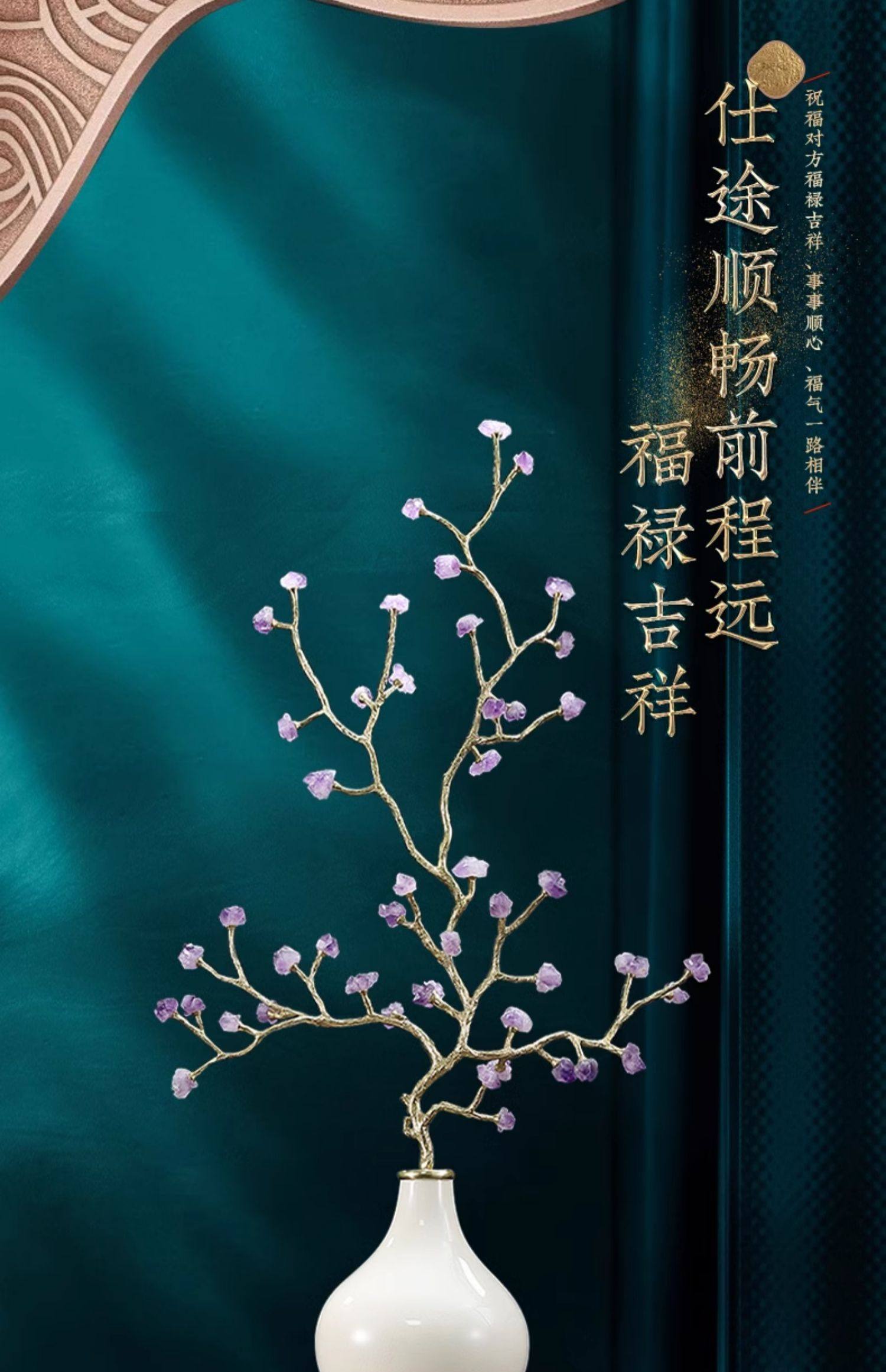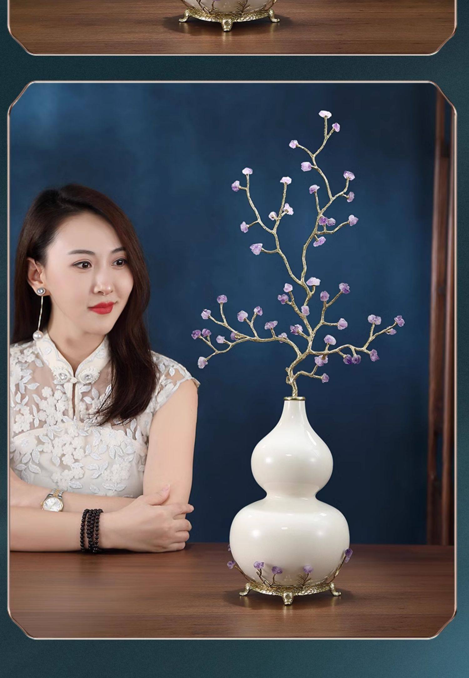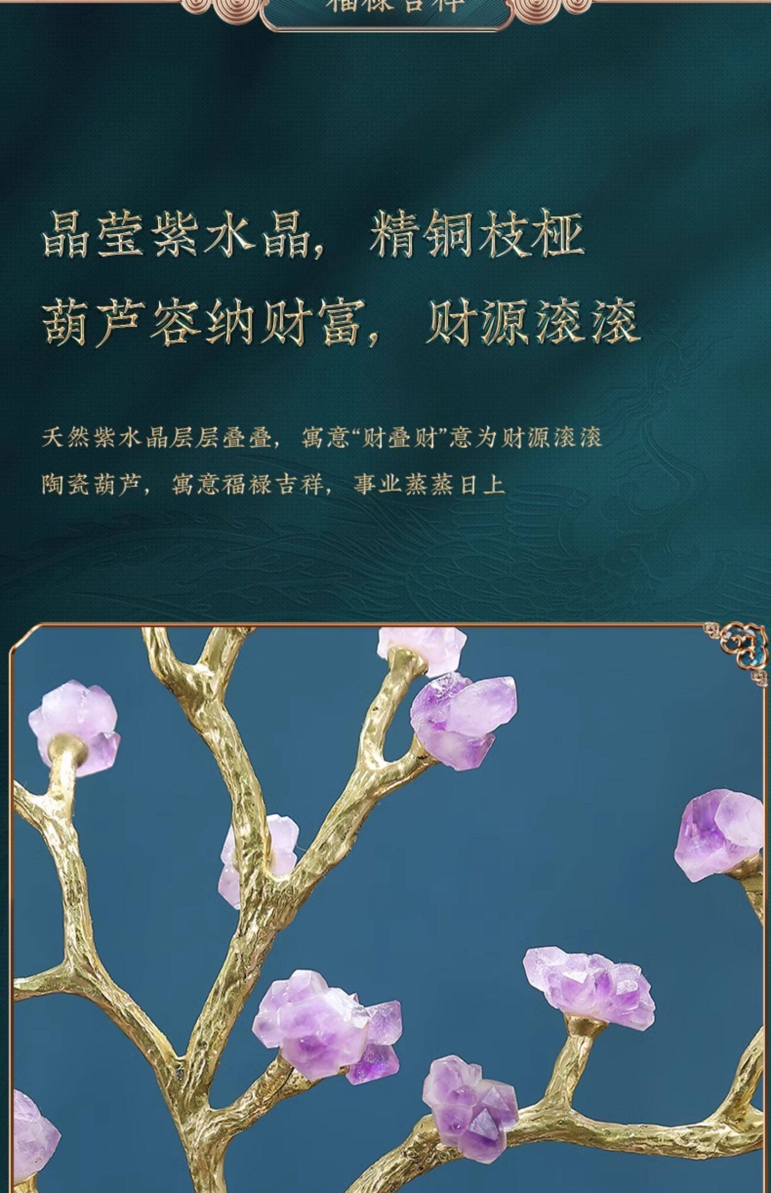 紫水晶发财树高级葫芦摆件客厅招财乔迁高档玄关入户装饰紫气东来
