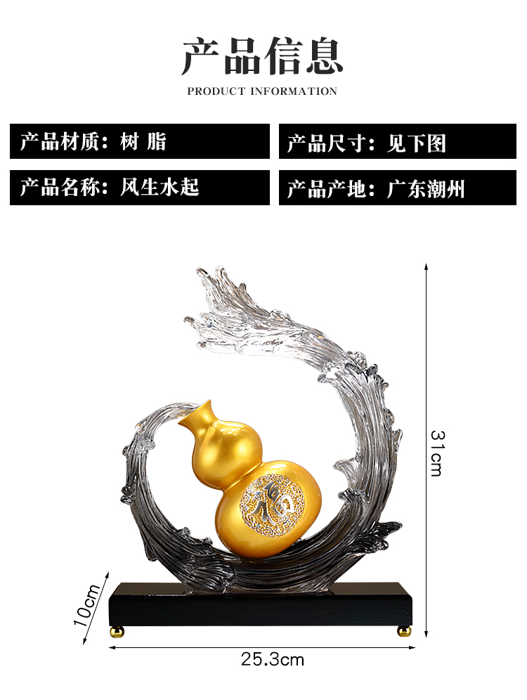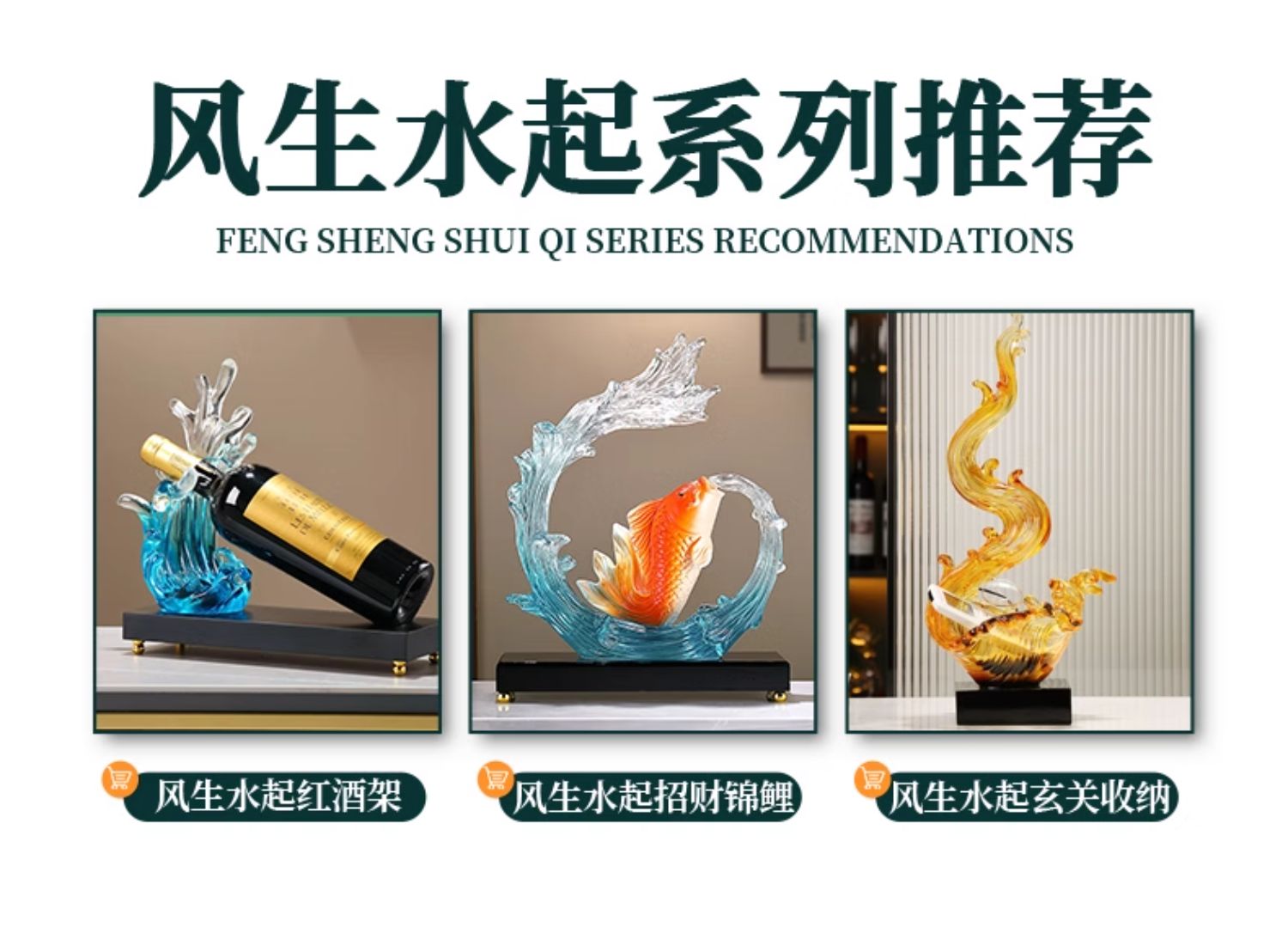 风生水起锦鲤招财葫芦桌面摆件入户玄关客厅酒柜装饰品乔迁礼品