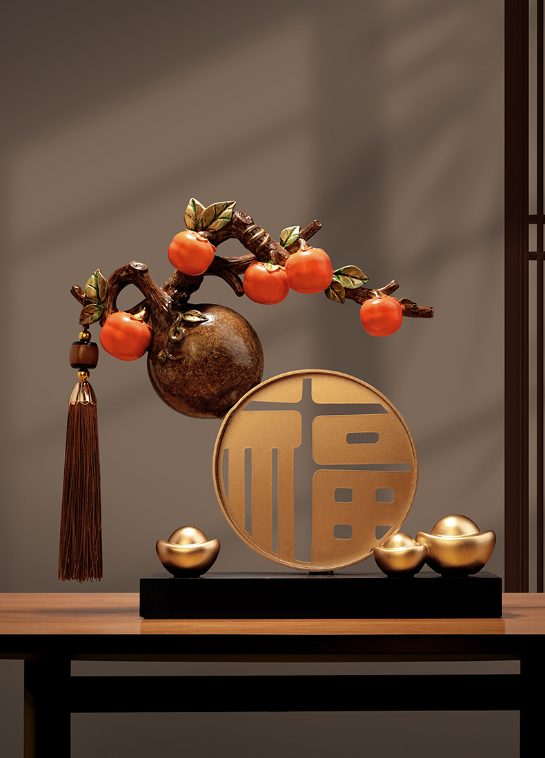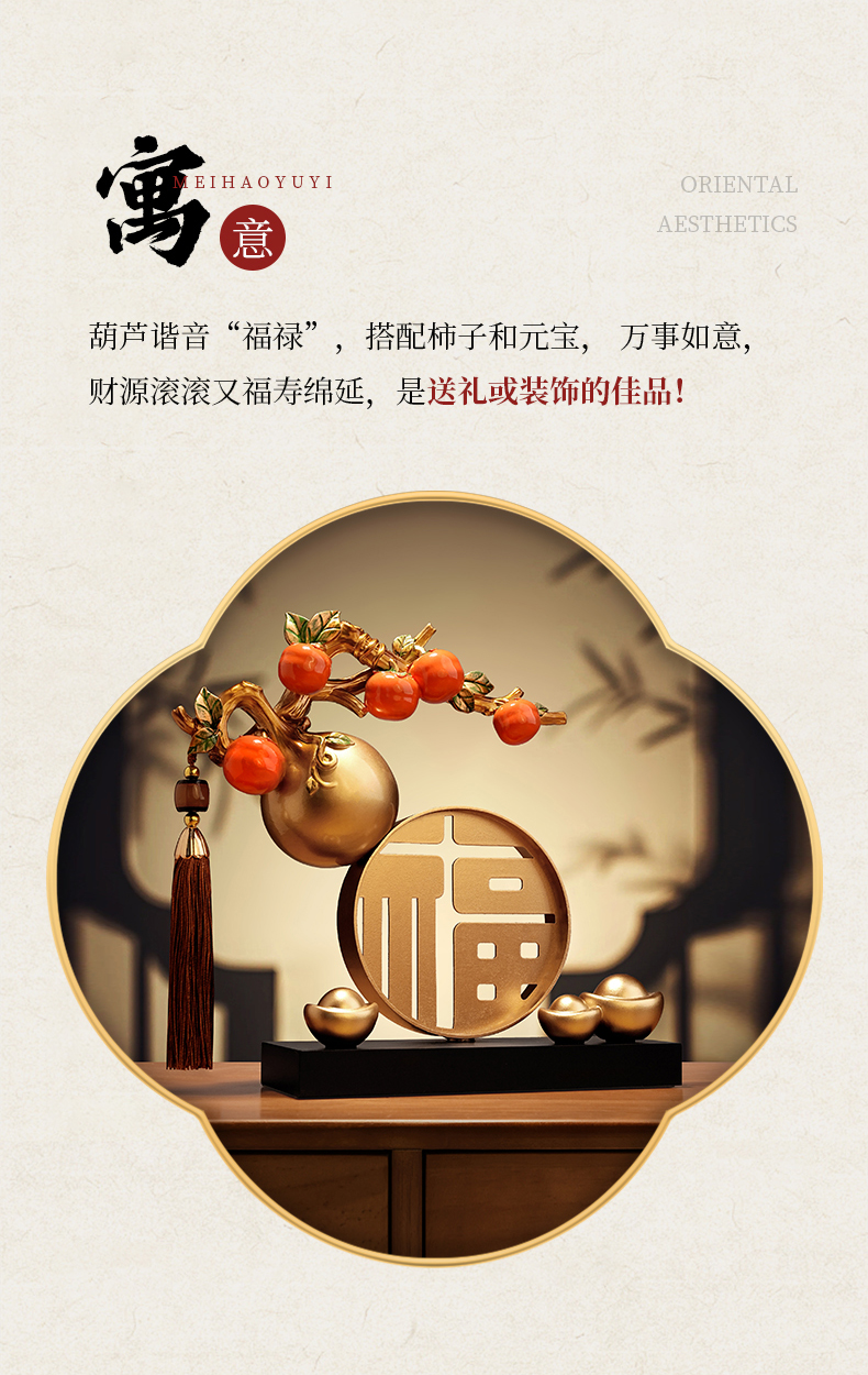 乔迁新居礼物福字柿柿如意摆件新中式家居饰品客厅玄关装饰高级感
