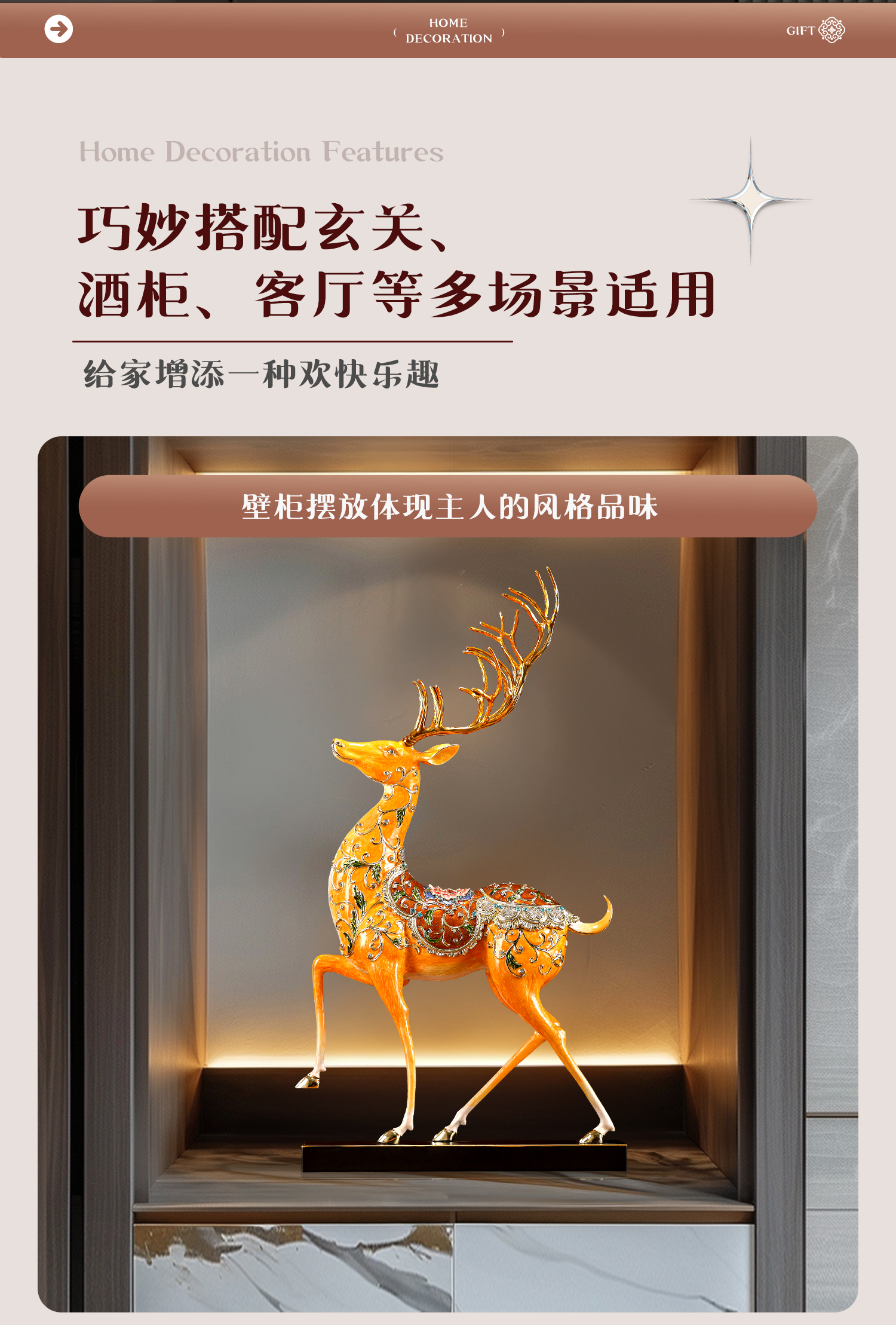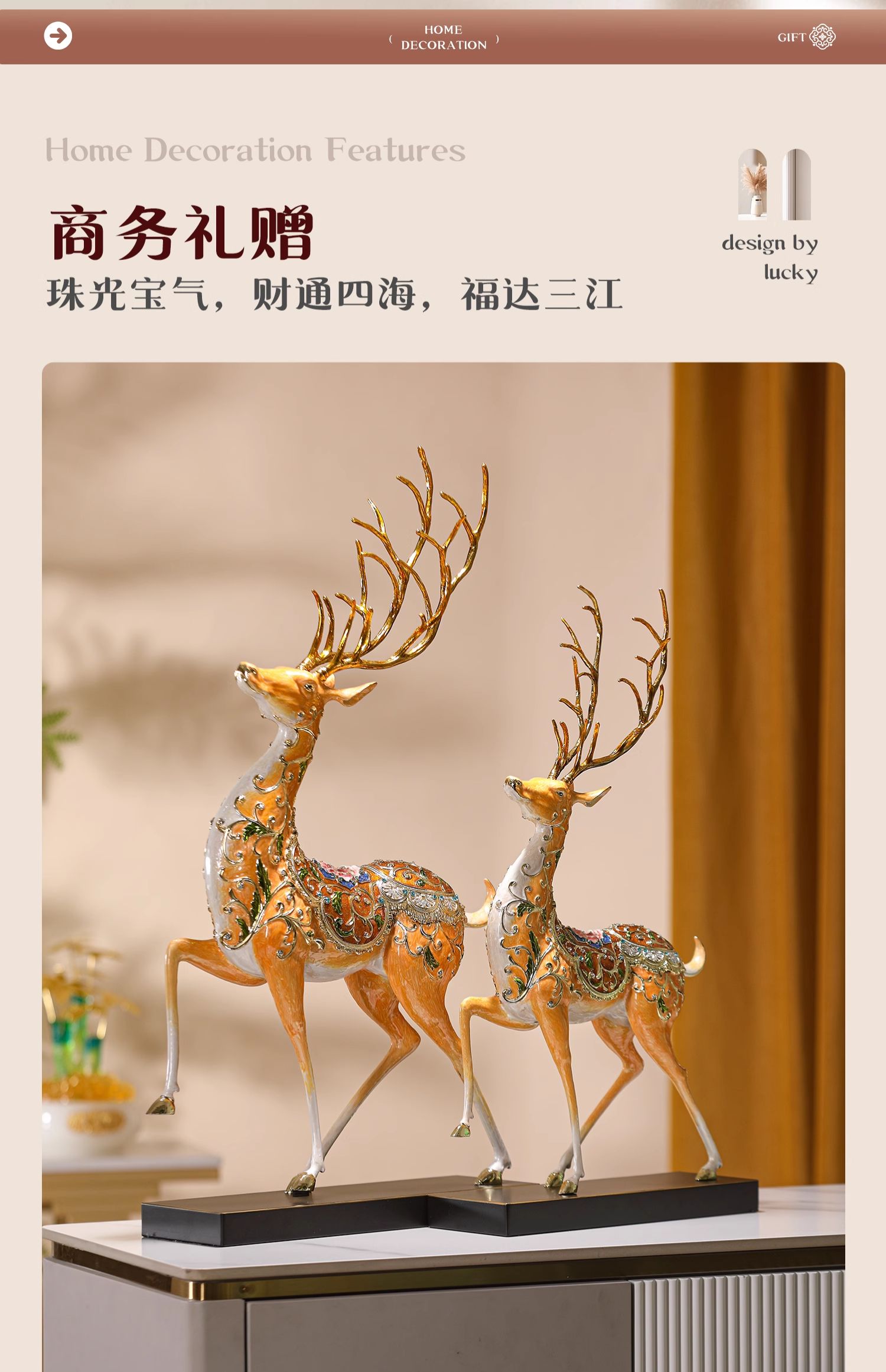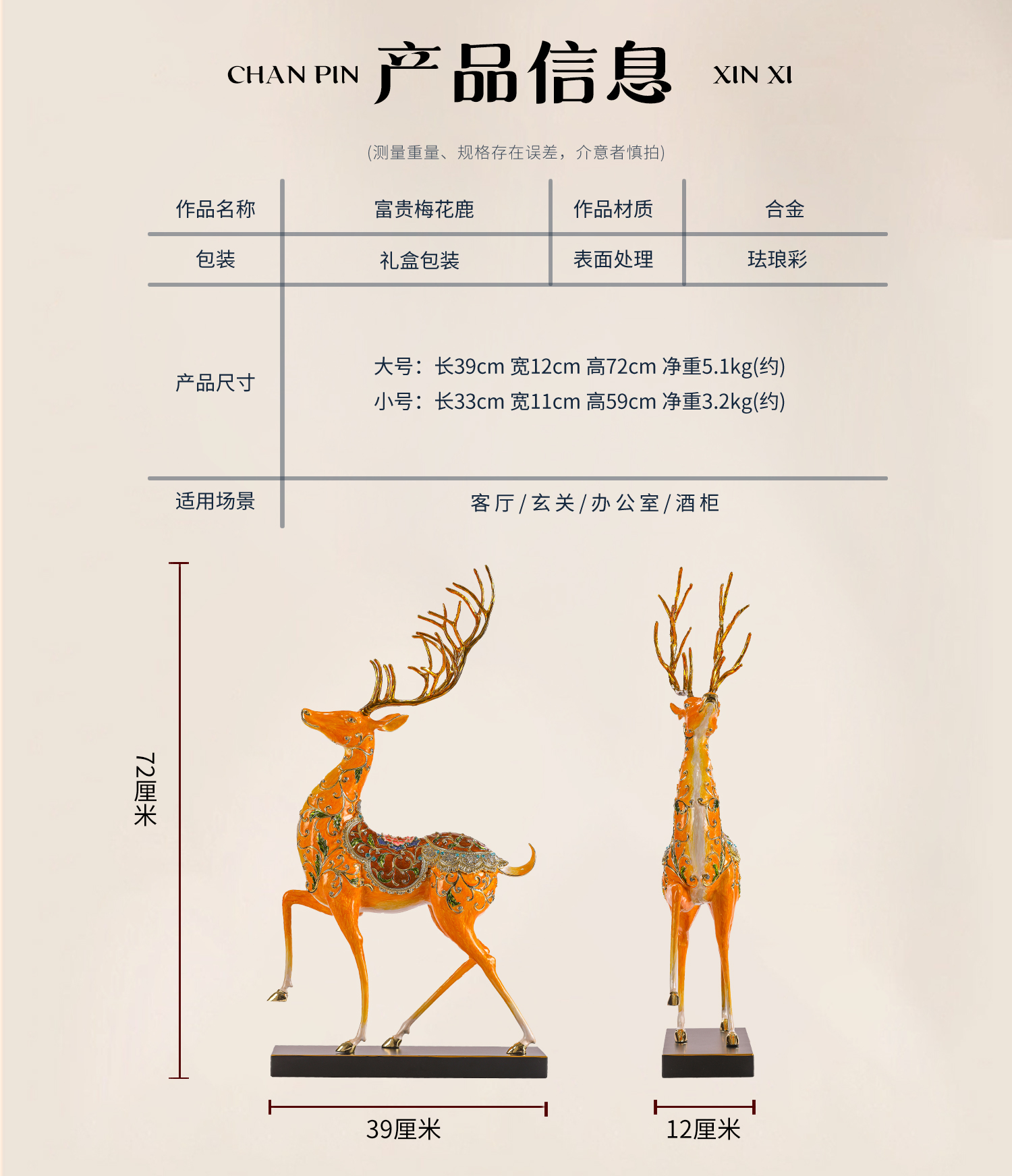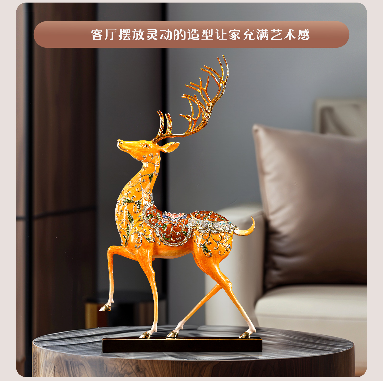 珐琅彩梅花鹿摆件家居客厅办公室玄关轻奢高端装饰品乔迁开业礼品