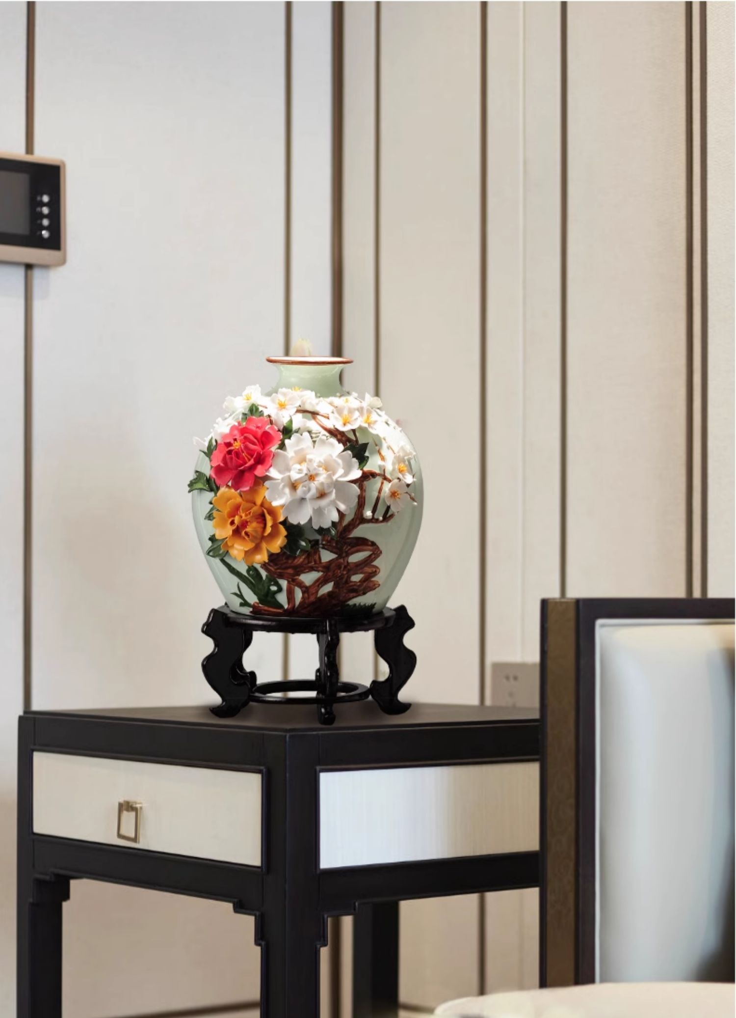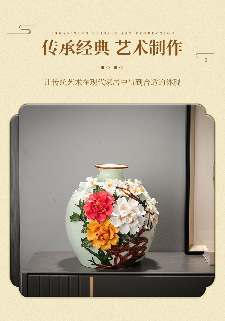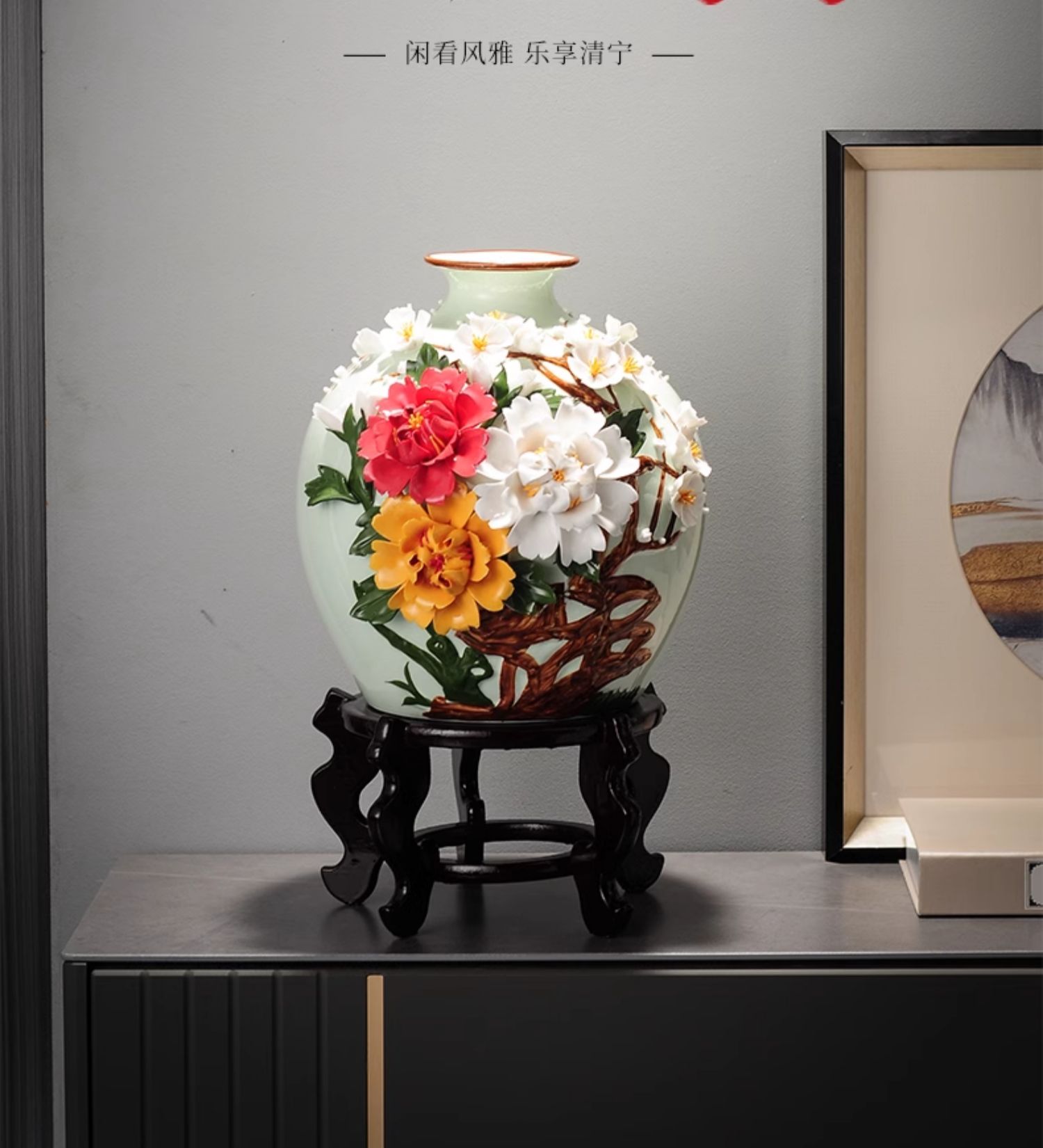 花开富贵陶瓷器摆件家居客厅新中式玄关装饰乔迁新居礼品搬家礼物