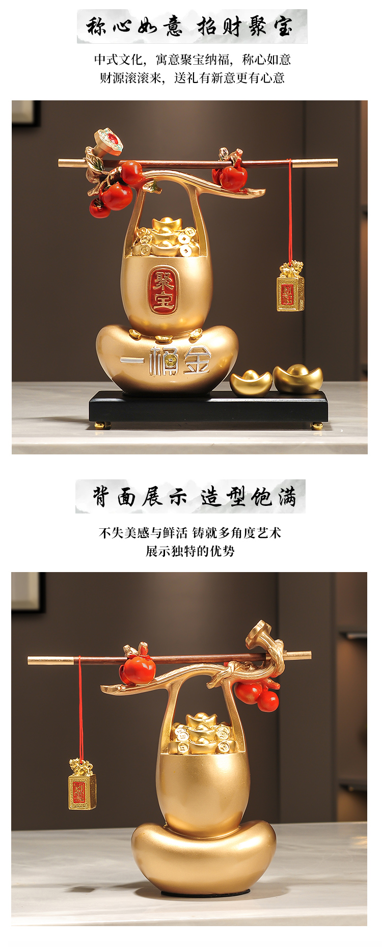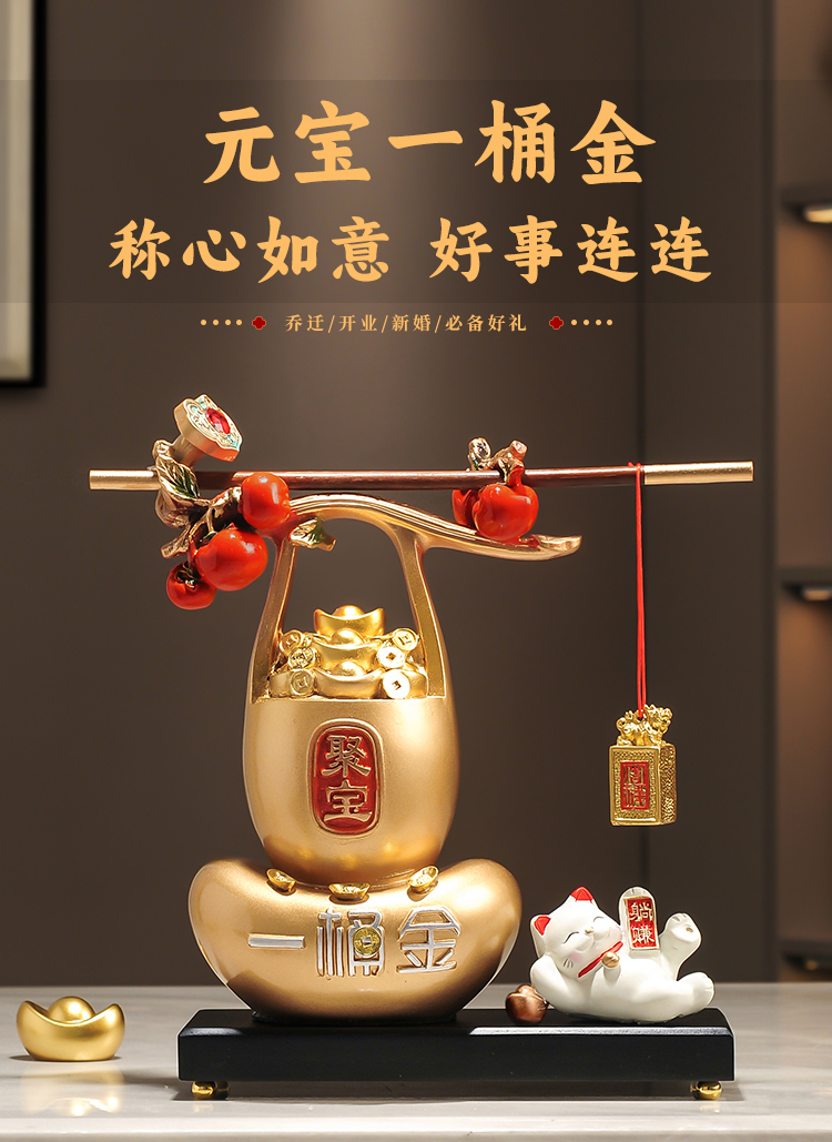 称心如意聚宝盆摆件新中式家居客厅玄关电视酒柜装饰品乔迁搬新家