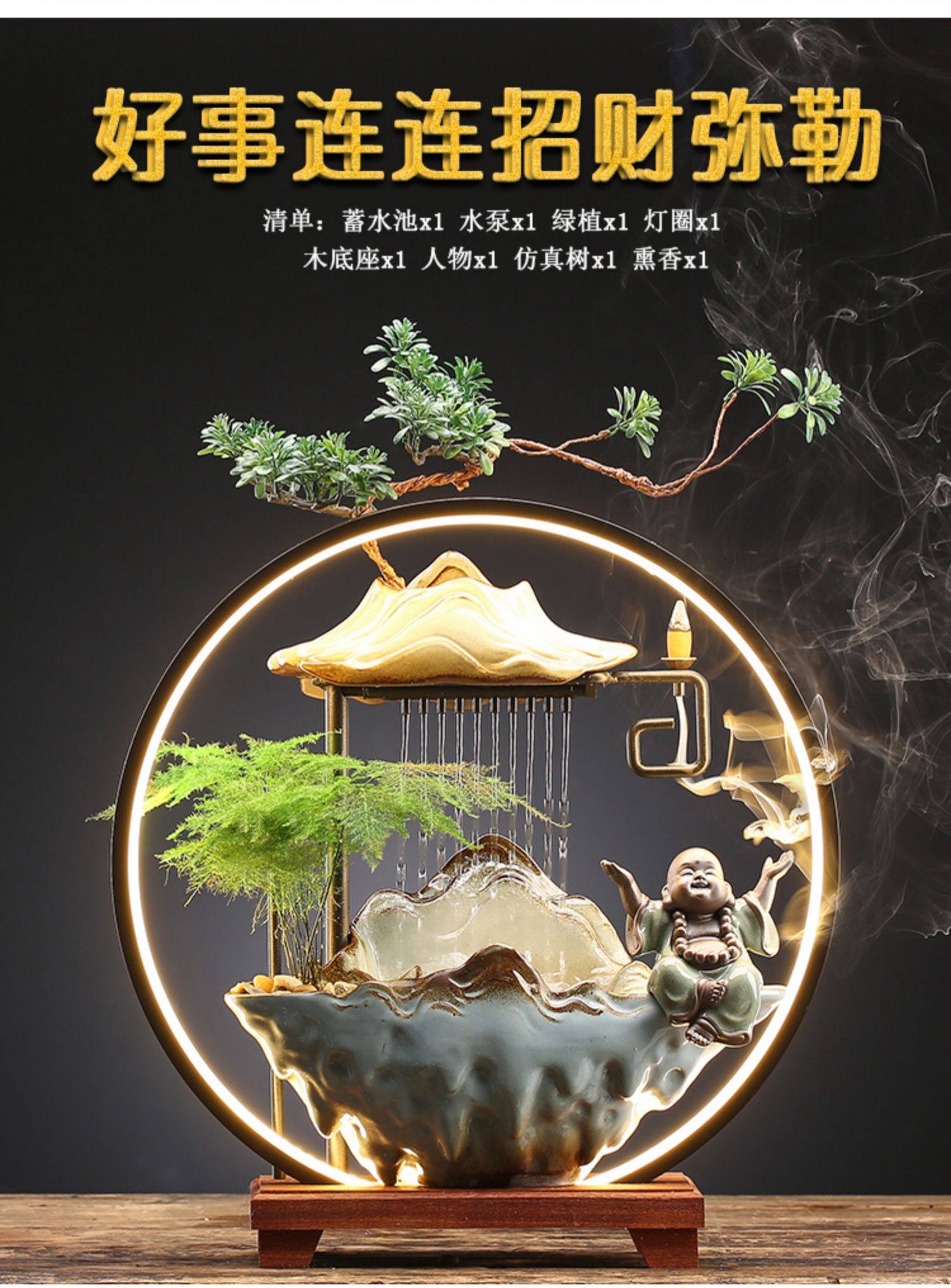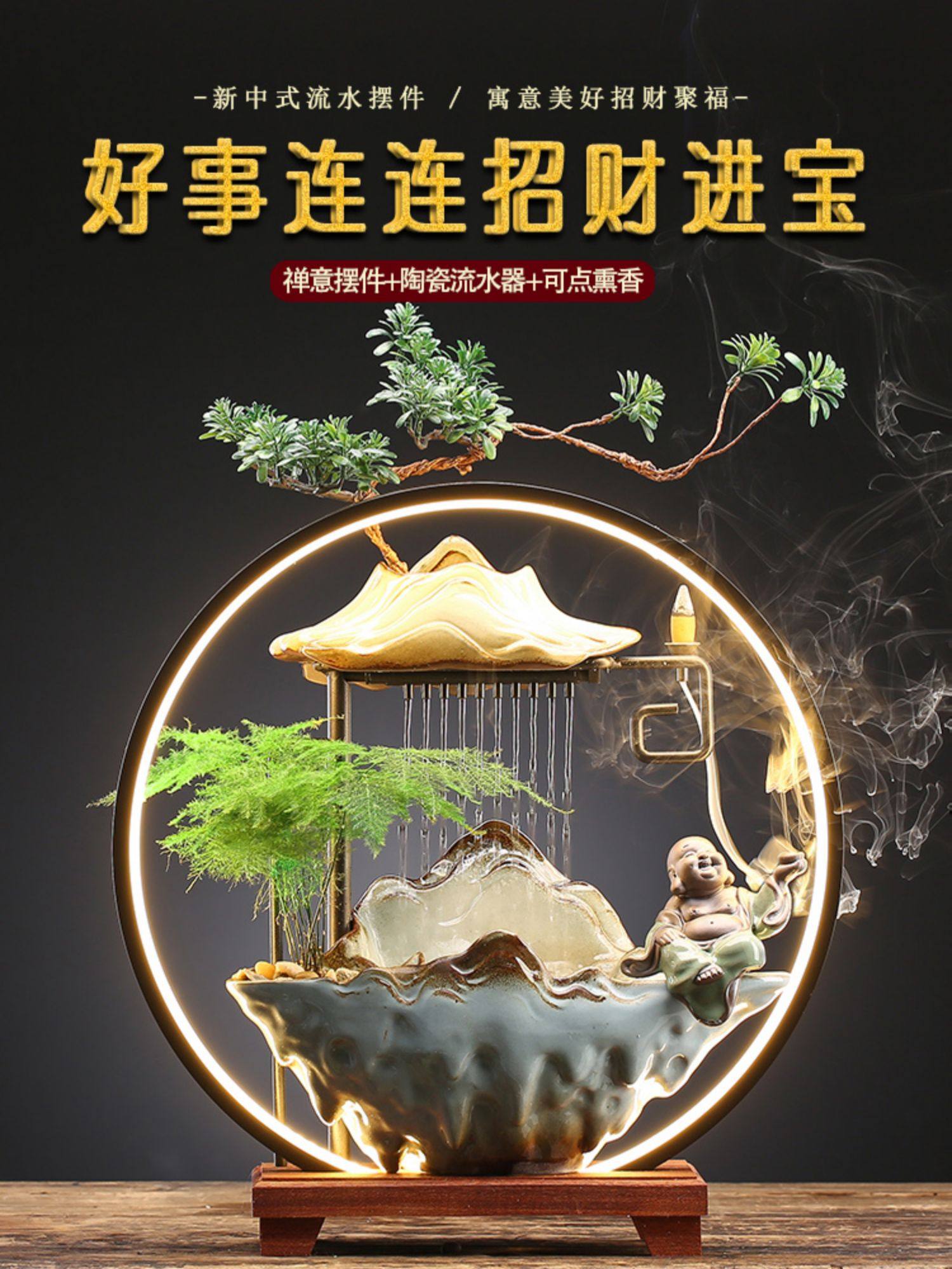 招财流水摆件茶几循环水客厅生财创意家居装饰办公室桌面开业礼品