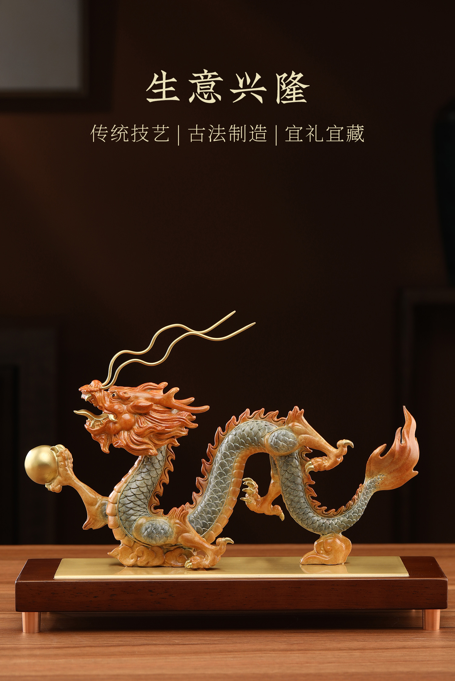 大明铜匠生意兴隆龙铜摆件客厅玄关装饰品办公室公司开业大吉礼物