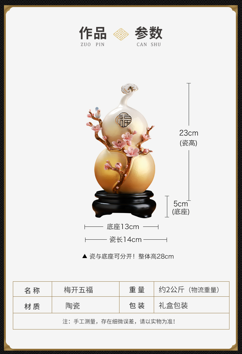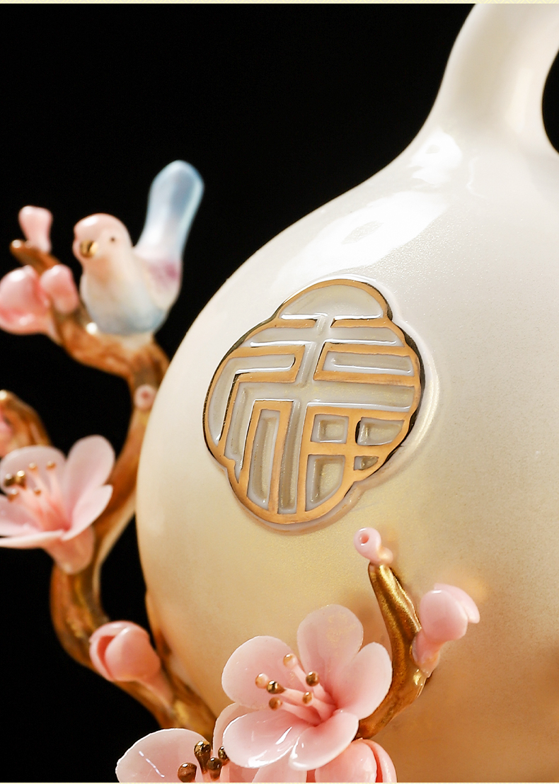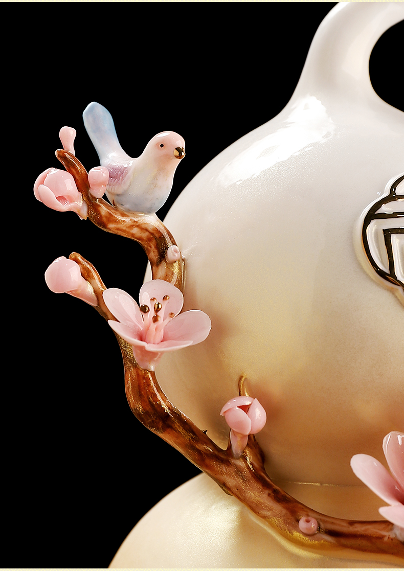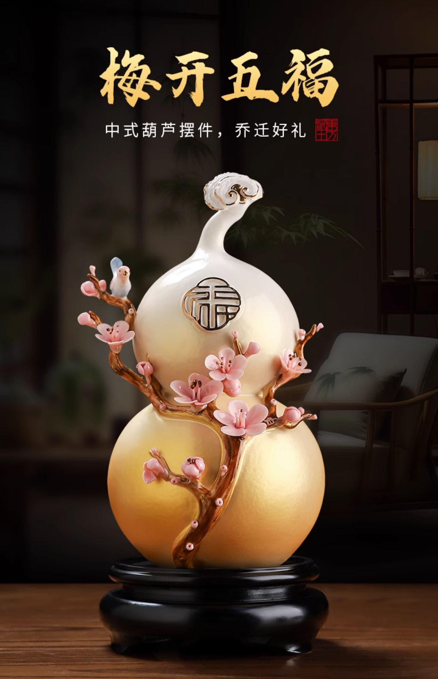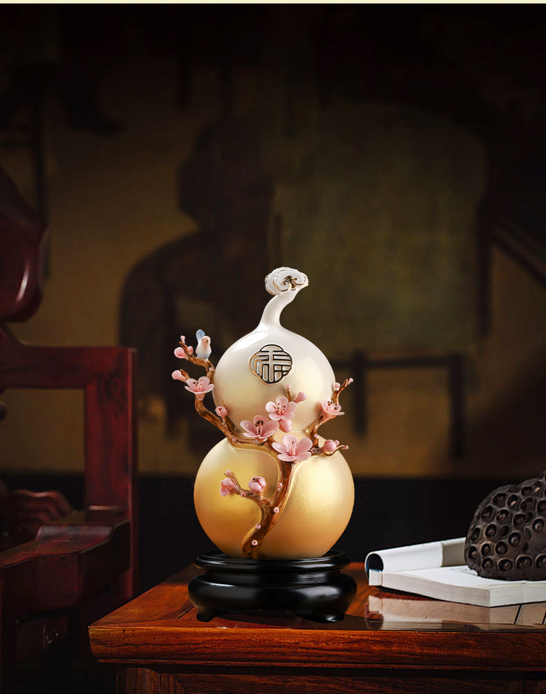 东方泥土梅开五福陶瓷葫芦中式家居客厅装饰摆件开业乔迁新居礼品