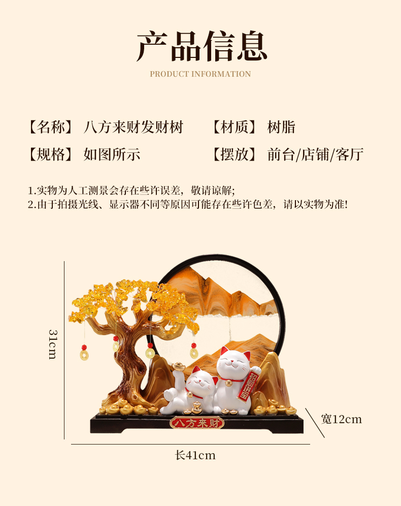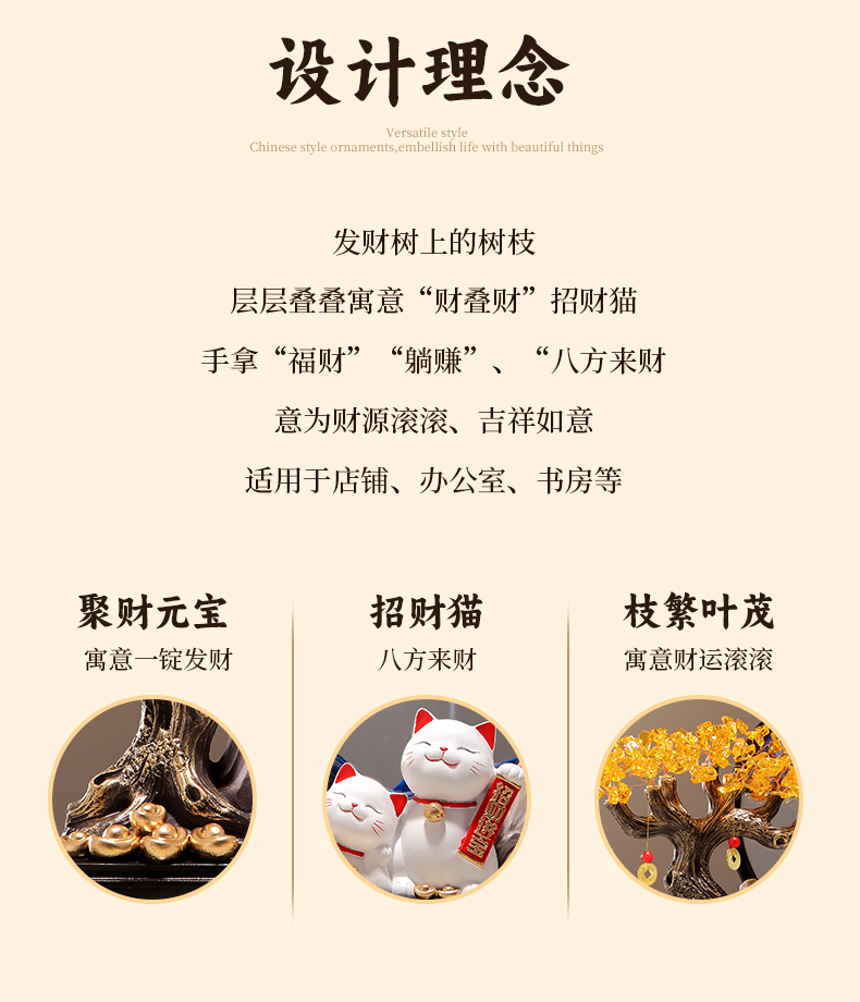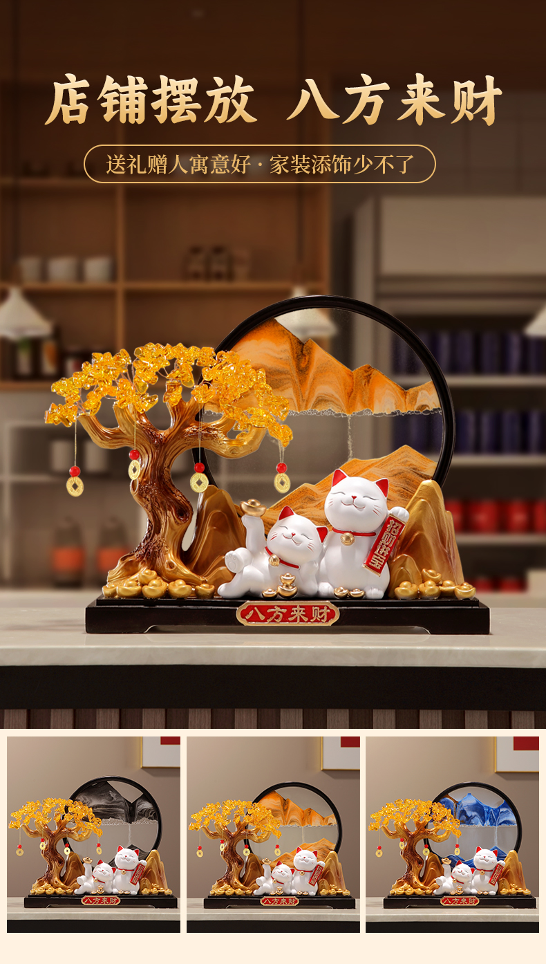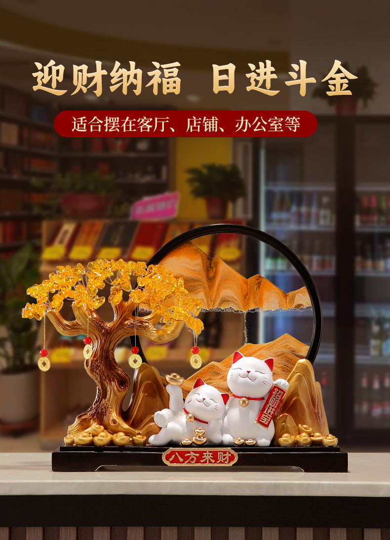 八方来财发财树招财猫摆件客厅店铺收银台高档装饰品乔迁开业礼物