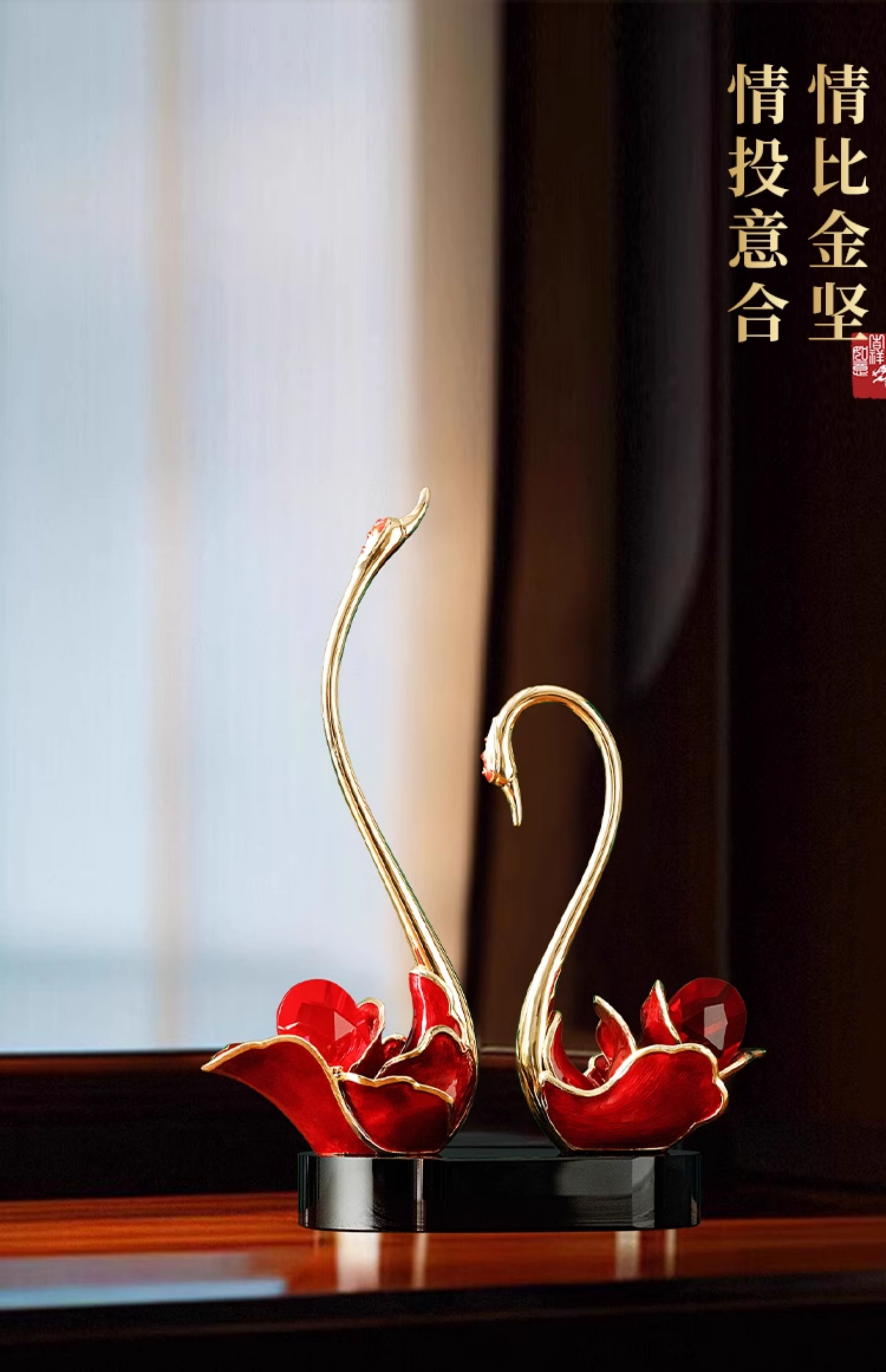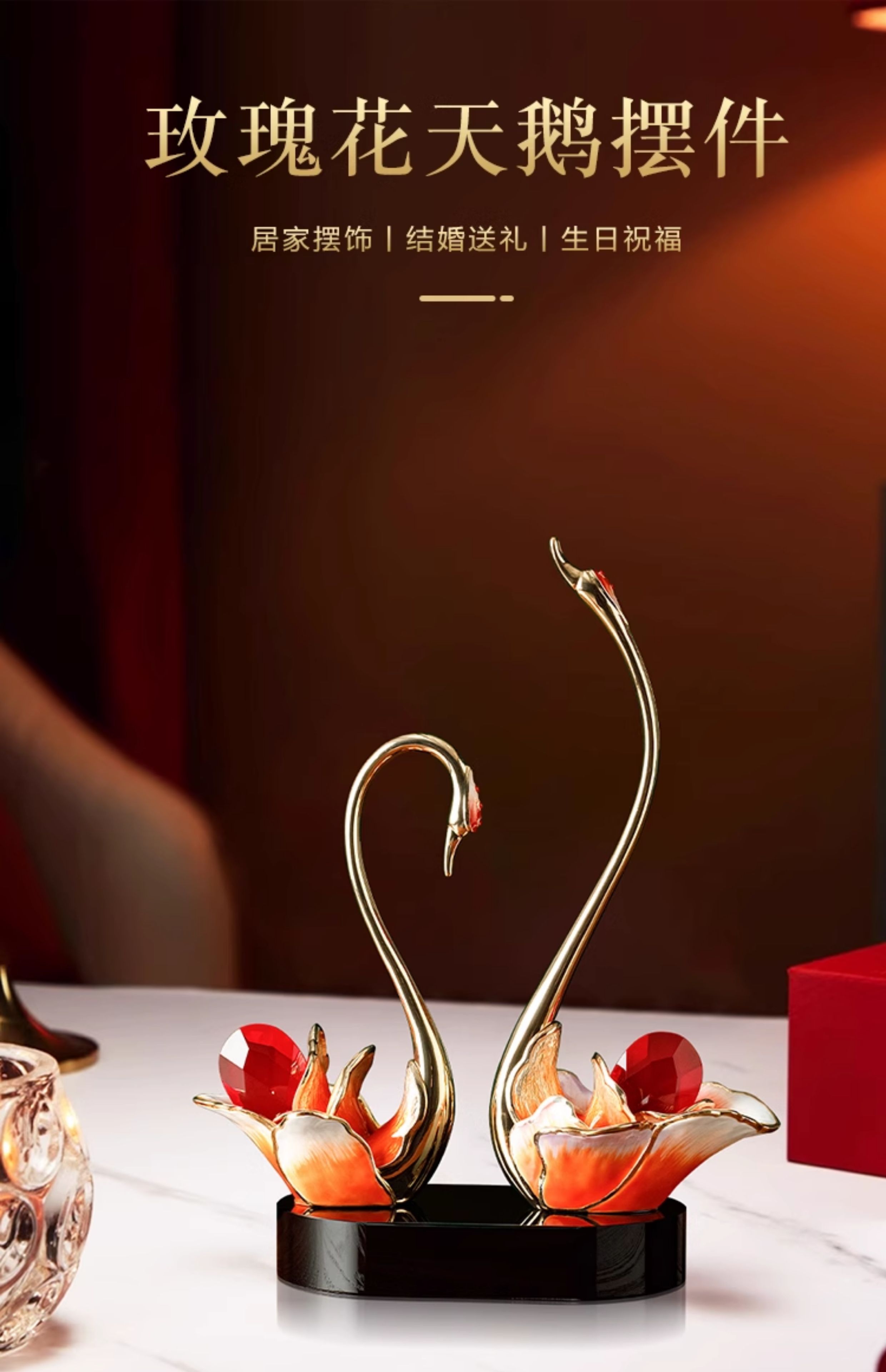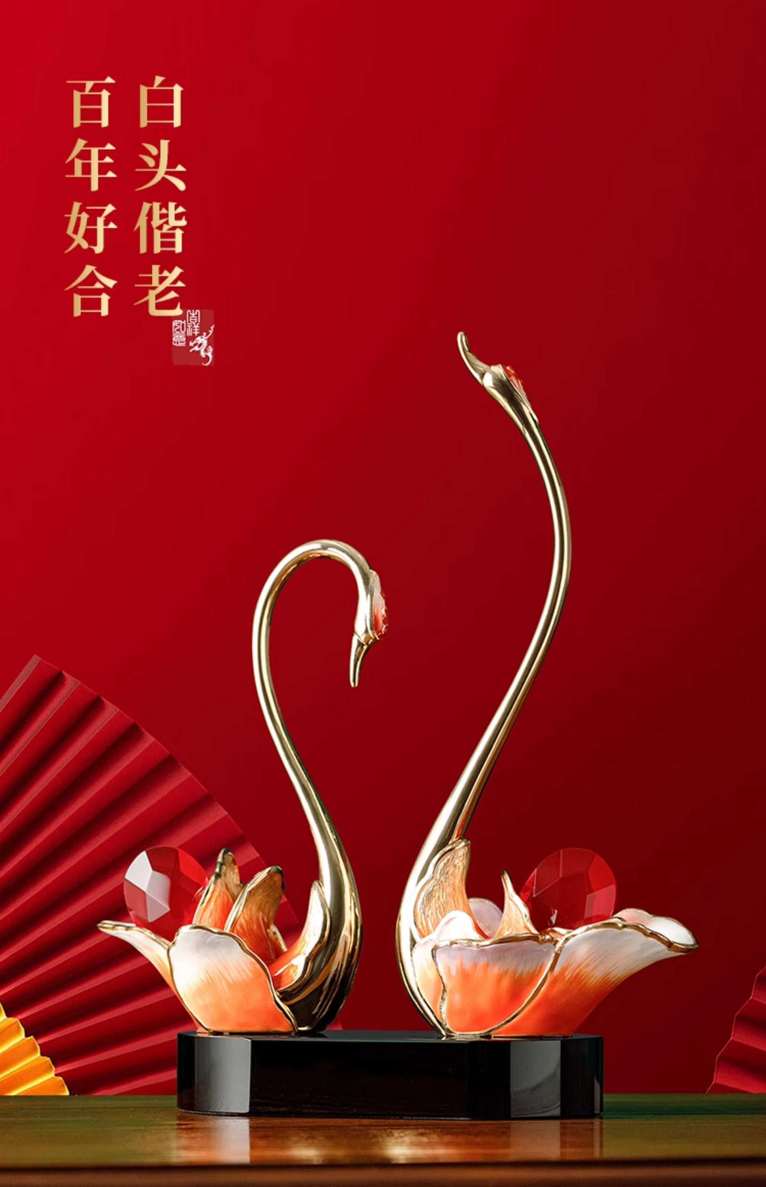 珐琅彩百年好合天鹅摆件一对高档结婚礼物送新人闺蜜婚房装饰布置