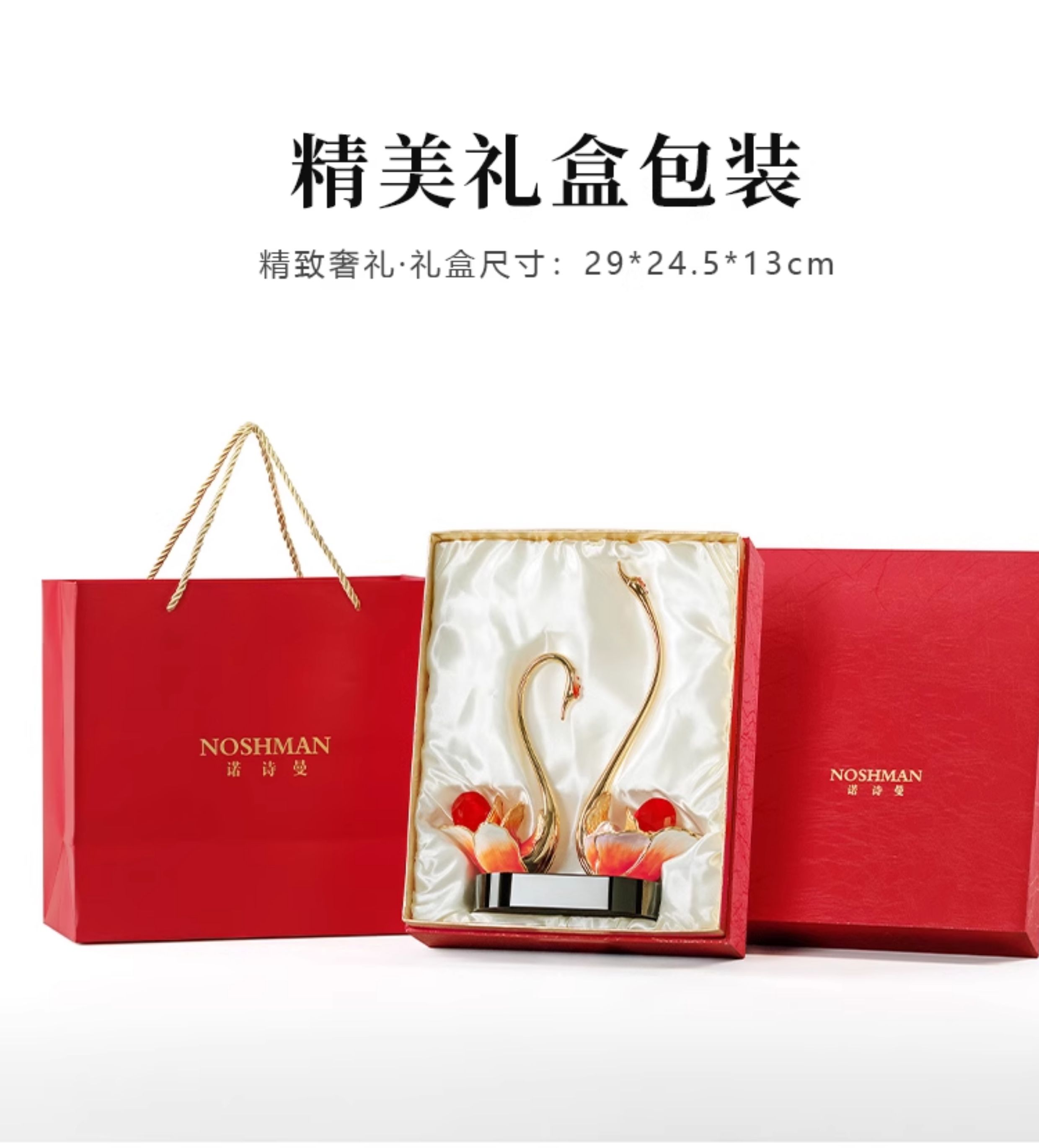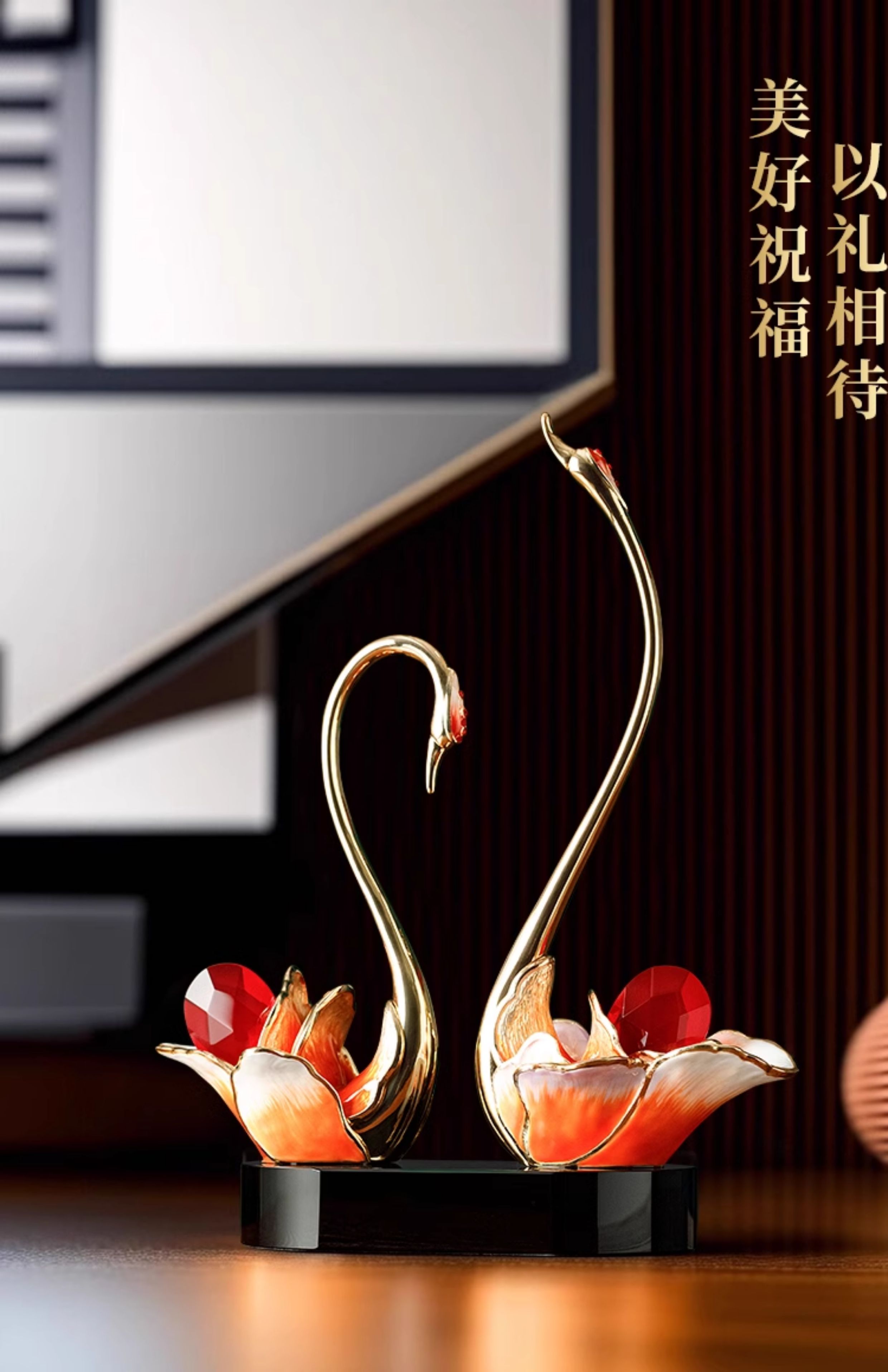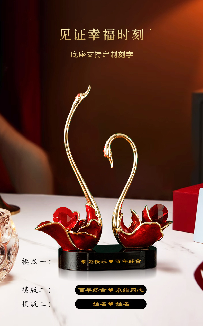 珐琅彩百年好合天鹅摆件一对高档结婚礼物送新人闺蜜婚房装饰布置