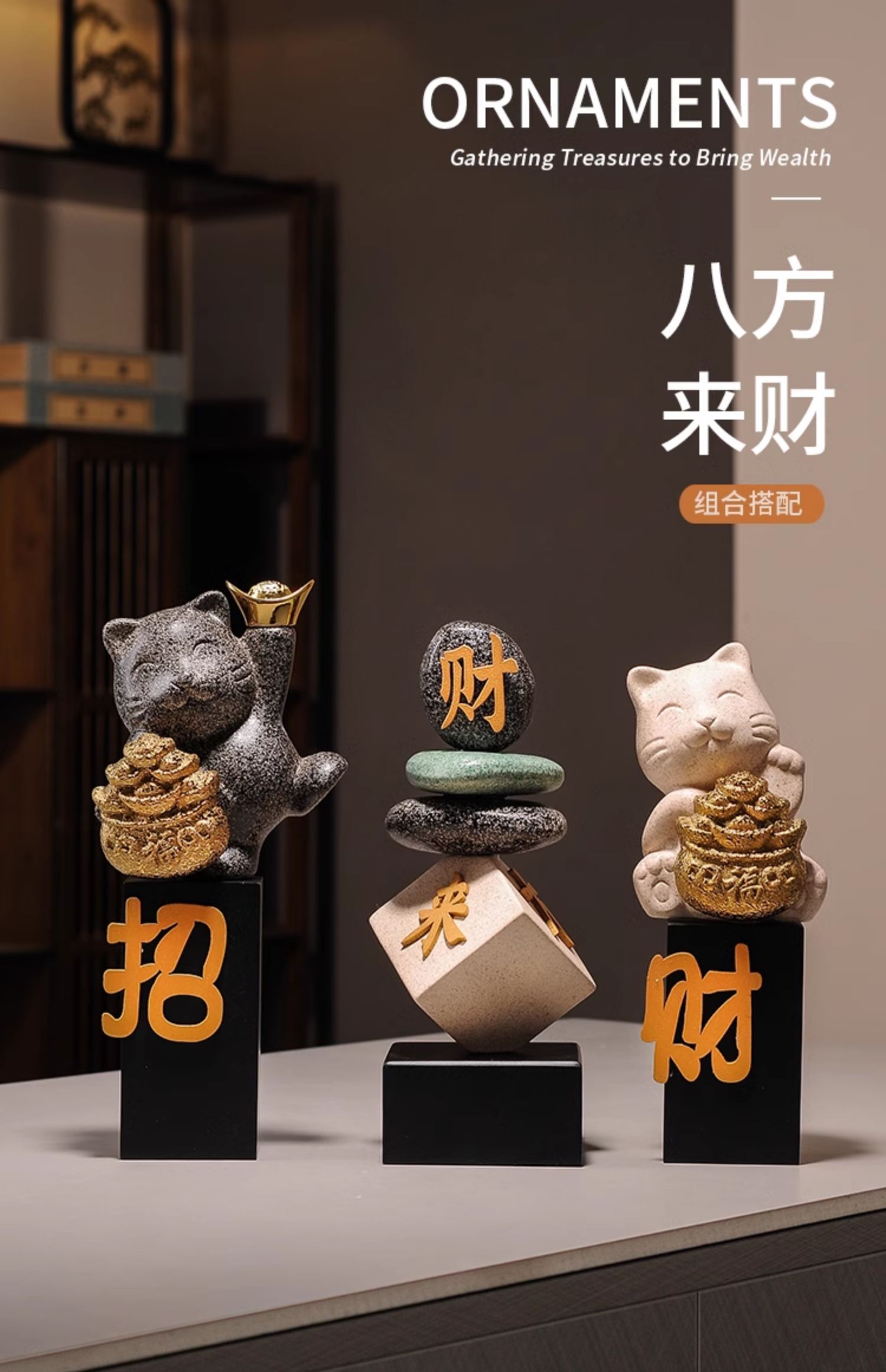 时来运转八方来财桌面摆件办公室高级感酒柜装饰品送乔迁开业礼物