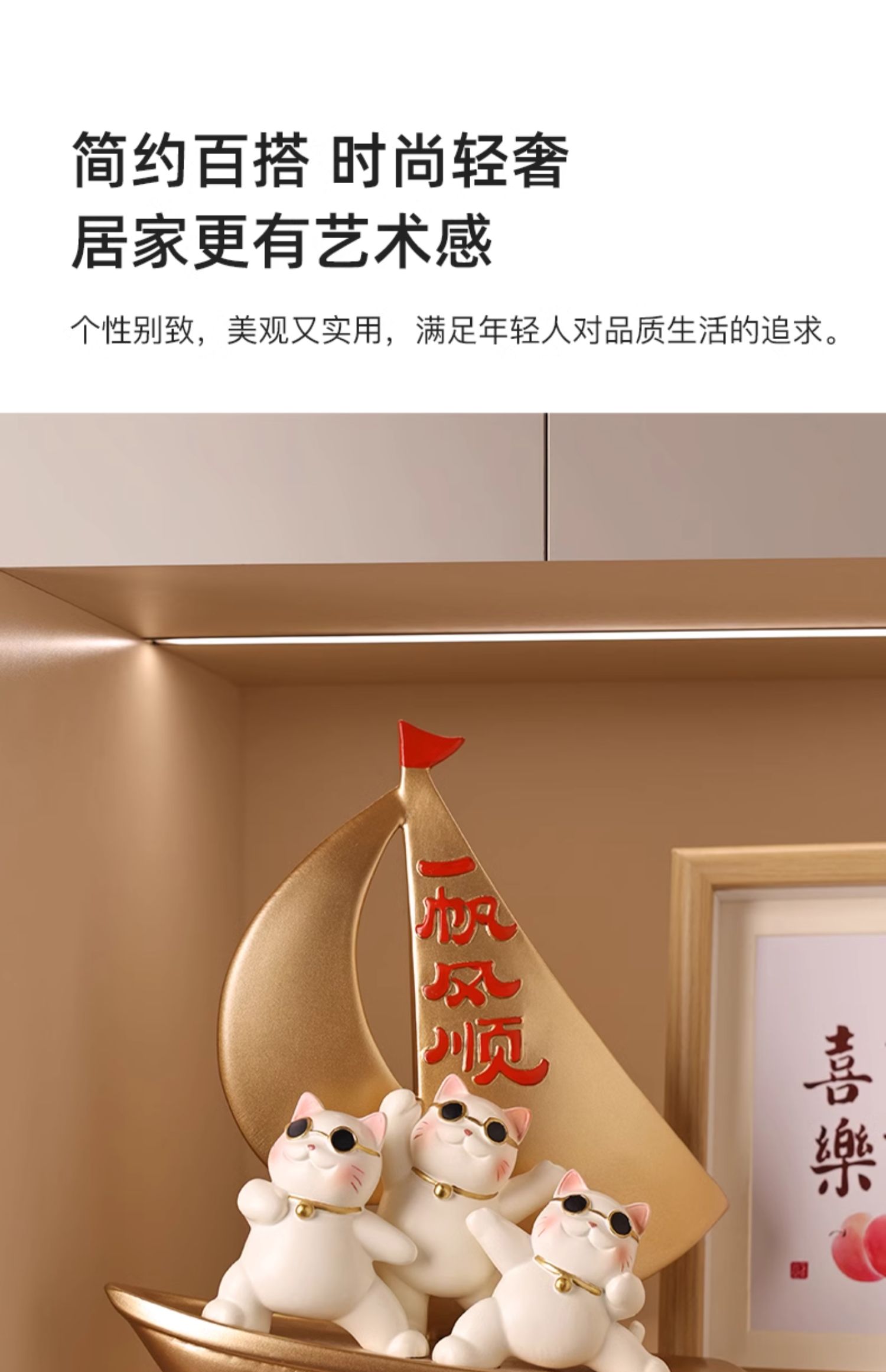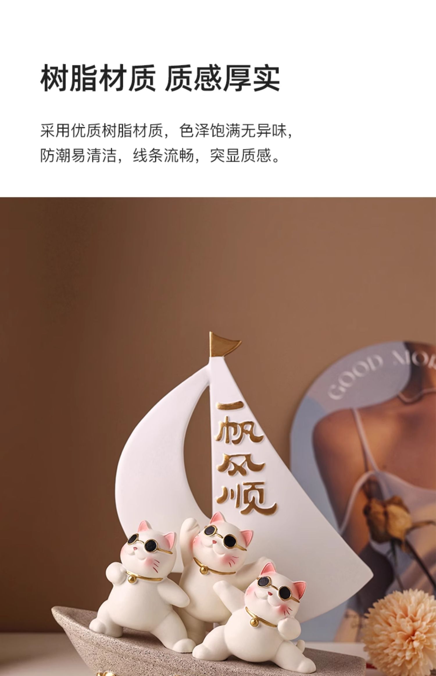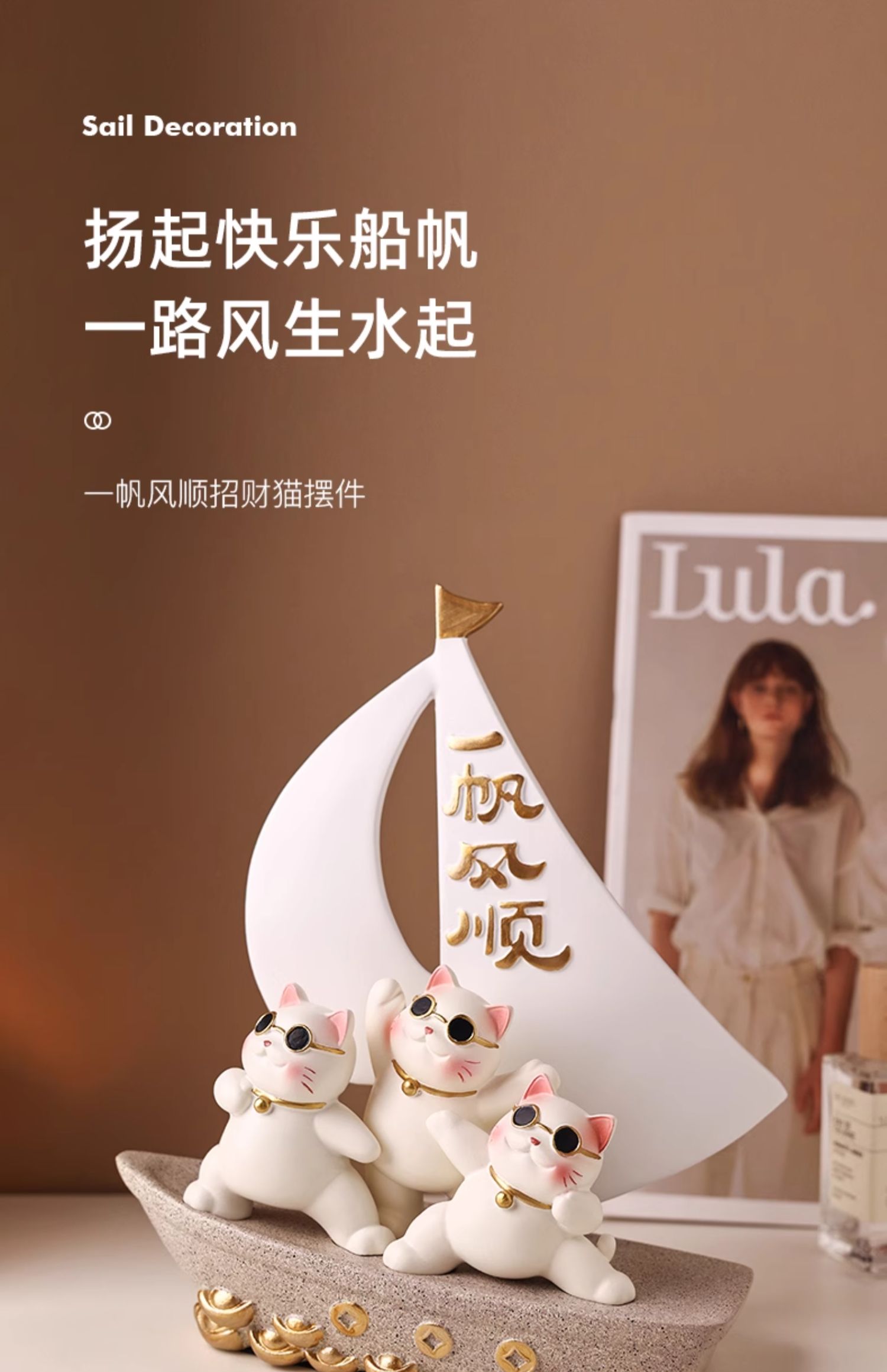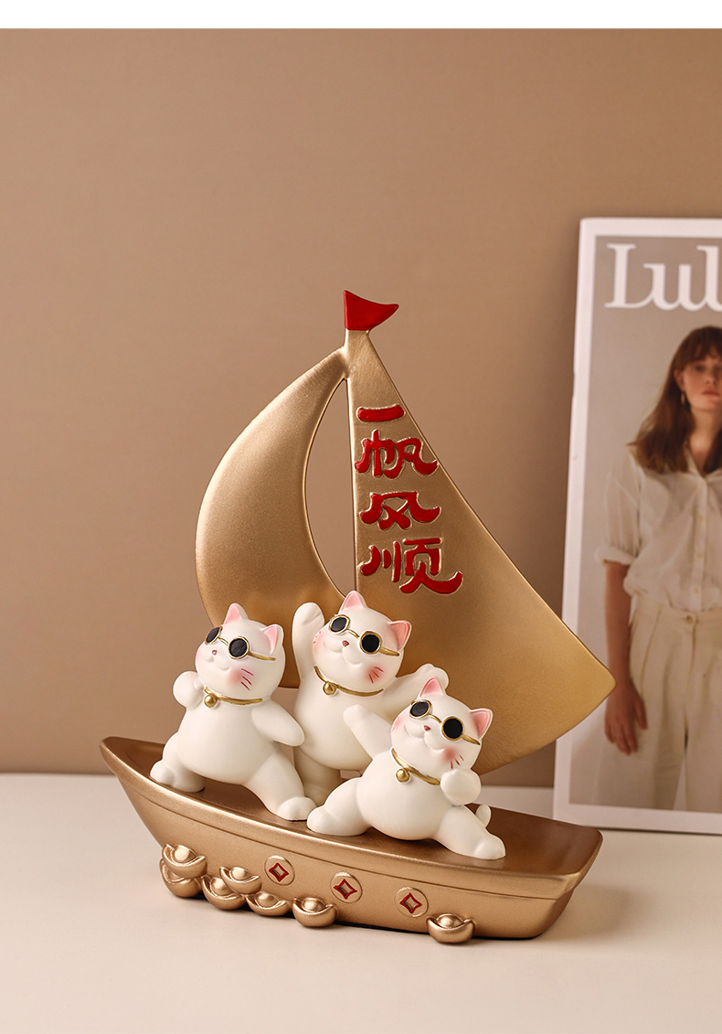 贝汉美一帆风顺招财猫摆件家居客厅玄关电视柜装饰品乔迁新居礼品