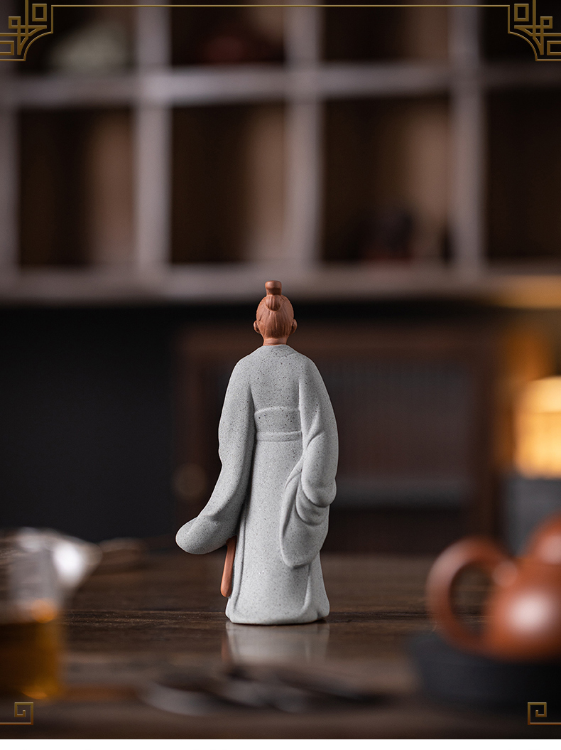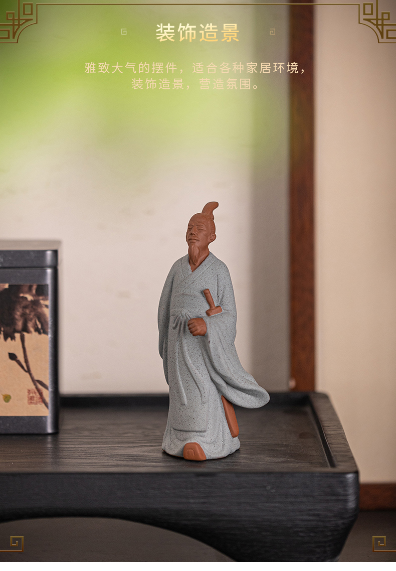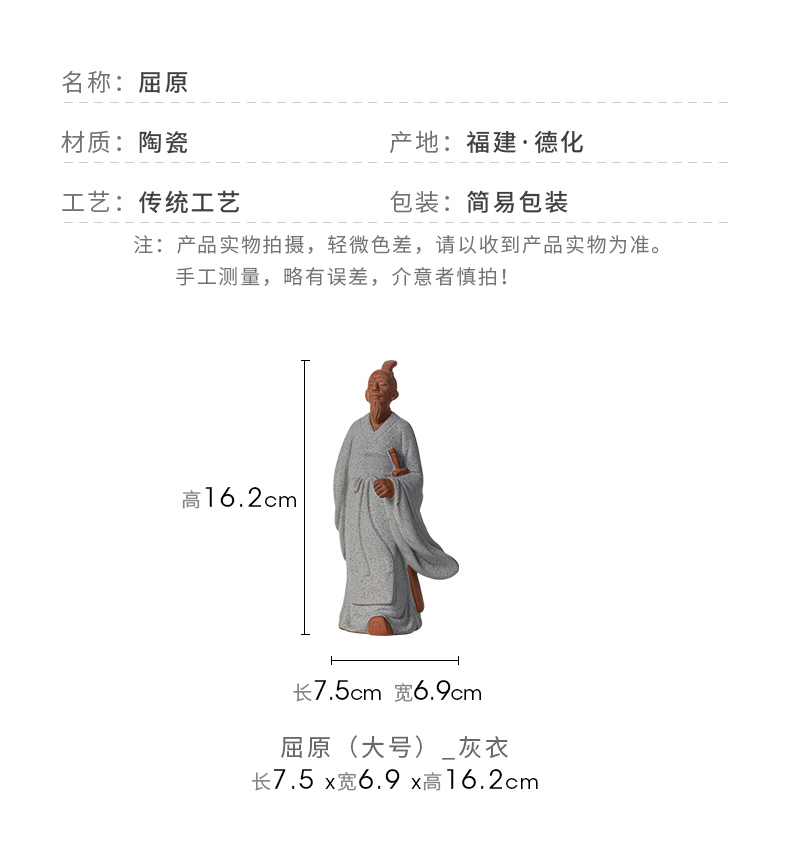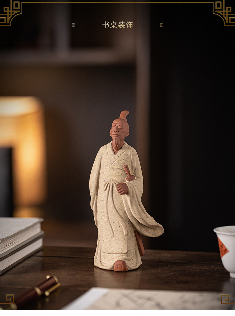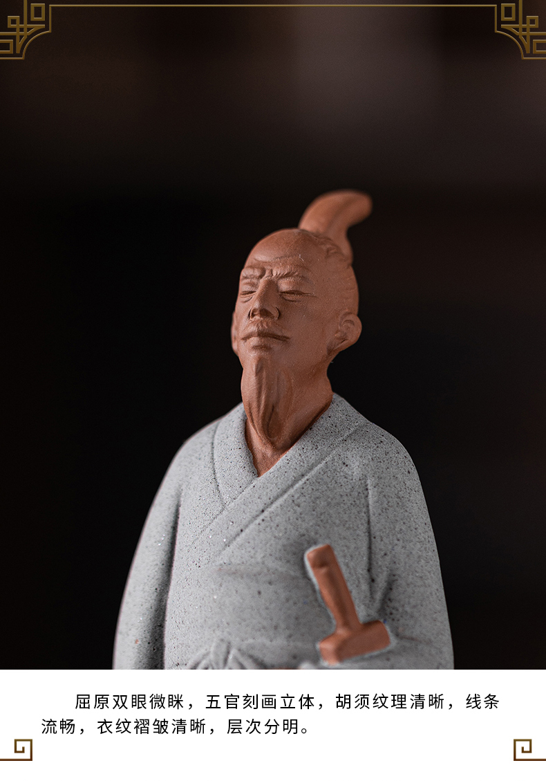中式历史人物屈原陶瓷摆件书房茶室办公桌面装饰居室植物盆景摆景