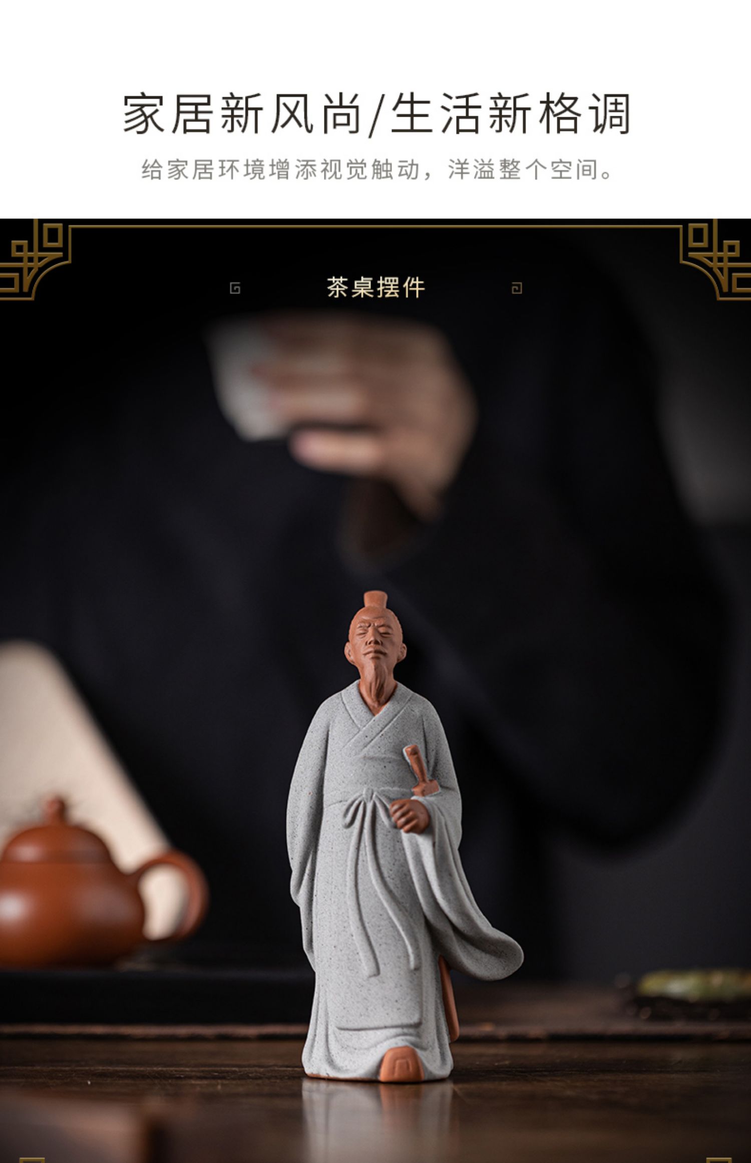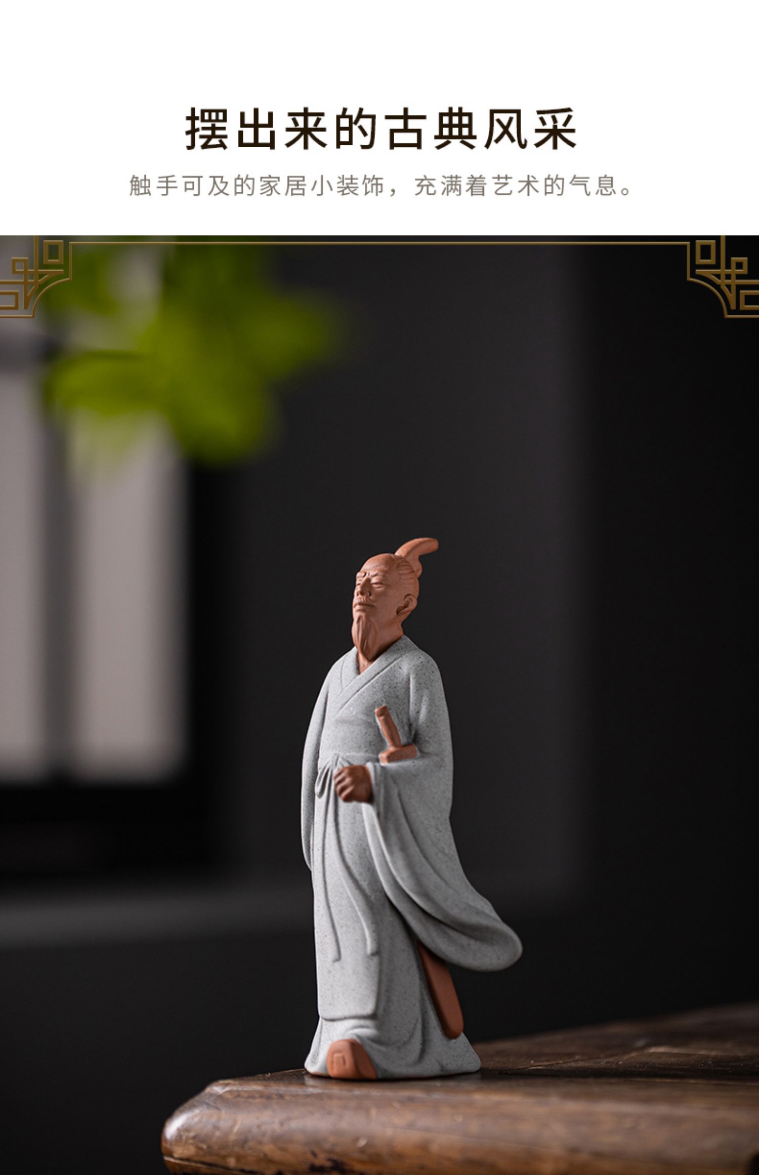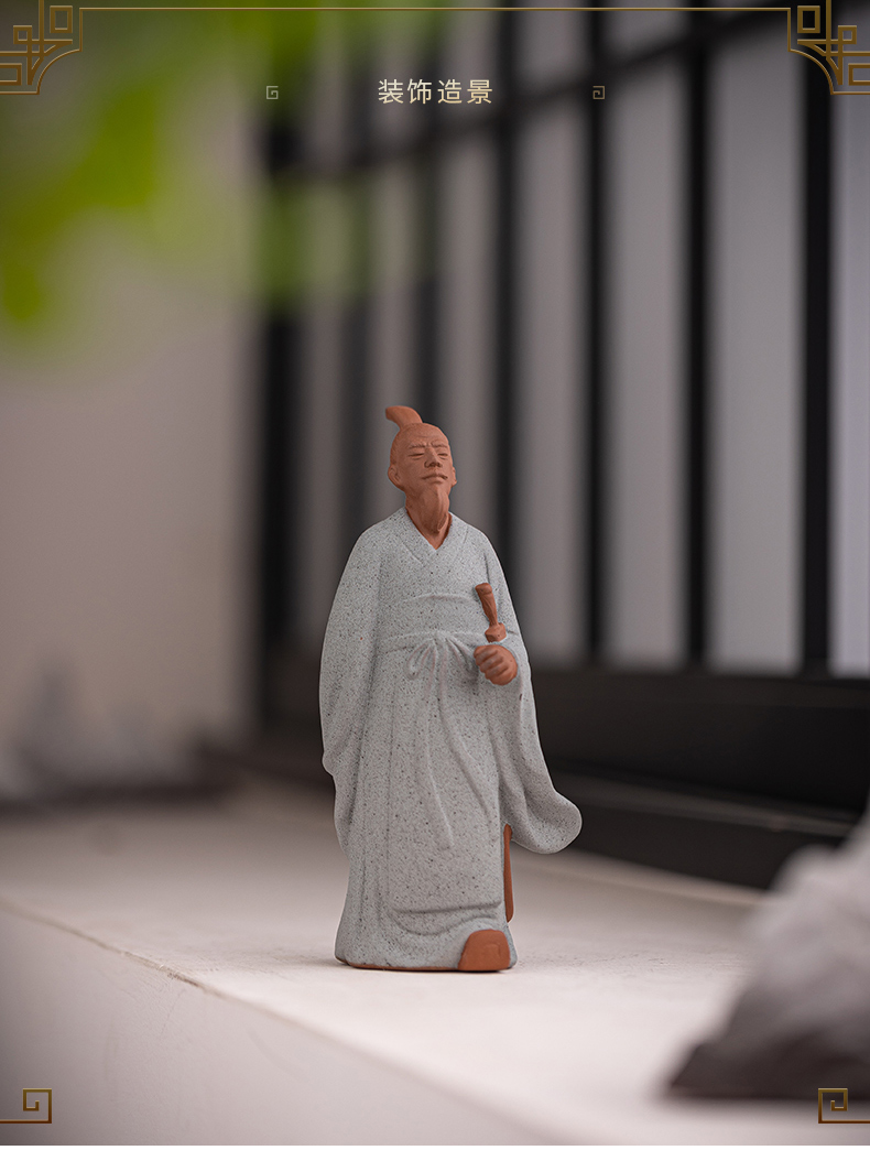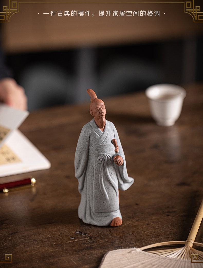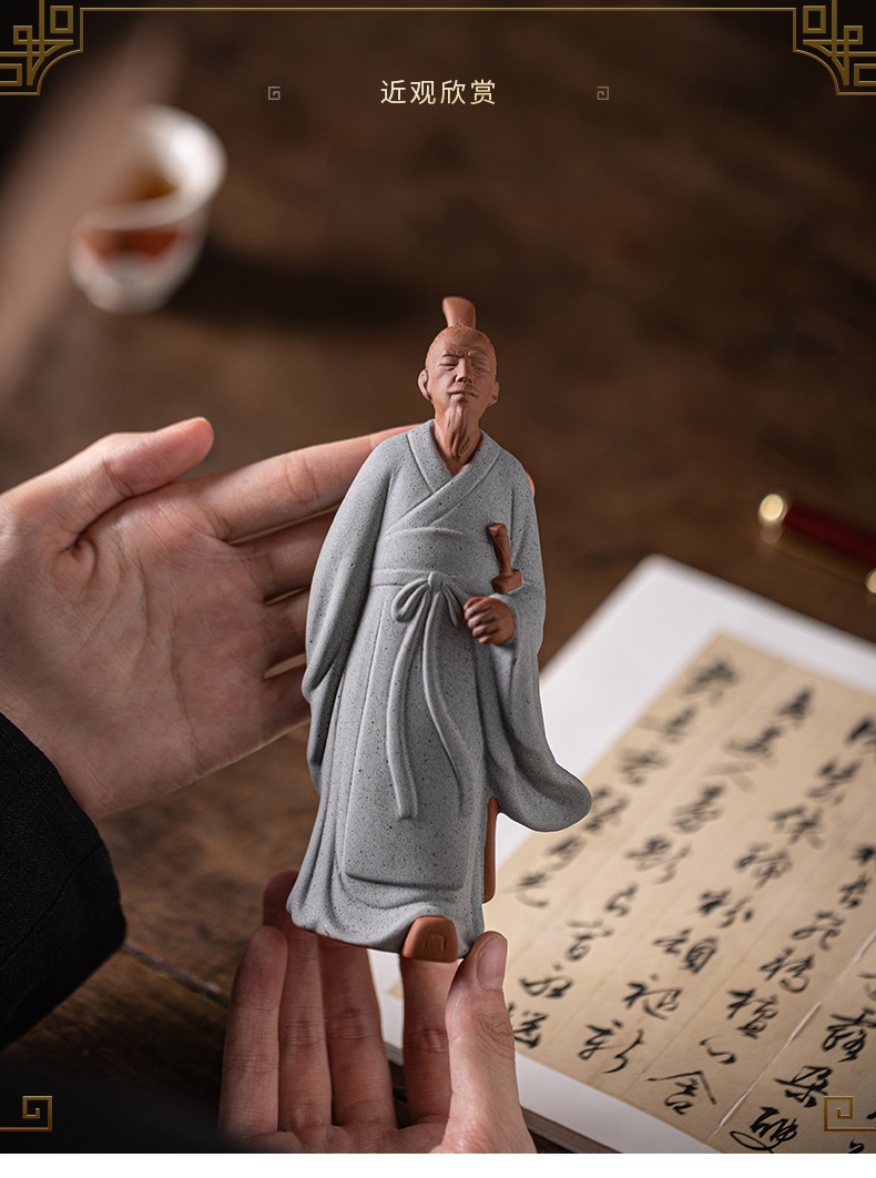 中式历史人物屈原陶瓷摆件书房茶室办公桌面装饰居室植物盆景摆景
