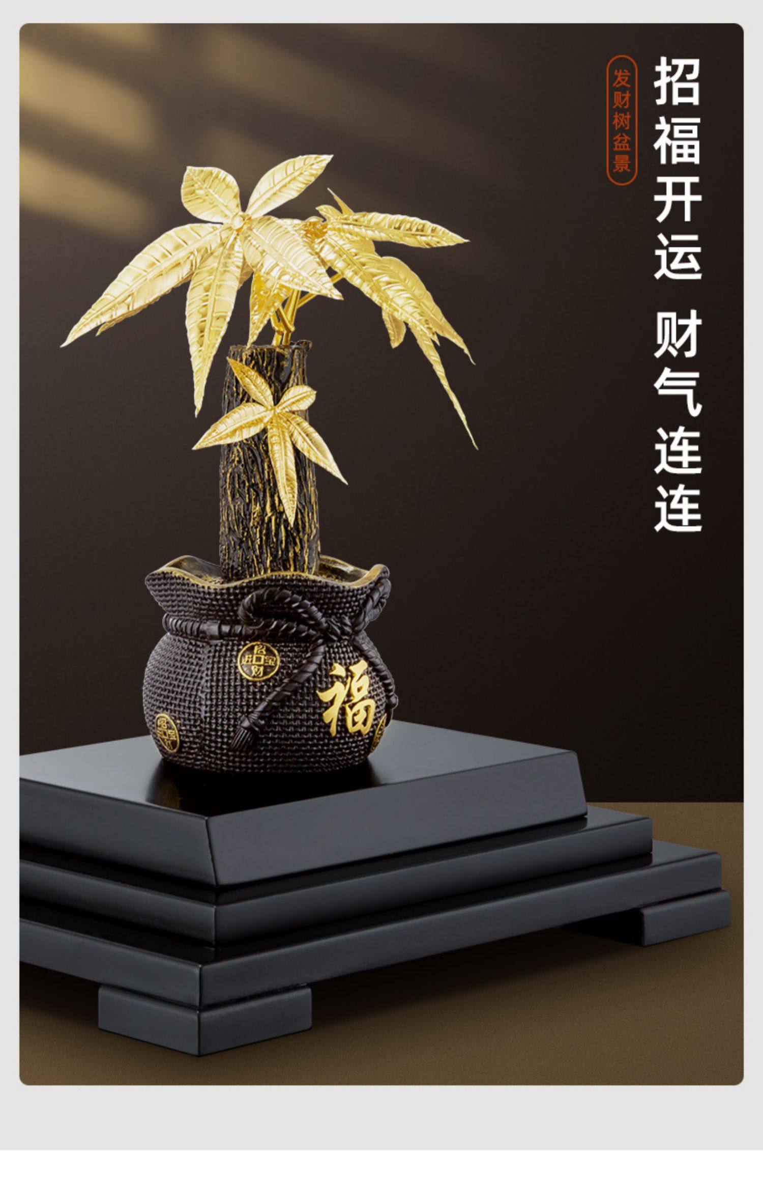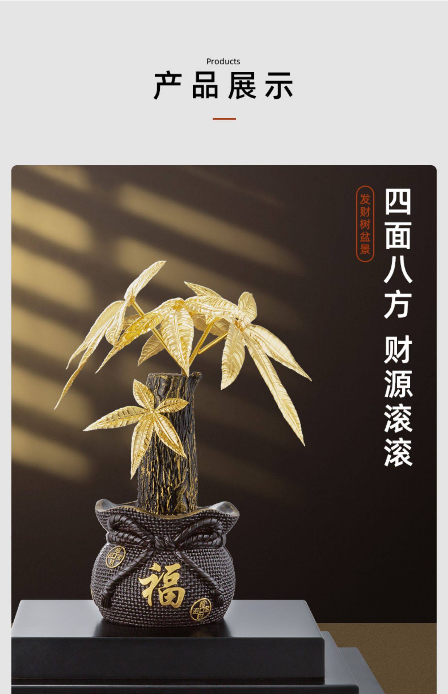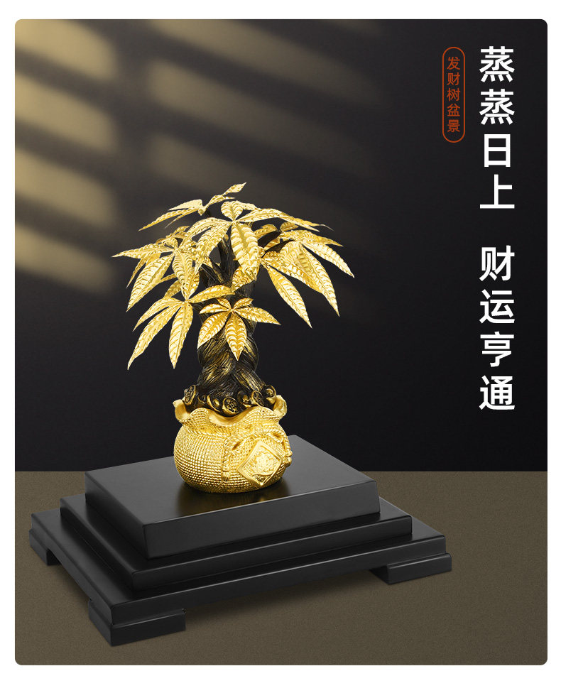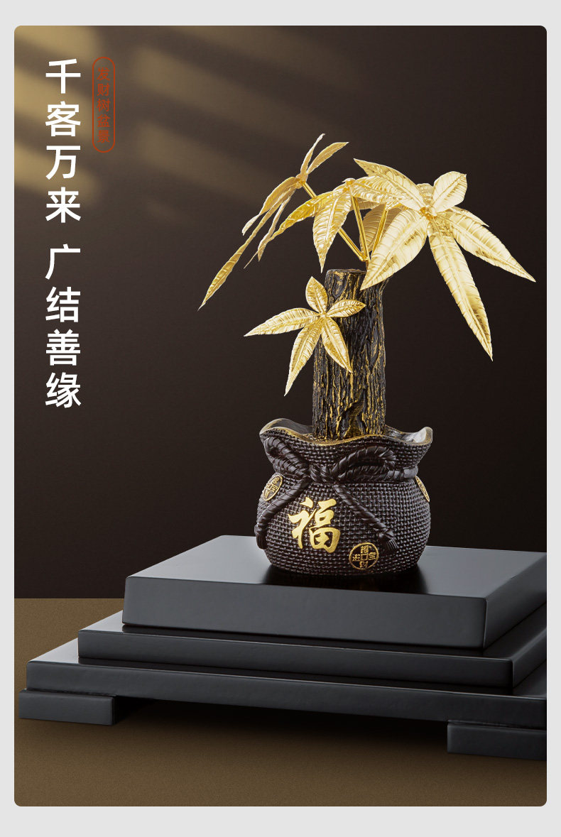 金箔发财树摇钱树摆件招财树家居酒柜装饰工艺品客厅摆设开业礼品