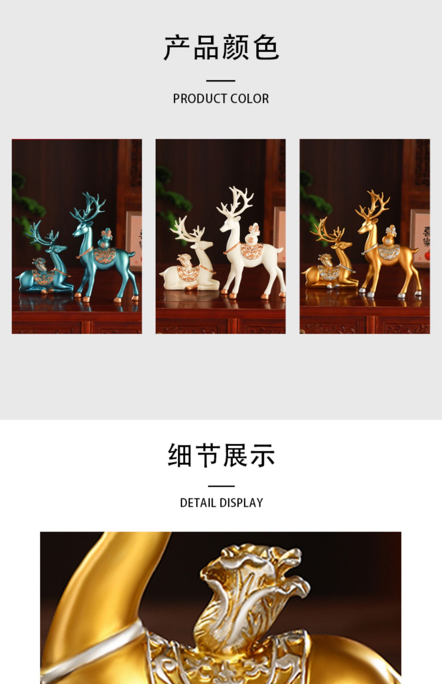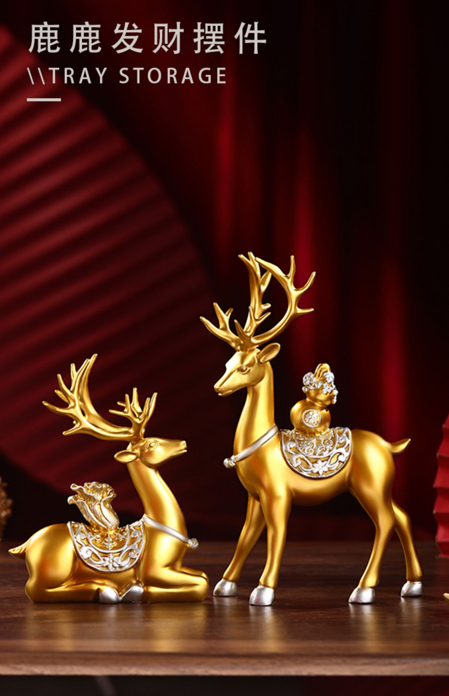 创意百财福鹿招财摆件客厅电视柜酒柜玄关装饰品新房乔迁送人礼物
