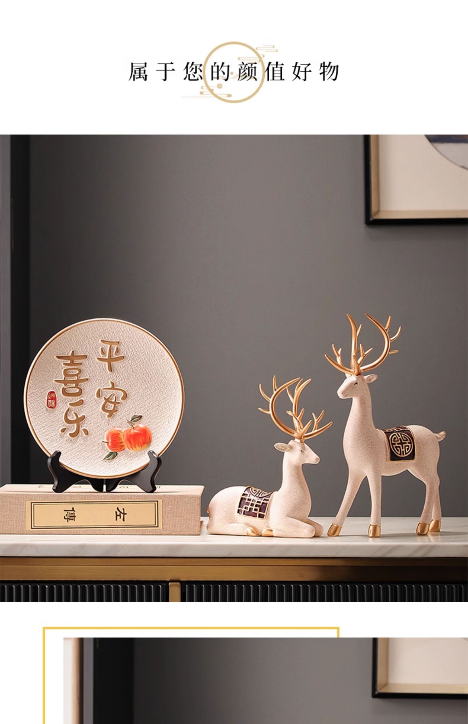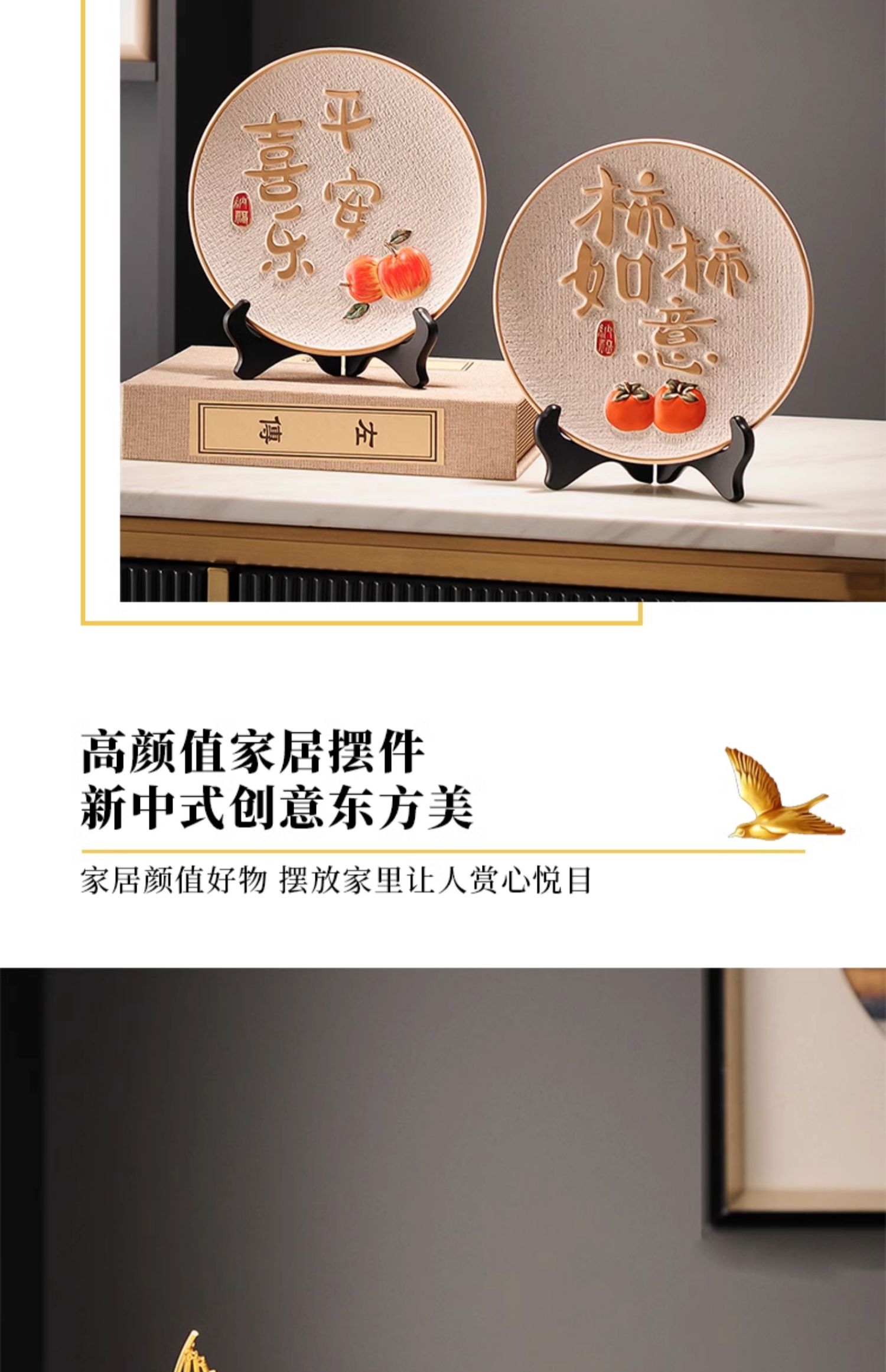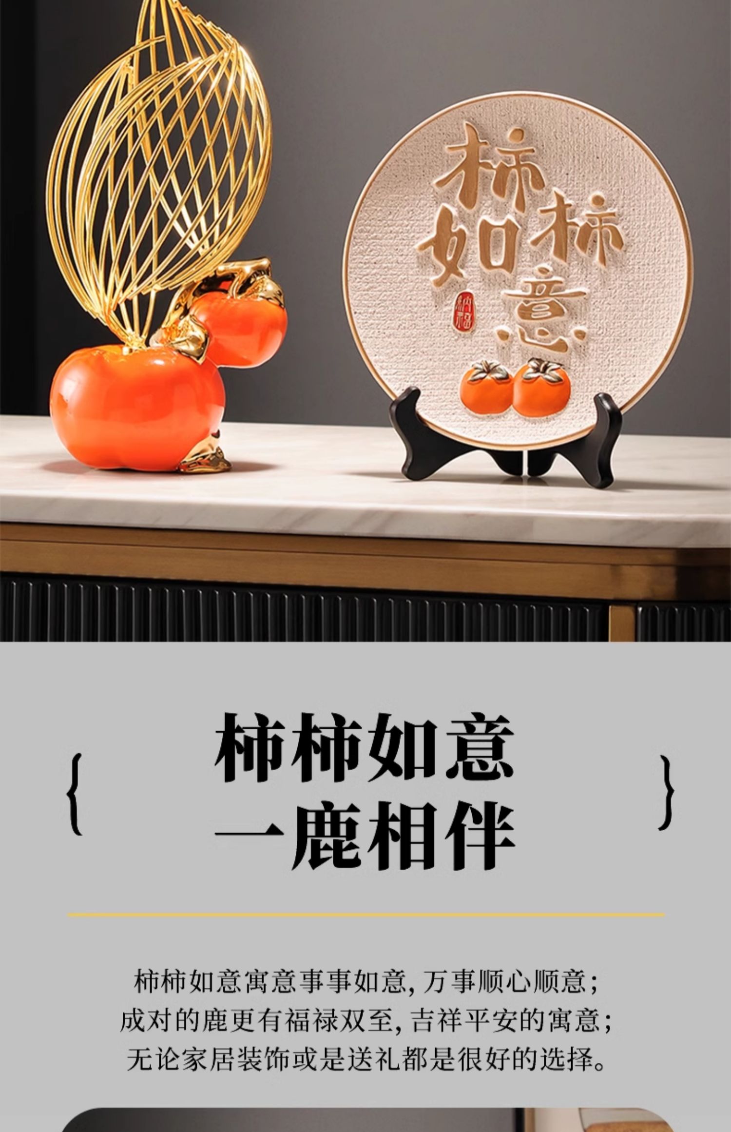 平安喜乐摆件柿柿事事如意客厅玄关电视柜酒柜装饰品乔迁新居礼品