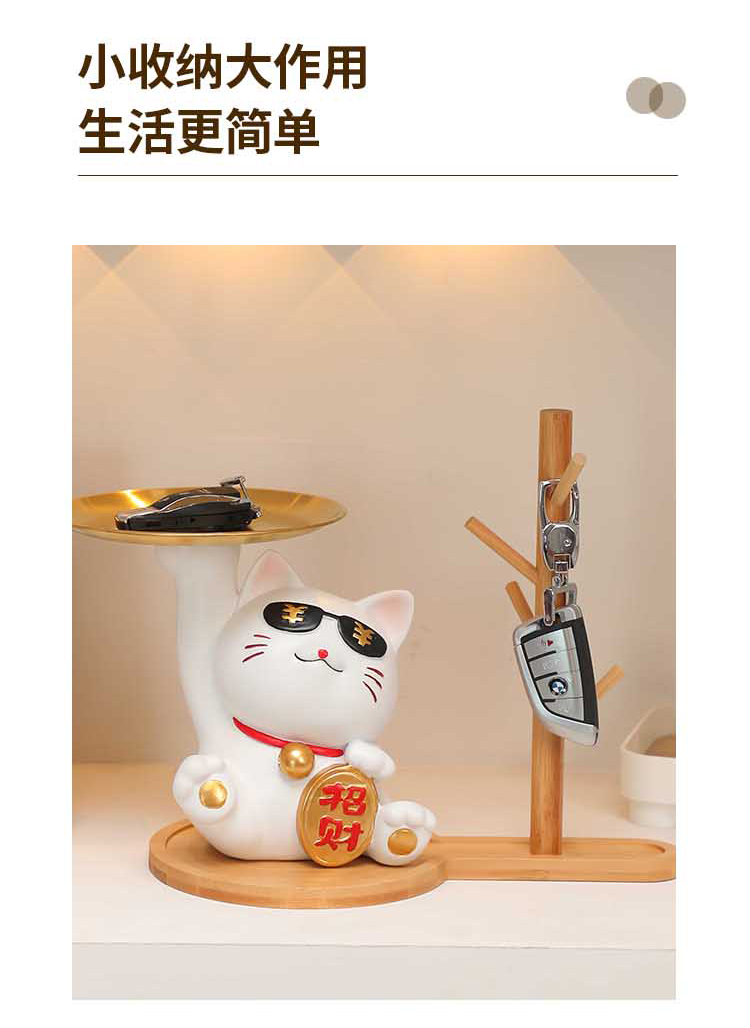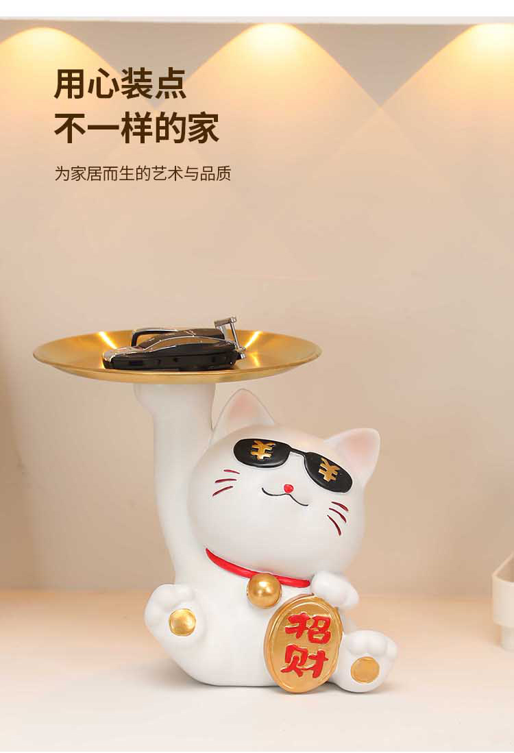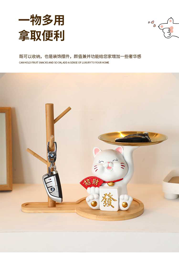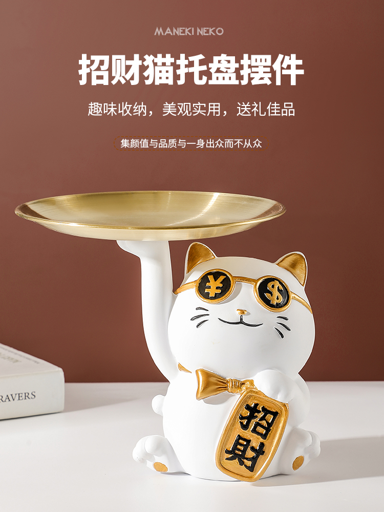 放钥匙收纳摆件招财猫托盘玄关客厅门口进门入户招财家居装饰品