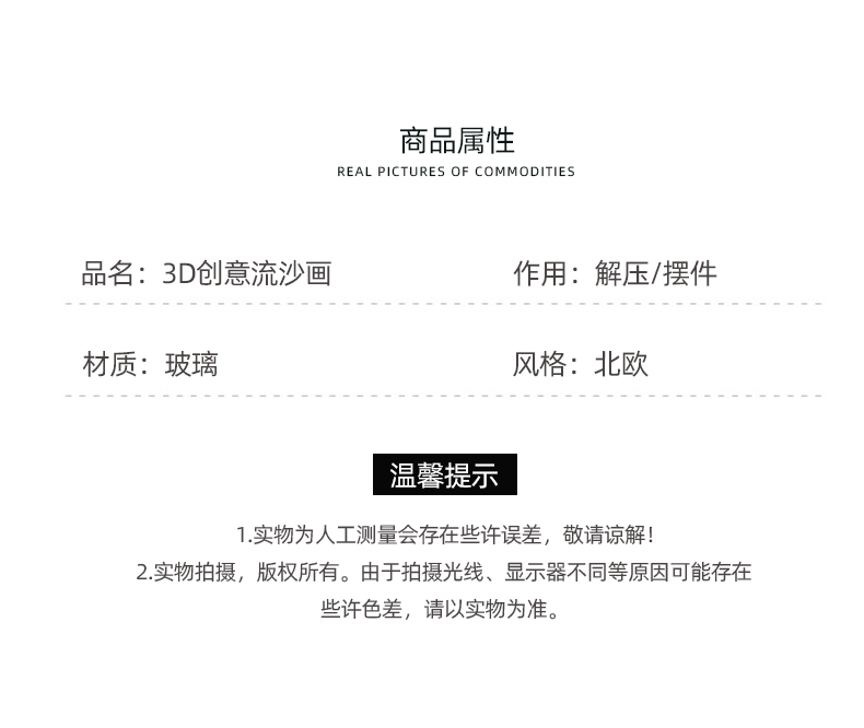 创意3D流沙画摆件电视柜酒柜客厅桌面装饰品艺术沙漏轻奢礼物家居