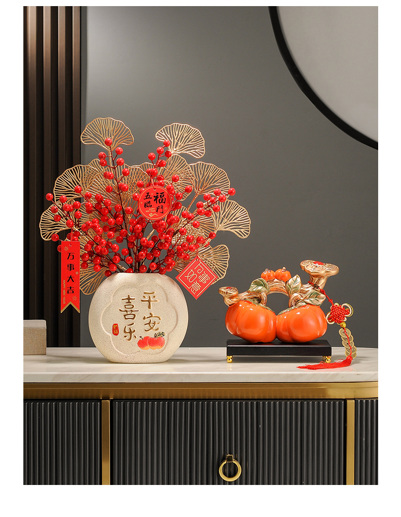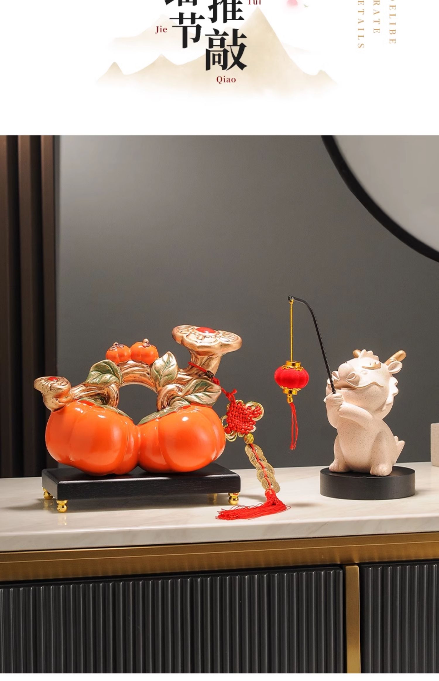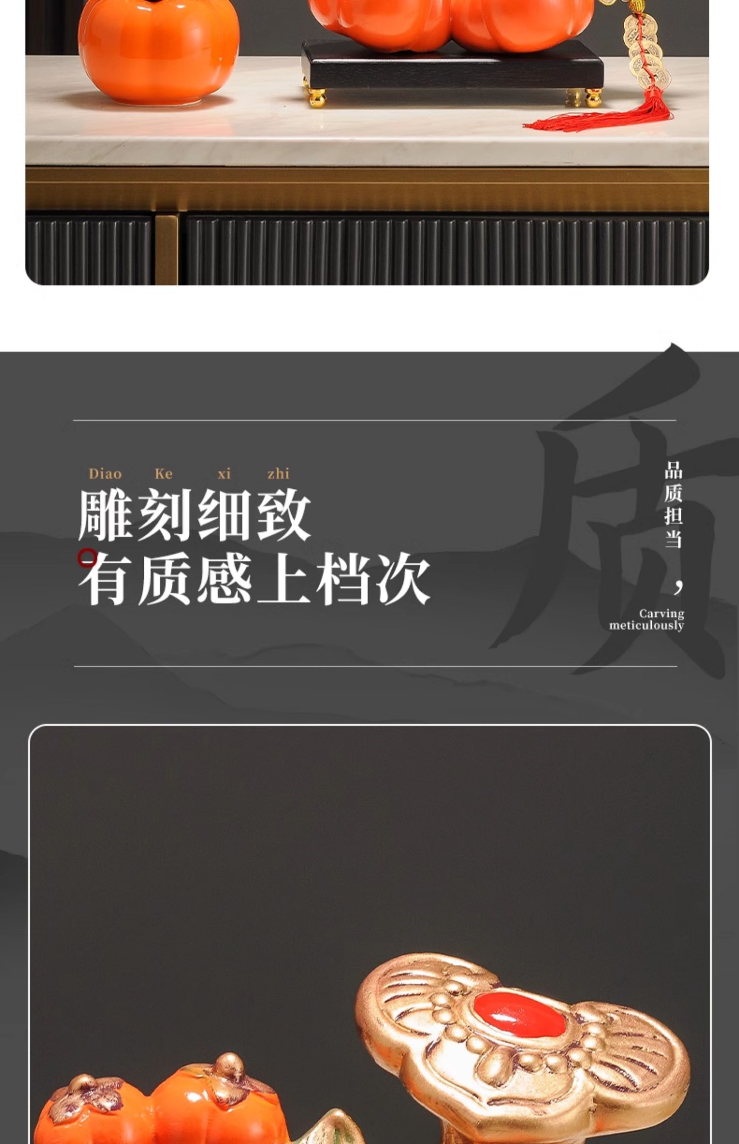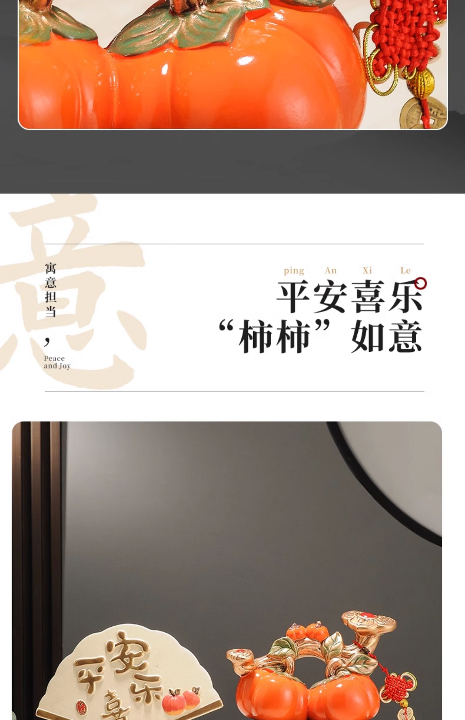 柿柿如意柿子摆件入宅乔迁新居之喜礼物客厅玄关酒柜电视柜装饰品