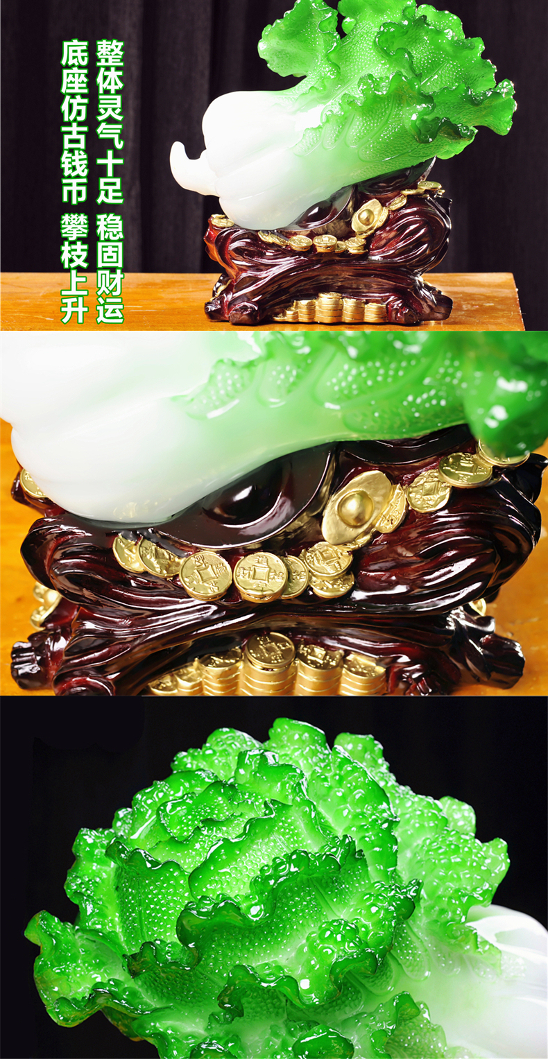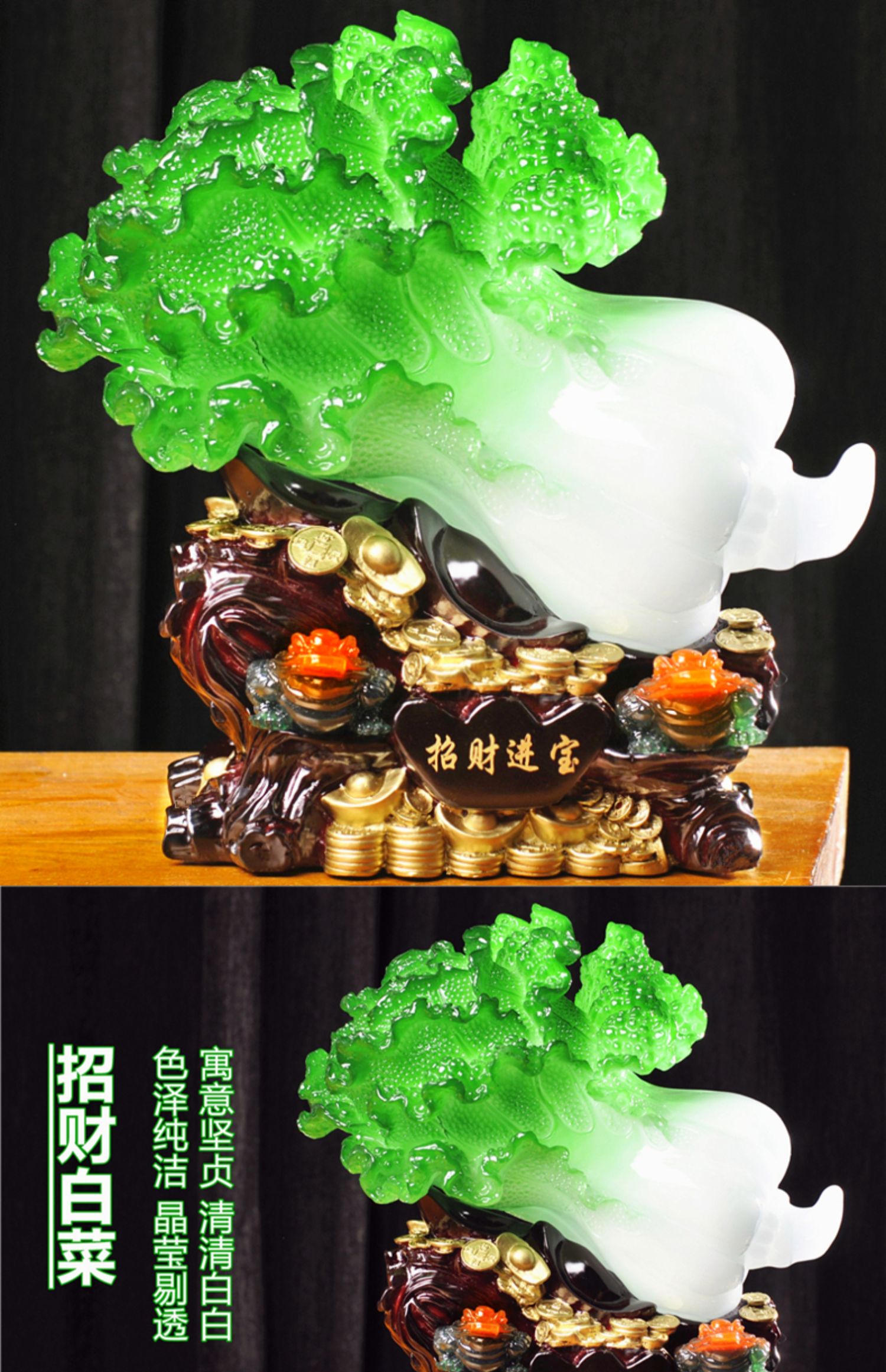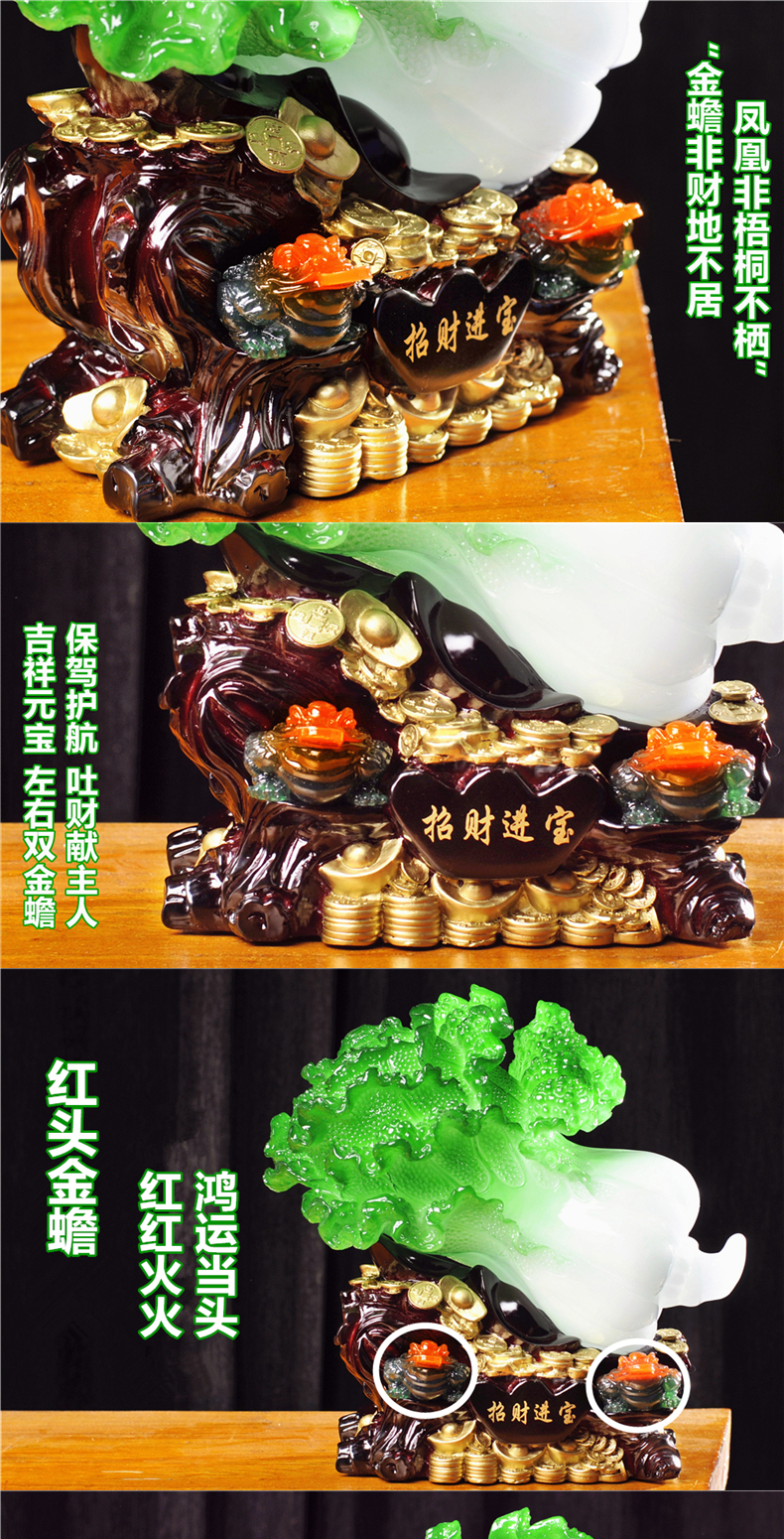 玉白菜摆件招财大号金蟾客厅玄关电视酒柜店铺工艺装饰品开业礼品