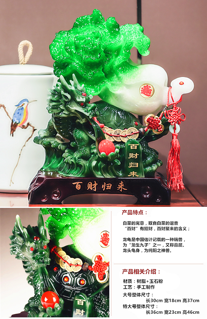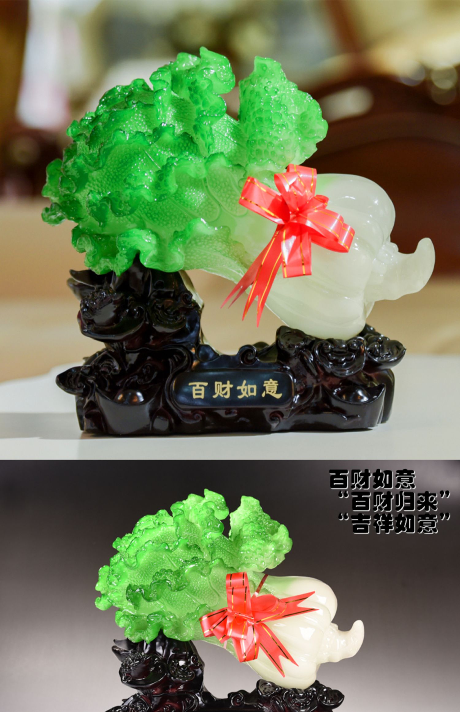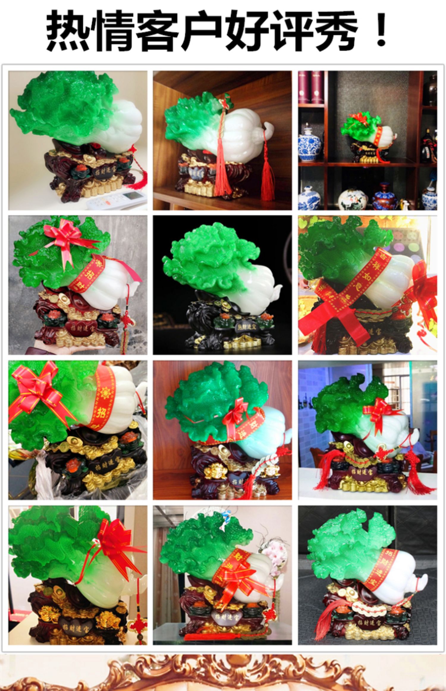 玉白菜摆件招财大号金蟾客厅玄关电视酒柜店铺工艺装饰品开业礼品