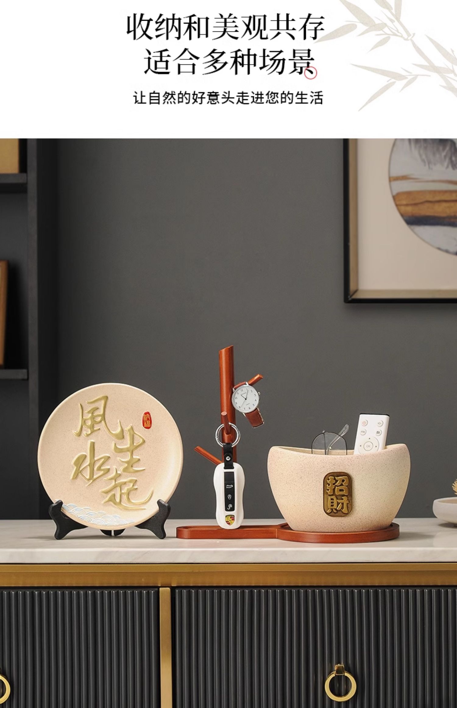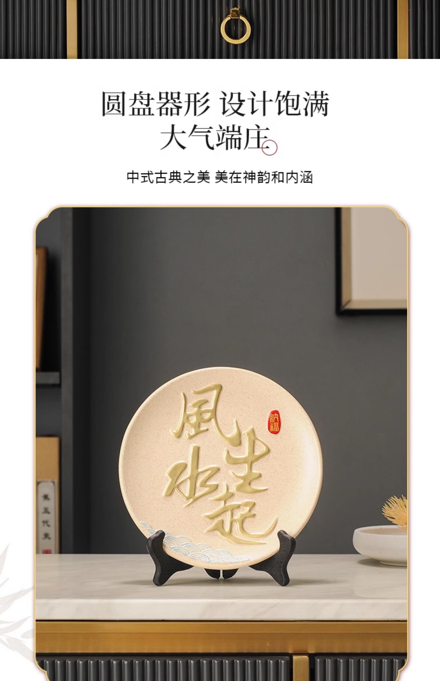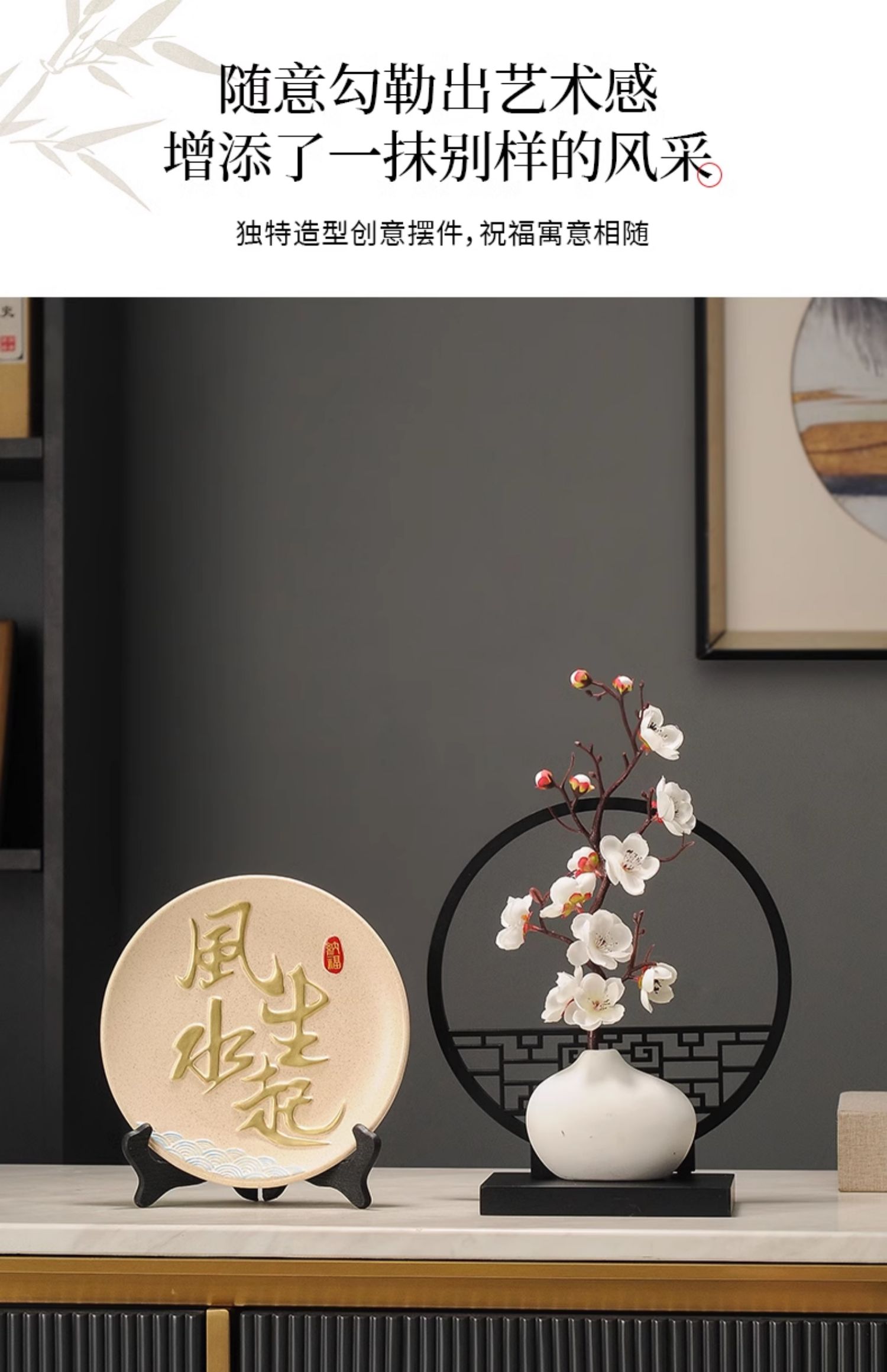 风生水起摆盘挂盘新中式摆件复古客厅酒柜国风禅意玄关桌面装饰品