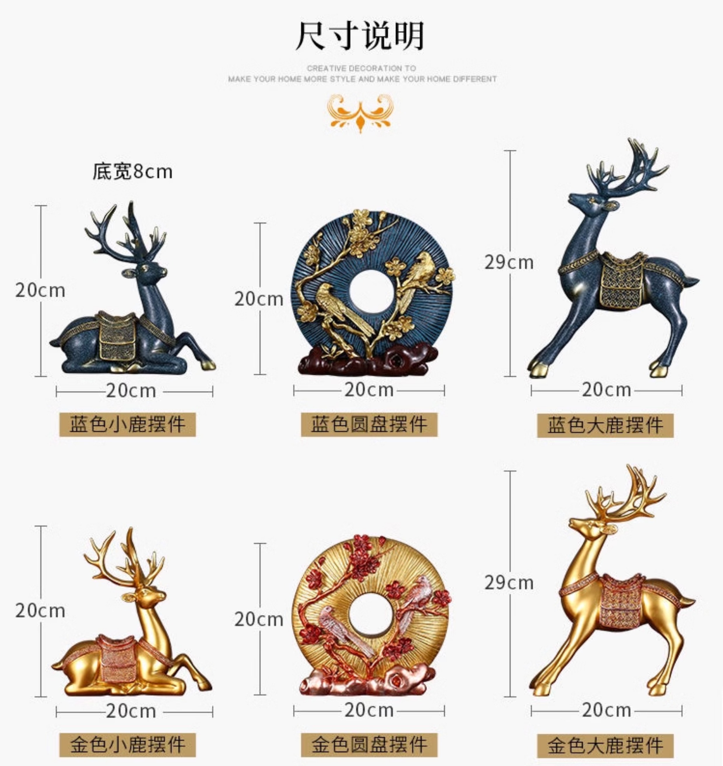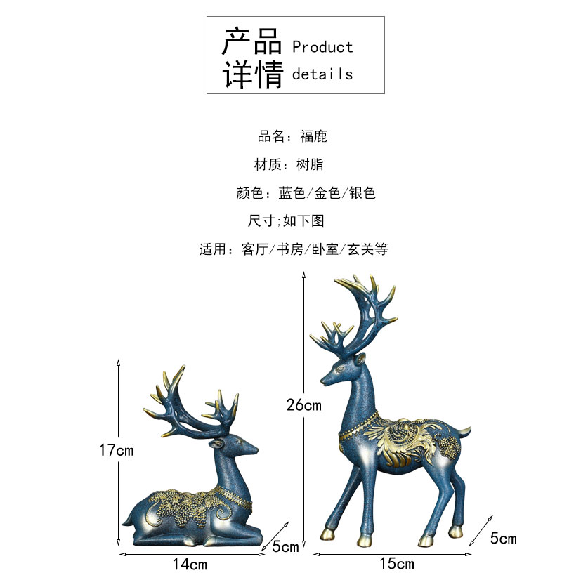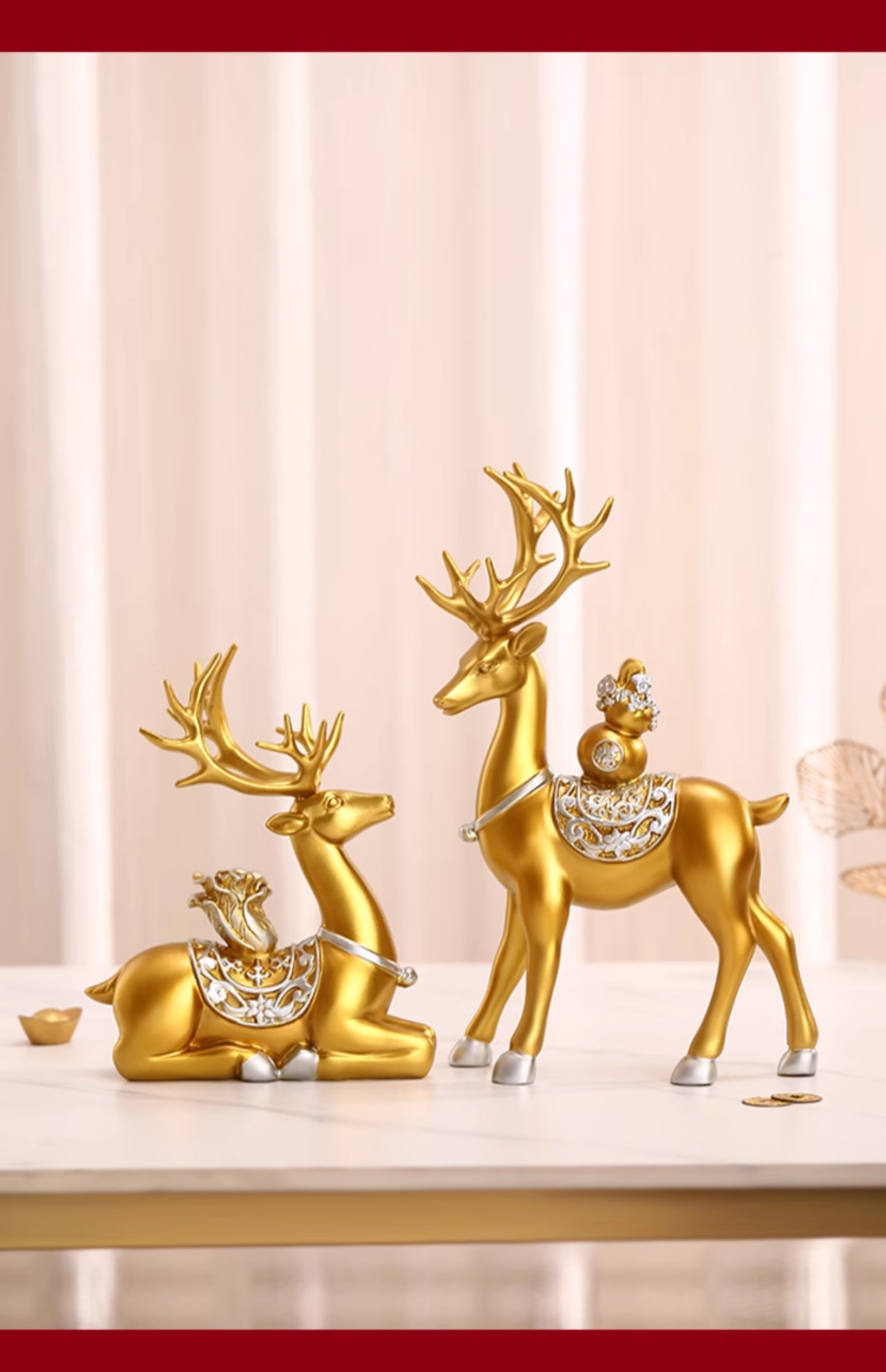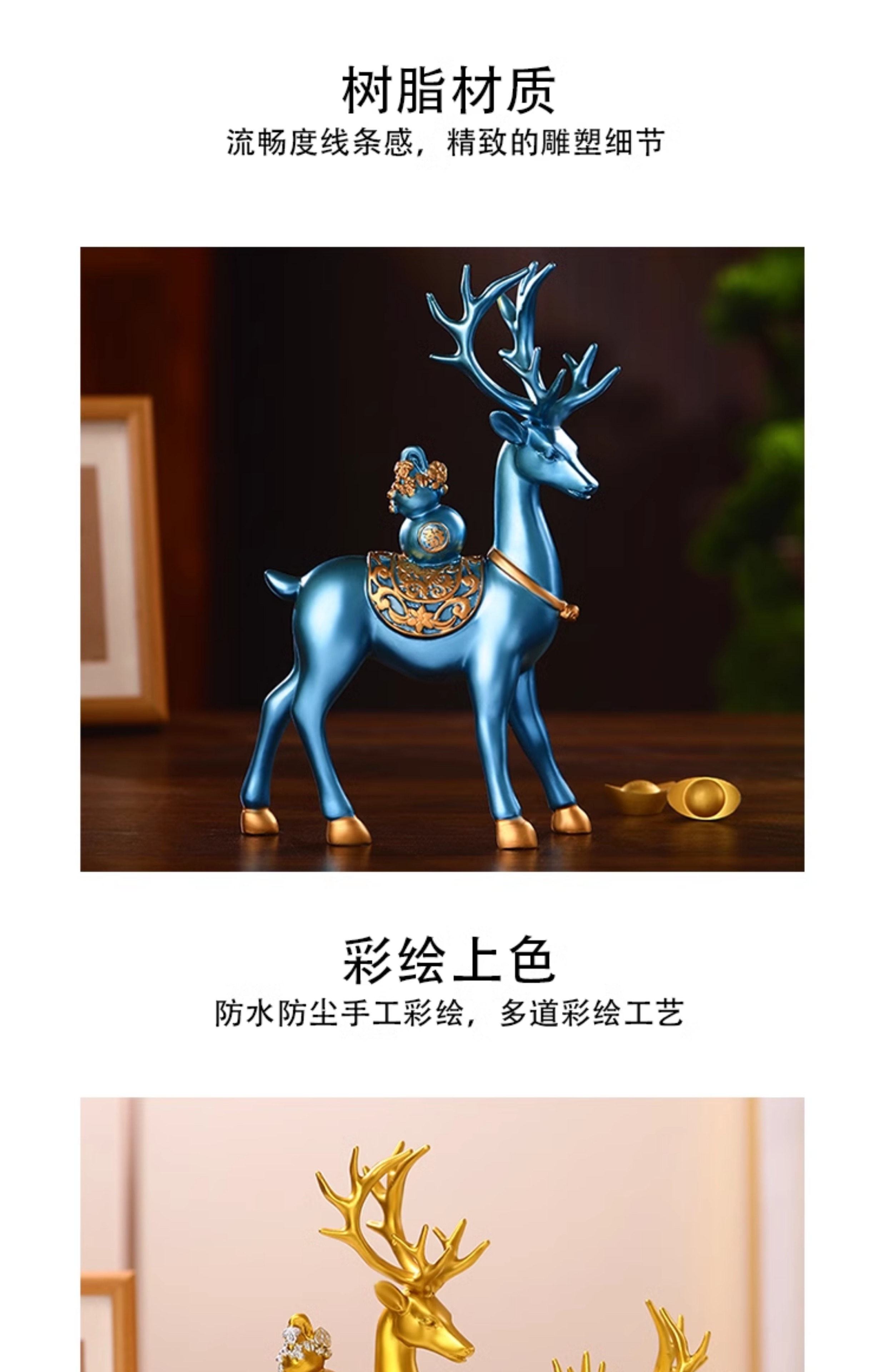 创意招财鹿摆件客厅酒柜玄关家居摆设电视柜福鹿装饰新房乔迁礼物