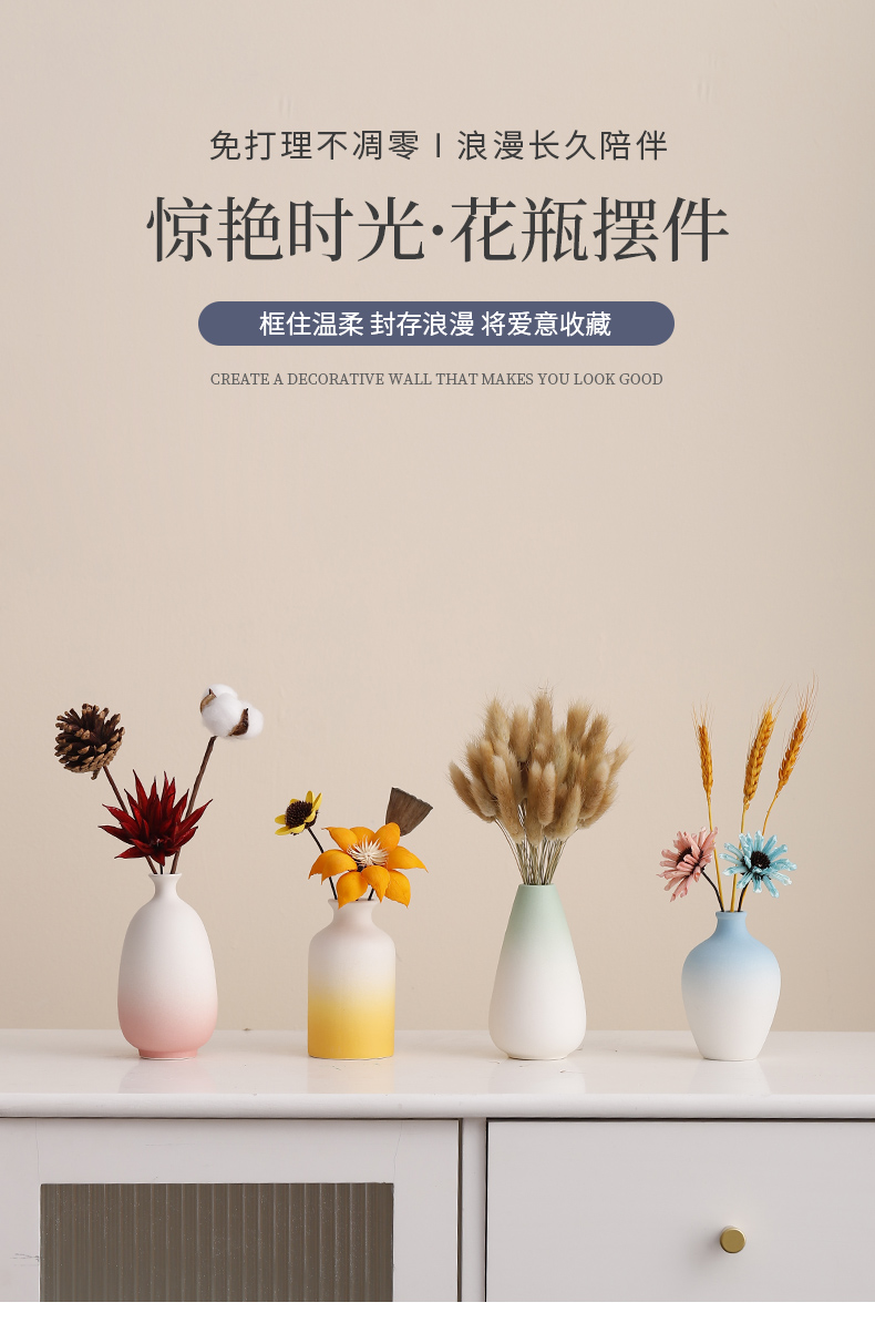 陶瓷小花瓶客厅插花干花摆件高级感小众玄关酒柜装饰品电视柜摆设