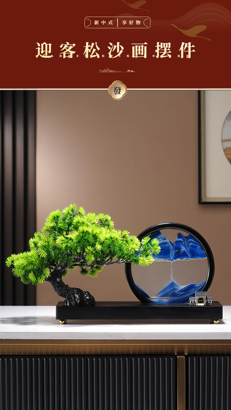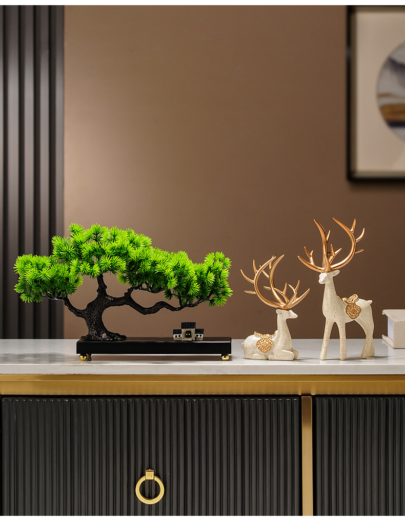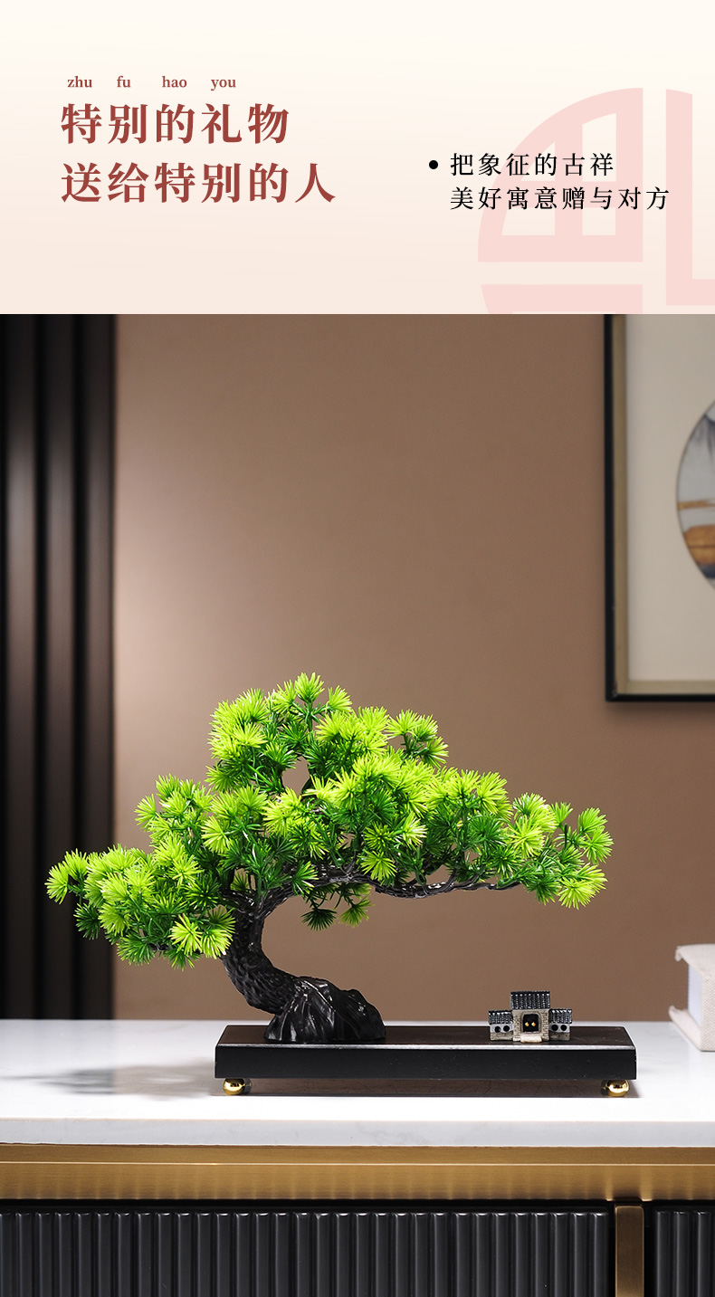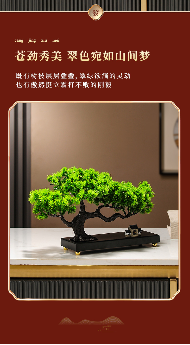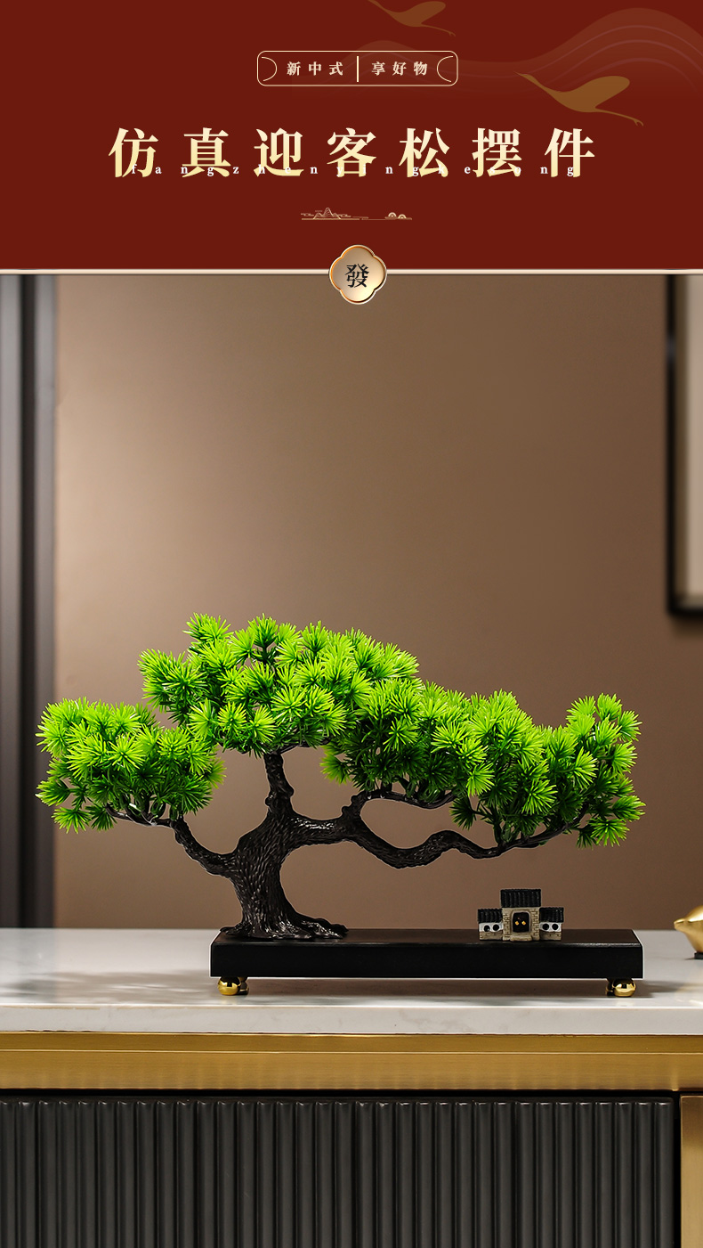 仿真绿植迎客松罗汉松盆景新中式客厅玄关茶几酒柜装饰品禅意摆件