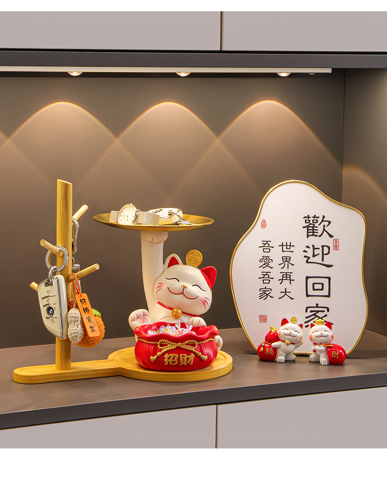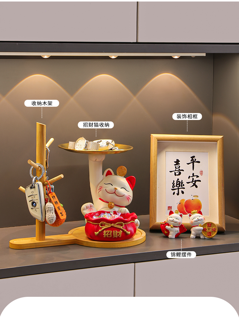 招财猫钥匙收纳玄关装饰品摆件入户门口鞋柜客厅家居乔迁新居礼品