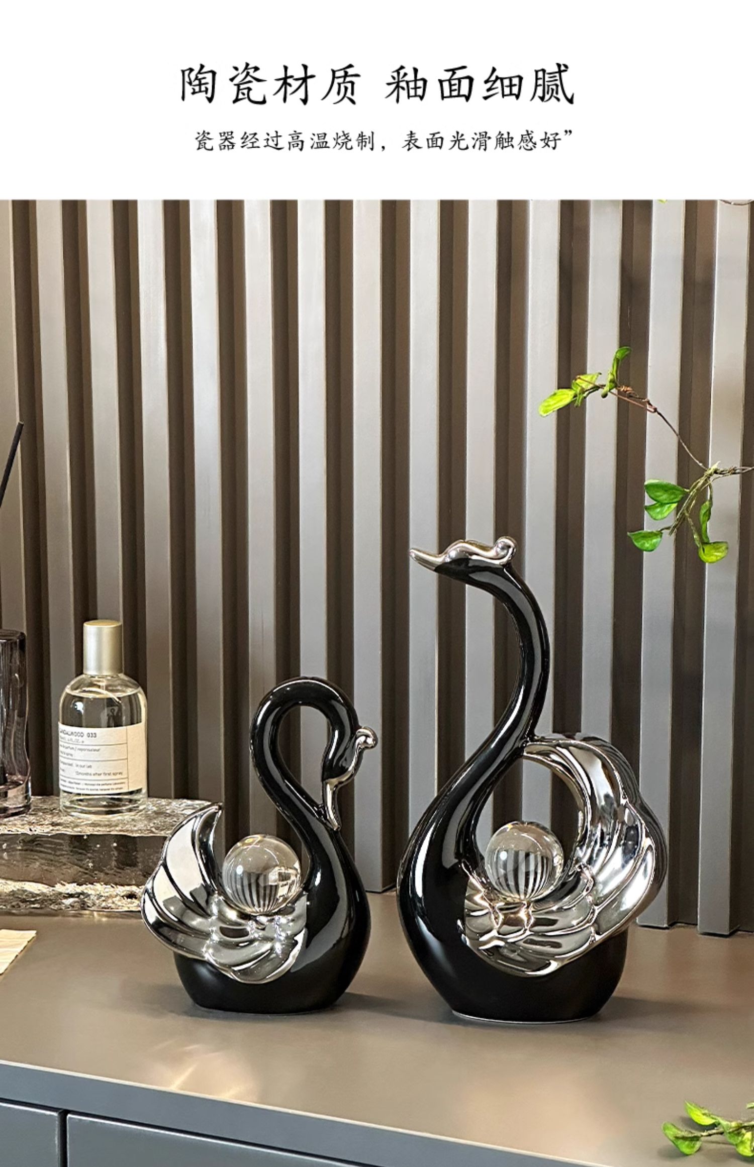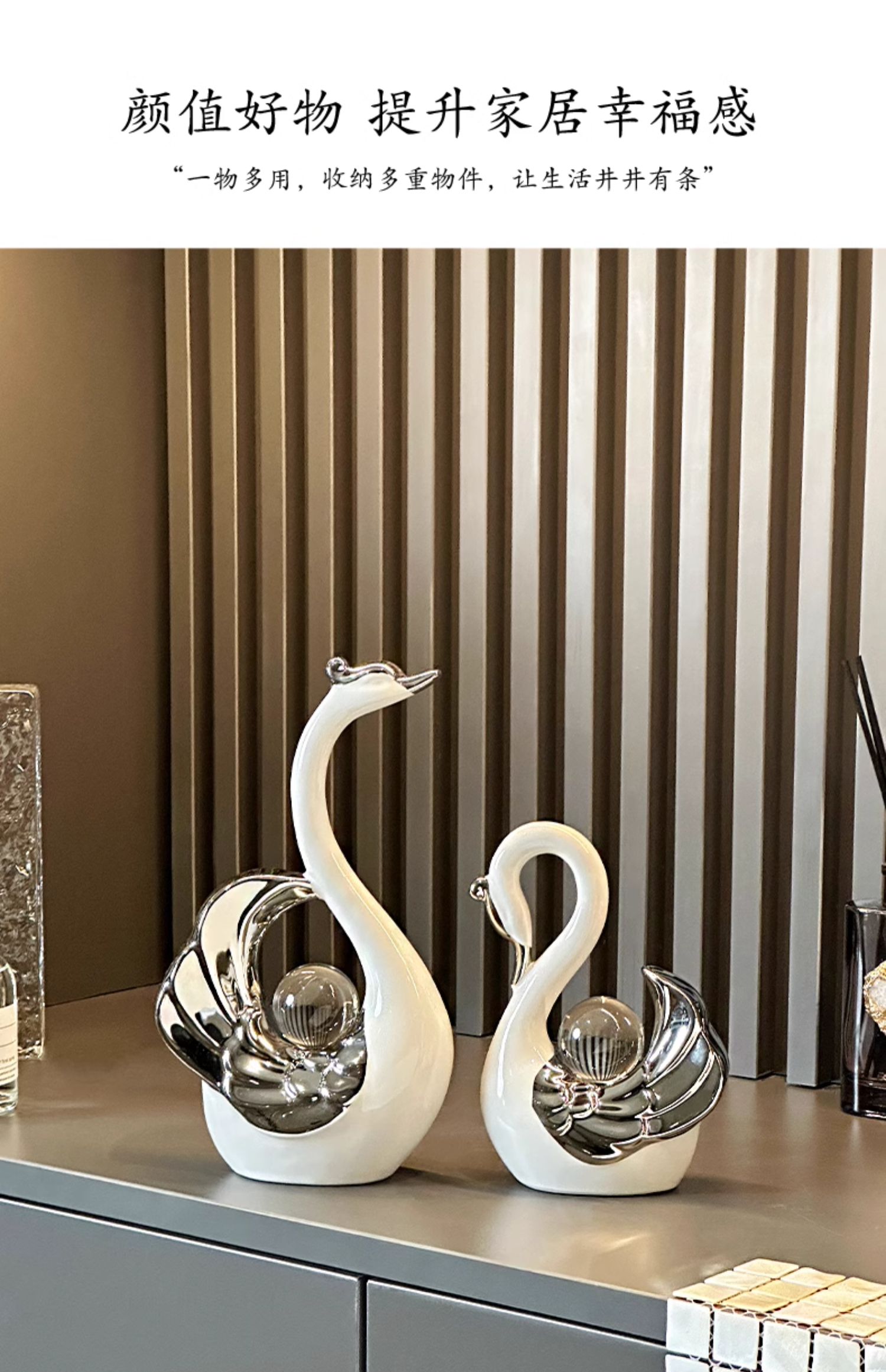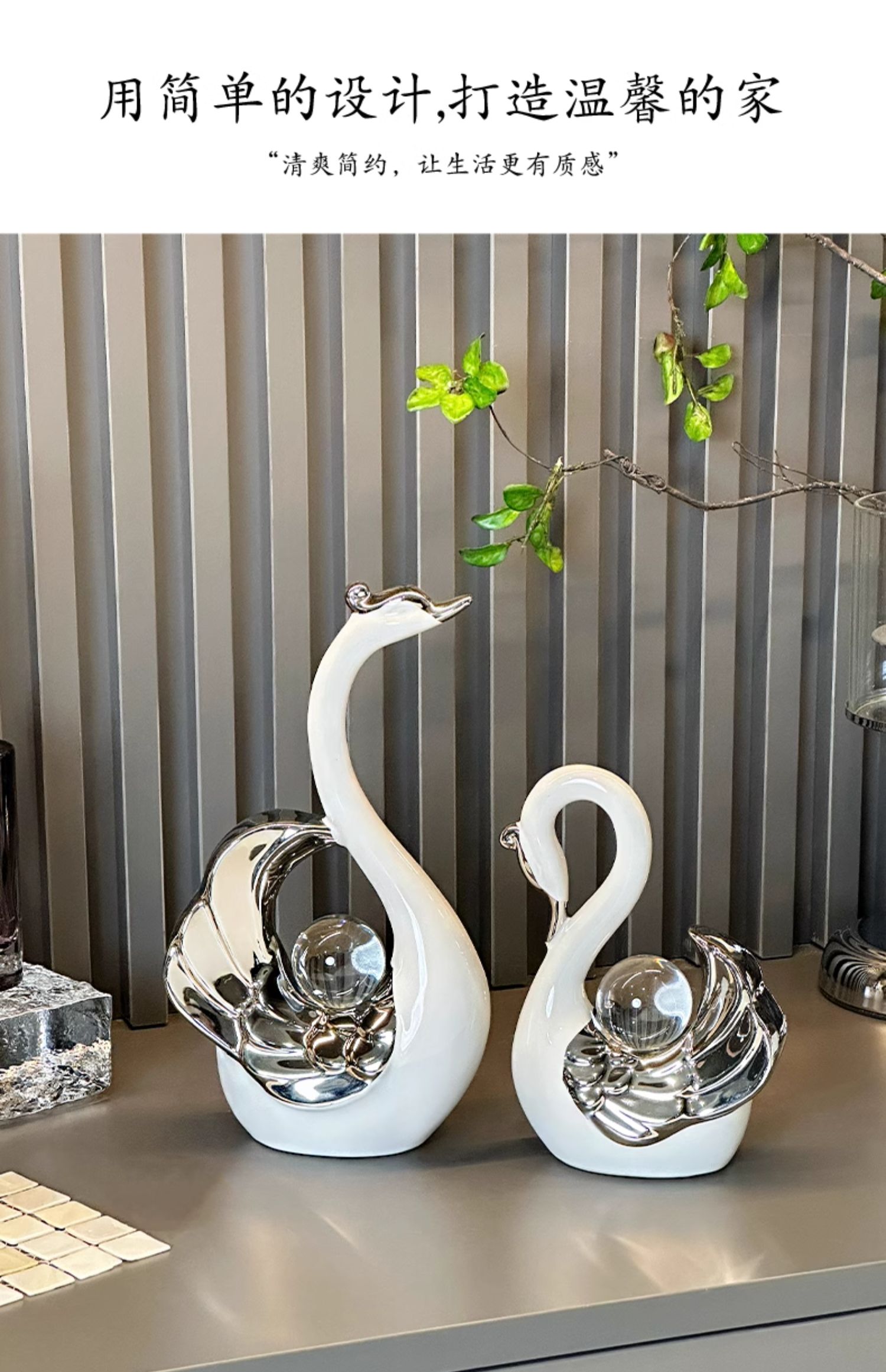 高颜值水晶球情侣天鹅摆件现代轻奢家居玄关客厅酒柜电视柜装饰品