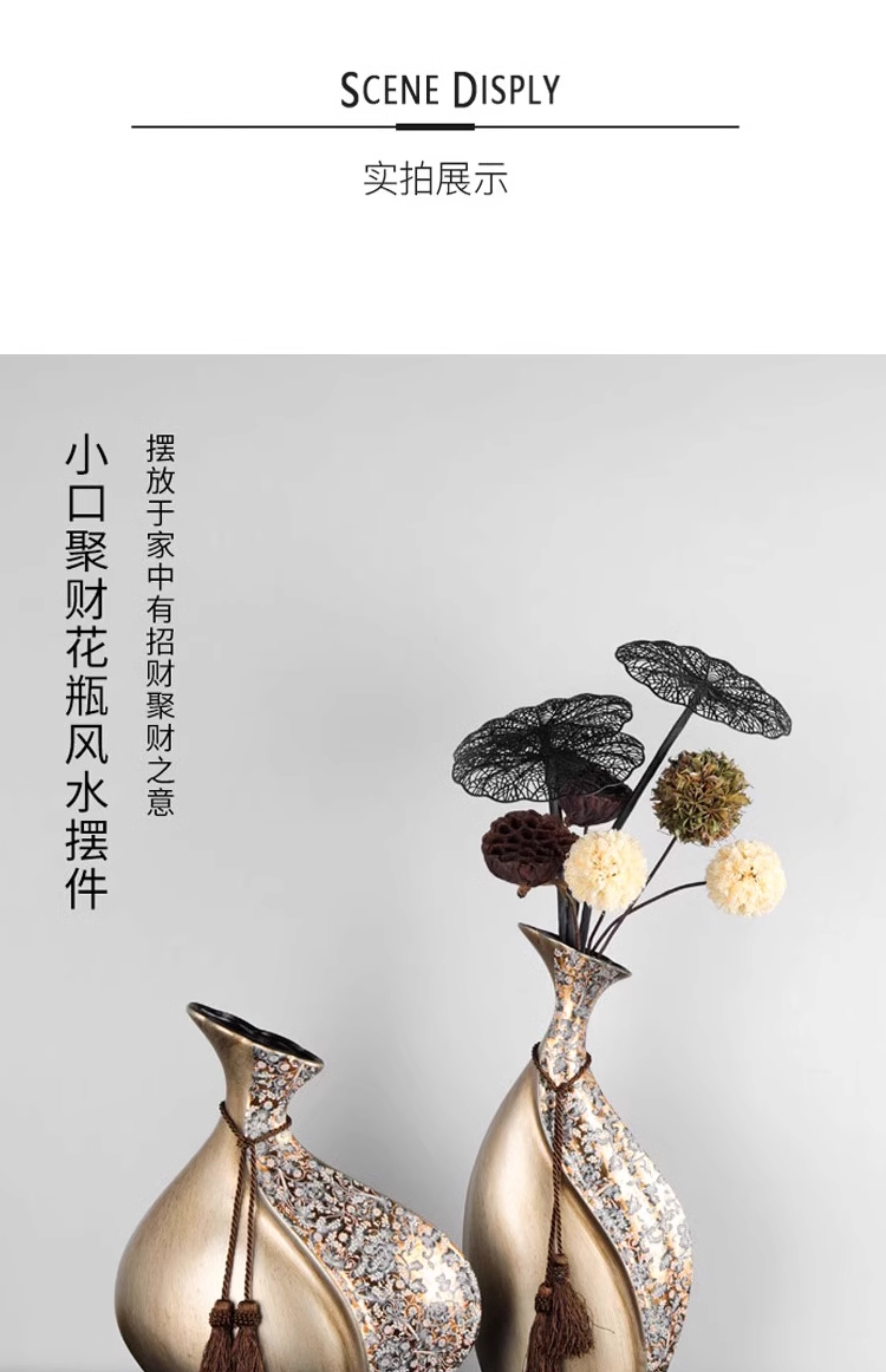 柏梵创意高档陶瓷花瓶摆件客厅电视柜玄关复古干花聚财工艺品摆件